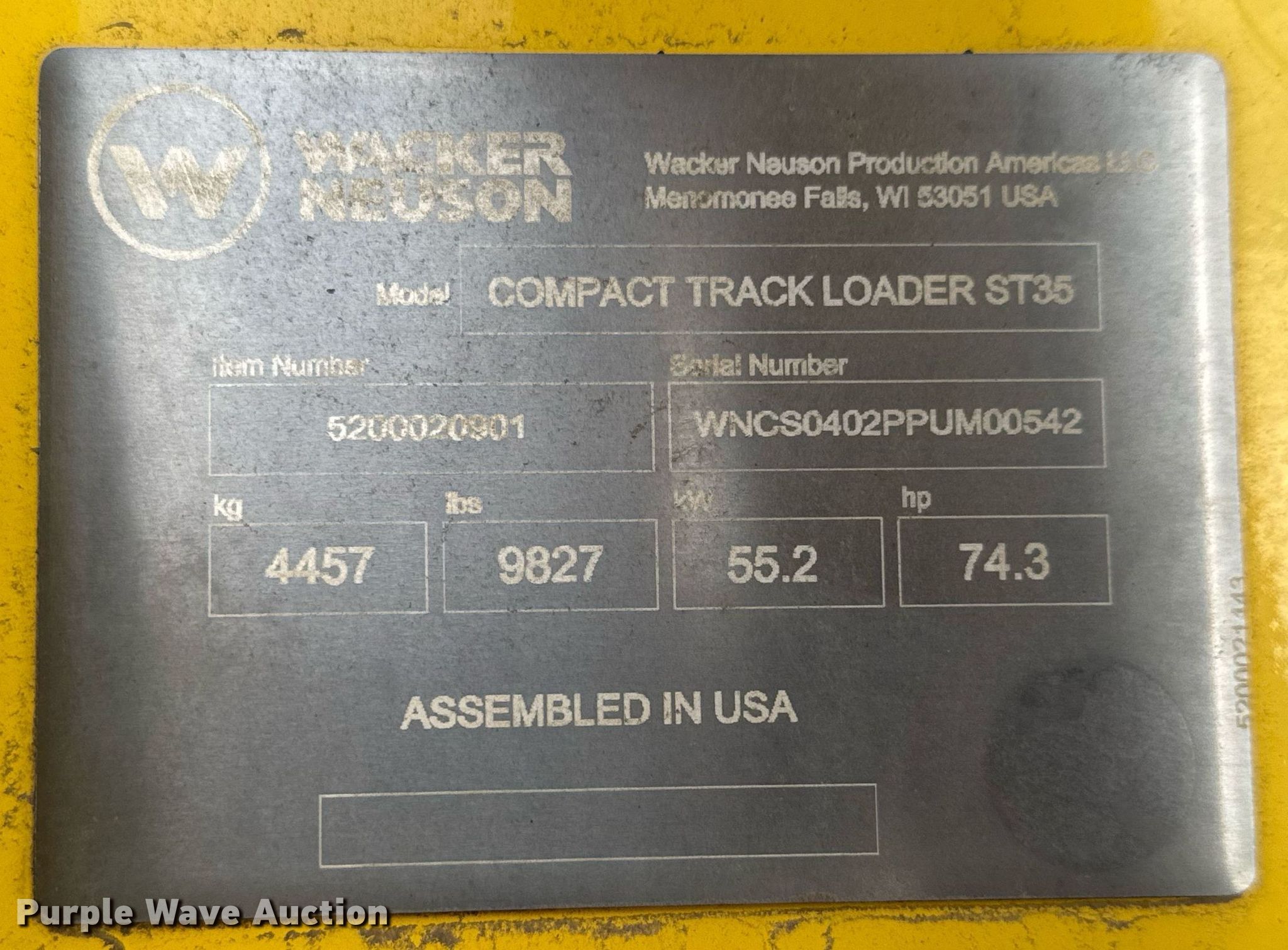Purple Wave is selling a used Tracked Skid Steer Loader in Kansas. This item is a 2016 Wacker Neuson ST35 tracked skid steer loader with the following: Hours: 853 on meter, Serial: WNCS0402PPUM00542