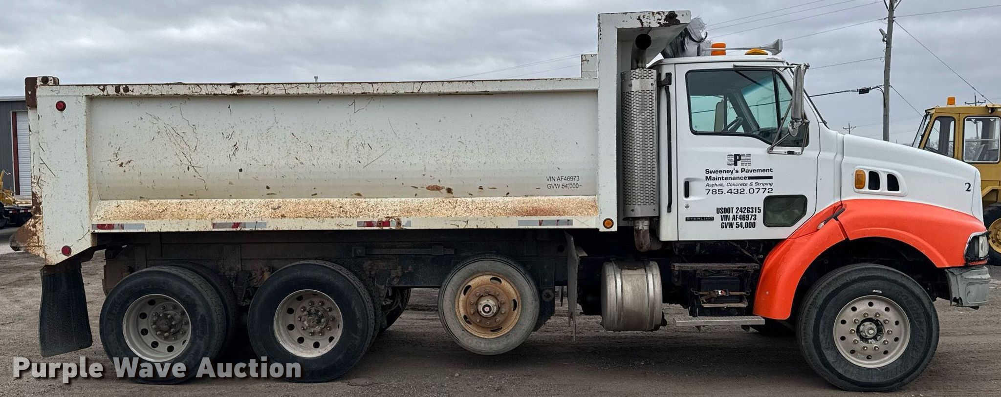 Purple Wave is selling a used Construction Dump Truck in Kansas. This item is a 2000 Sterling A/AT9500 dump truck with the following: Miles: 650,623 on odometer, VIN: 2FWYHPYB0YAF46973