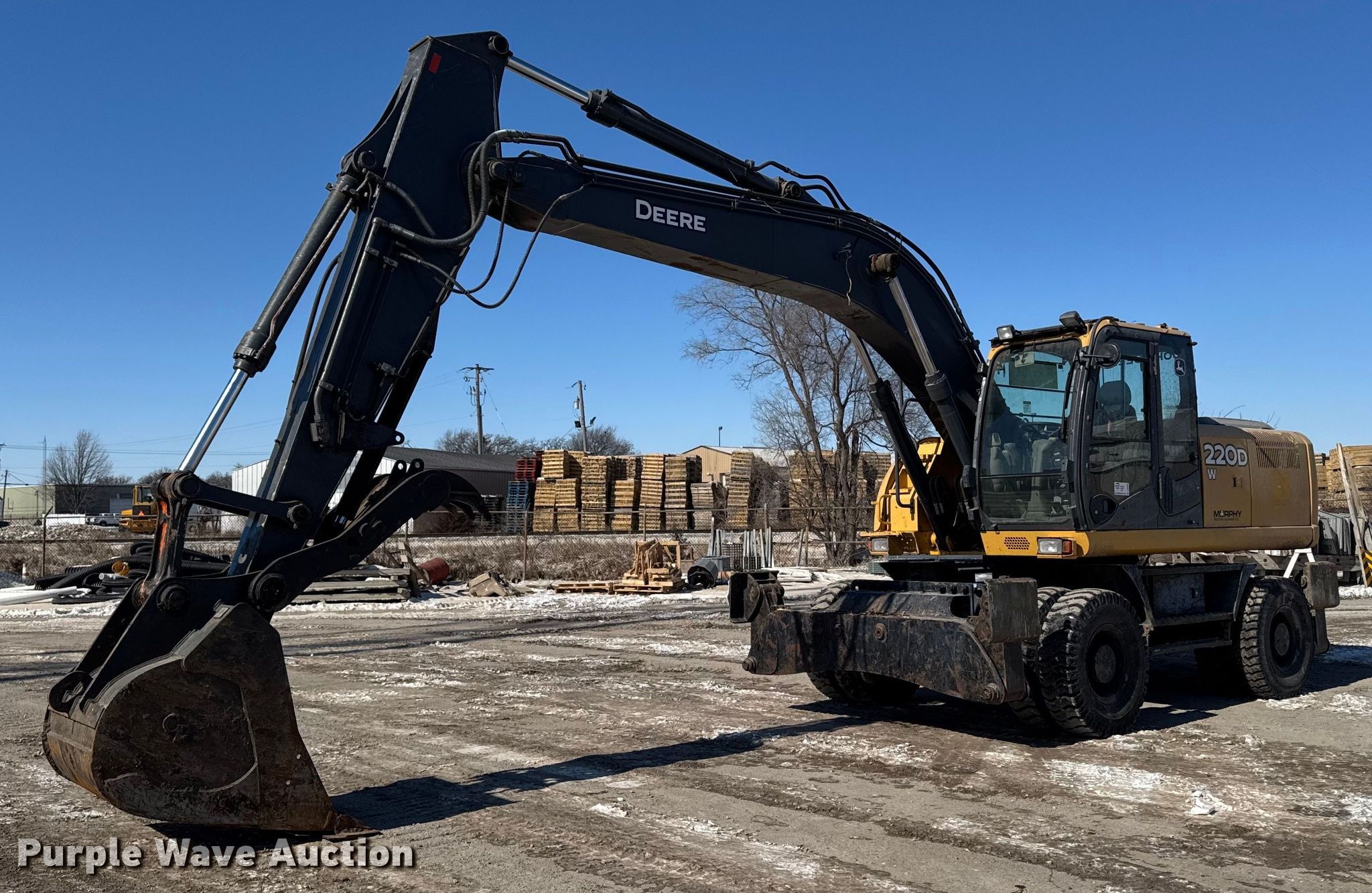 Purple Wave is selling a used Wheeled Excavator in Iowa. This item is a 2009 John Deere 220D W wheeled excavator with the following: Miles: 7,928 on odometer, Hours: 8,138 on meter, Serial: FF220DW041101