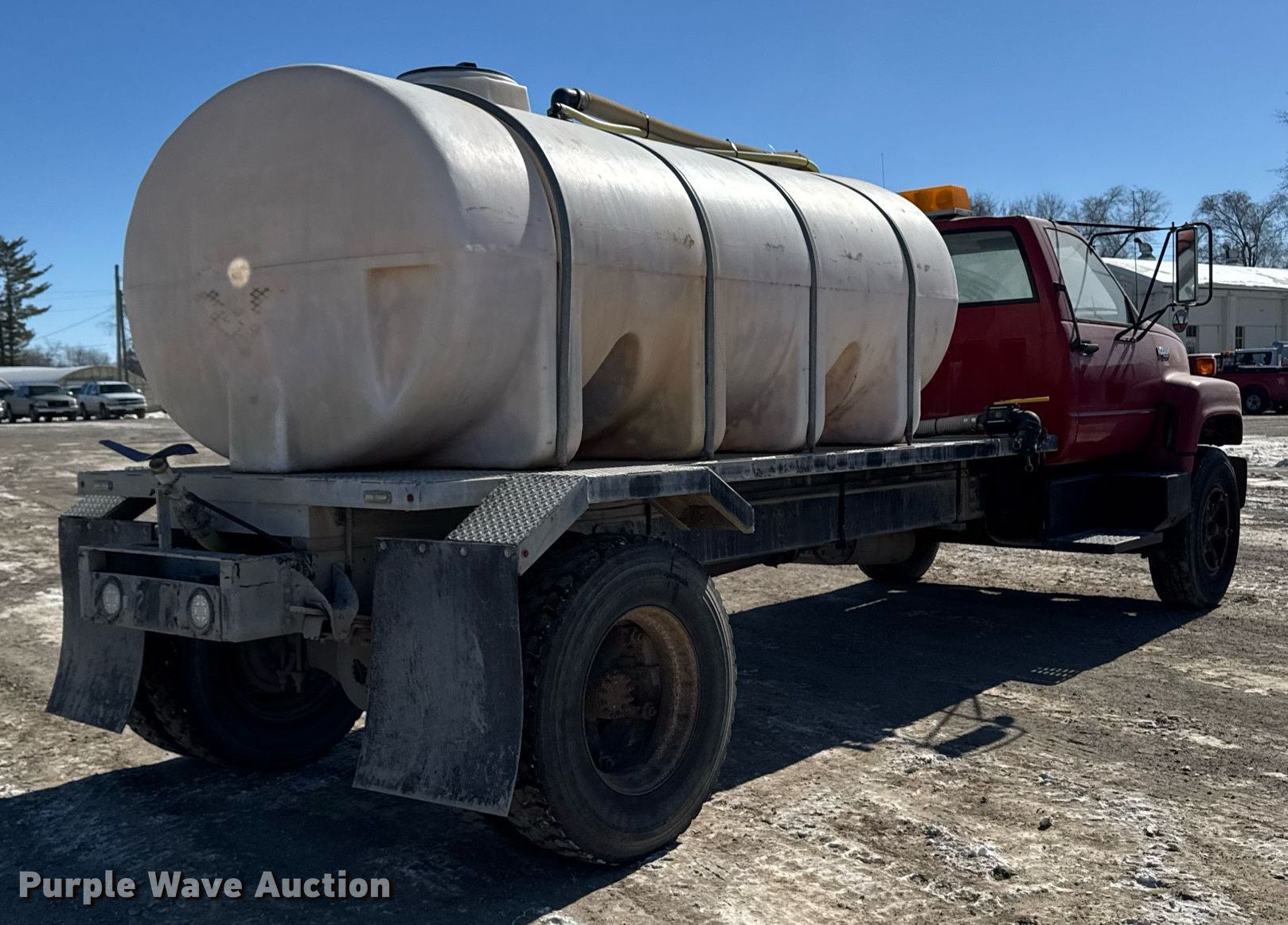 1992 Chevrolet Kodiak flatbed truck. Miles: 118,704 on odometer, VIN: 1GBL7H1JXNJ105780. Engine Caterpillar 3116, Displacement: 6.6L, Cylinders: 6, Fuel type: Diesel. Transmission Manual, Speed: 6. Chassis Axles: Single, Suspension: Spring, Brakes: Hydraulic, PTO, GVWR: 27,100 lbs, Wheelbase: 228". Interior Heat. Features Flatbed 15' L x 72" W, Tank Capacity: 1,600 gallons, Top fill. Tires Size: 11R22.5. Notes Windshield chipped or cracked. Iowa title. Seller is a government entity who will be assigning and distributing the title. Please contact the seller for distribution questions. Title distribution may be delayed up to 14 days from verification of funds. Jasper County Highway Department. Newton, IA 50208