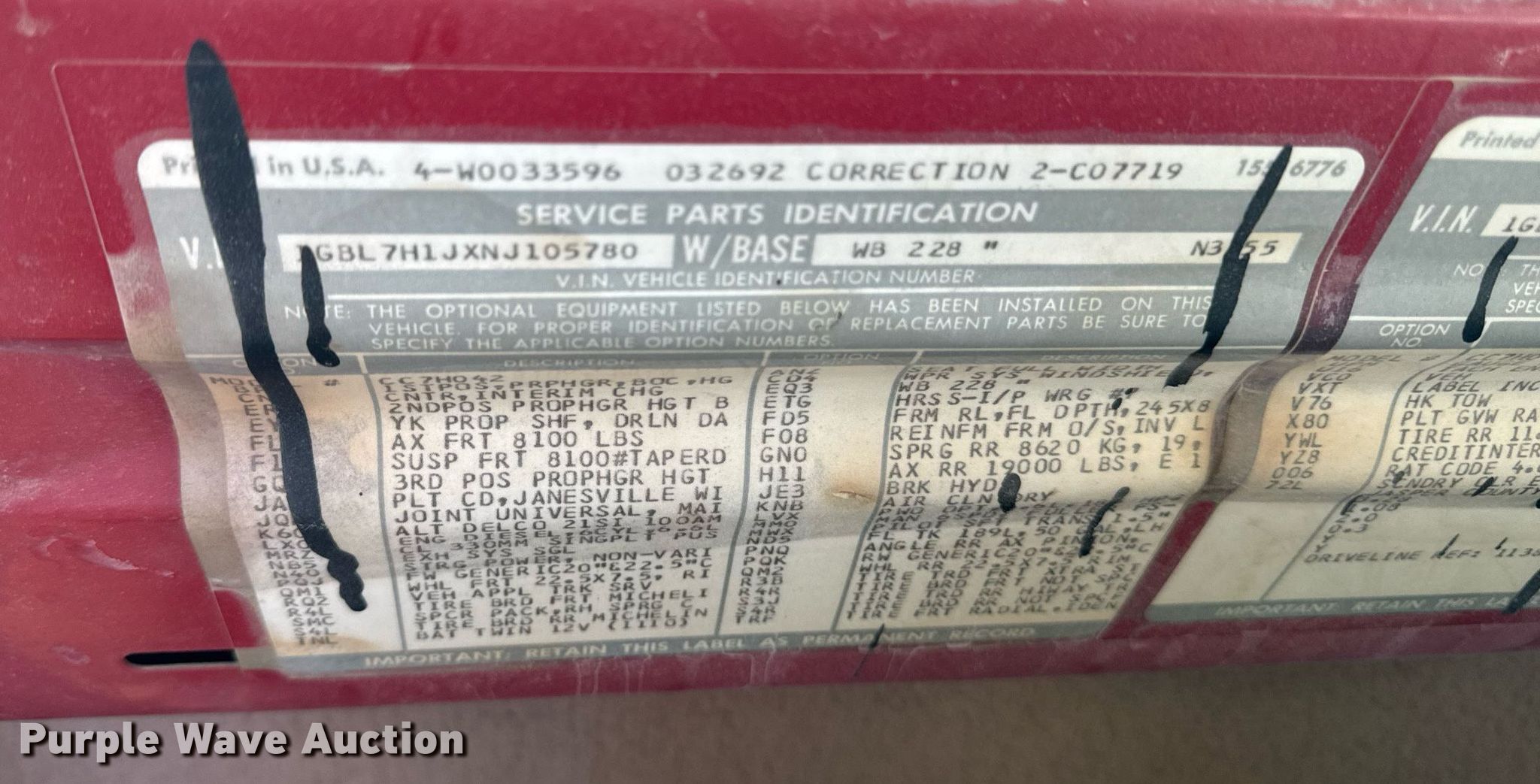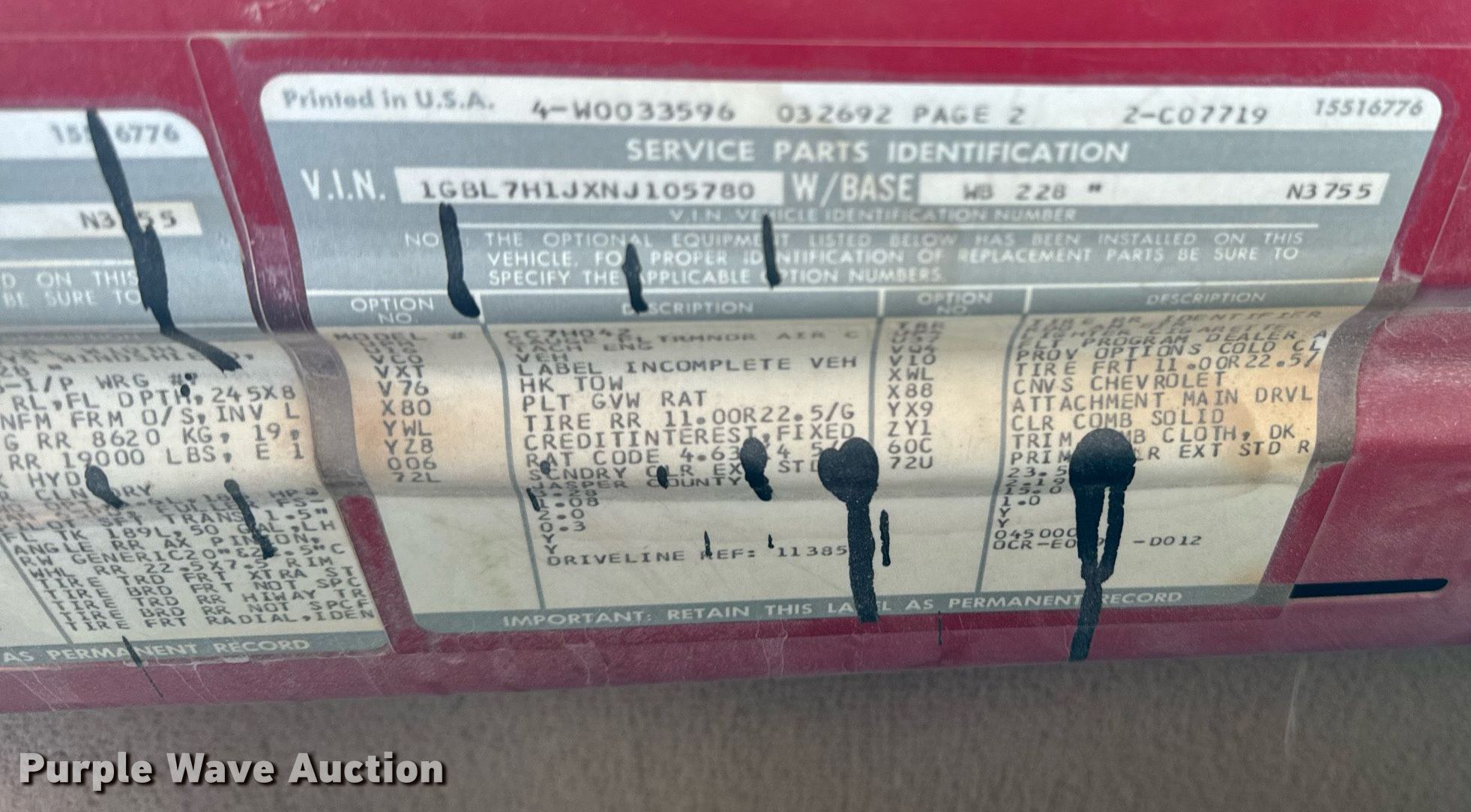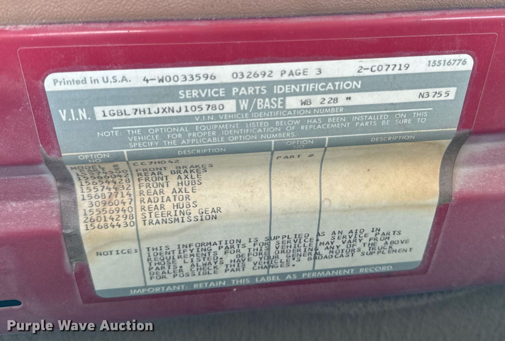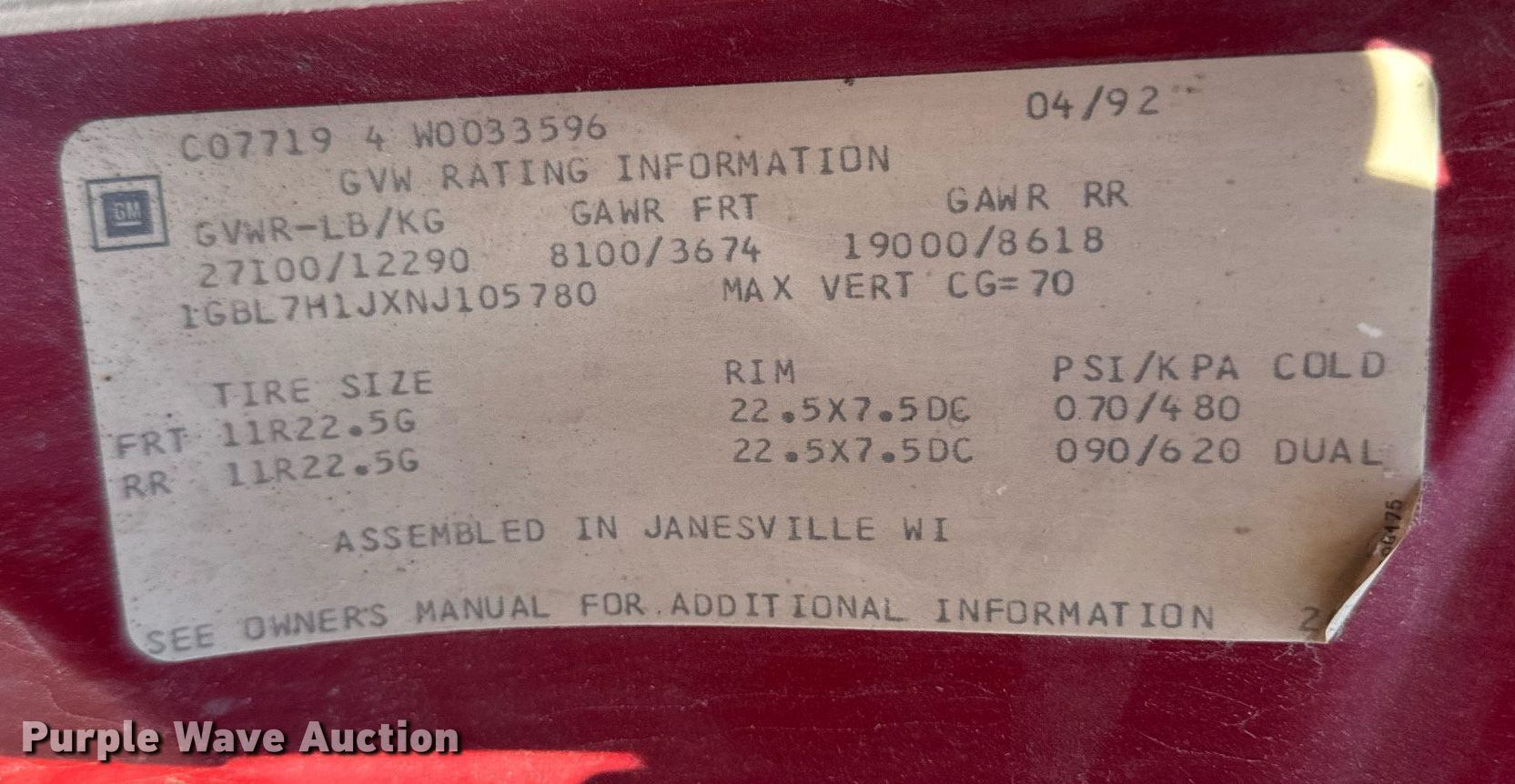 - VIN: 1GBL7H1JXNJ105780