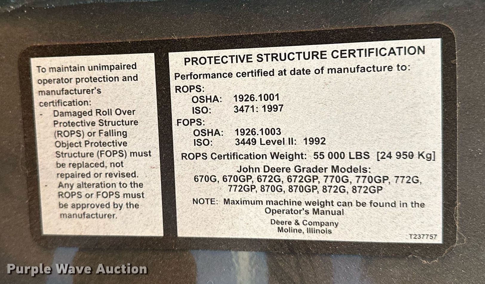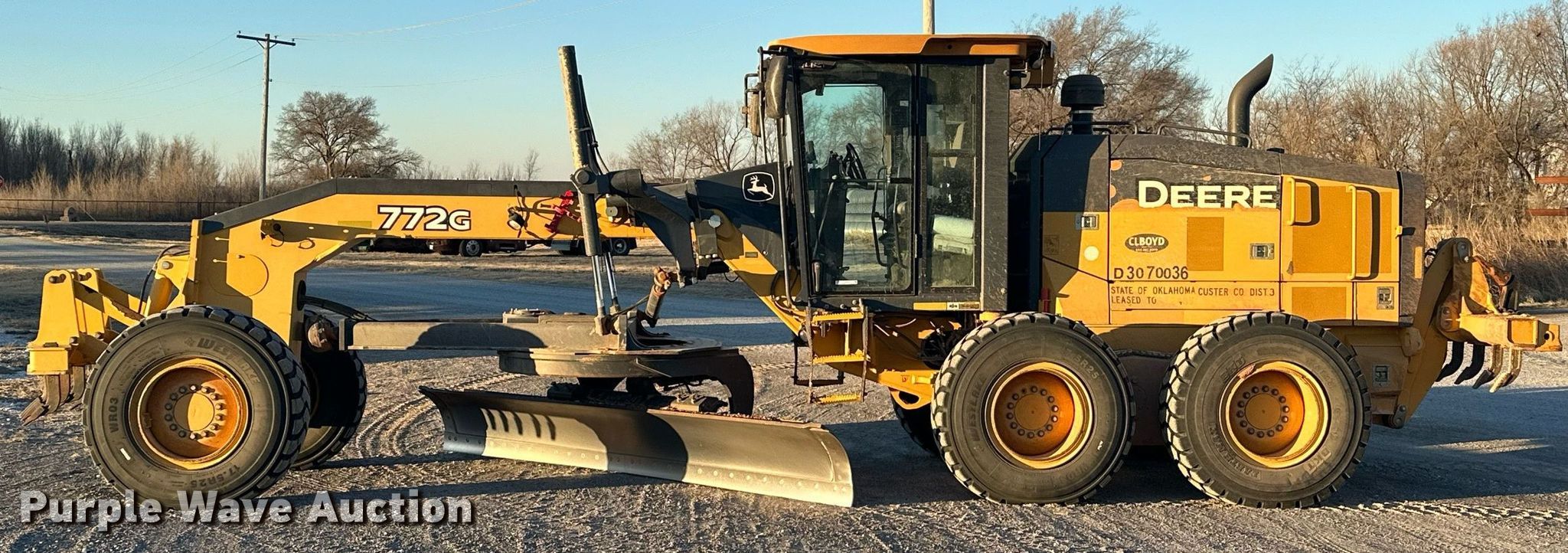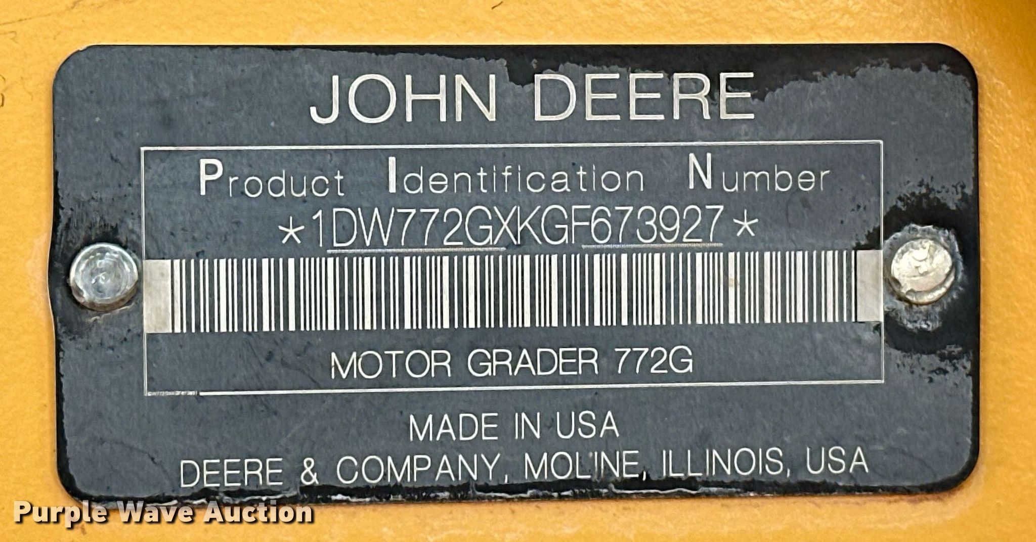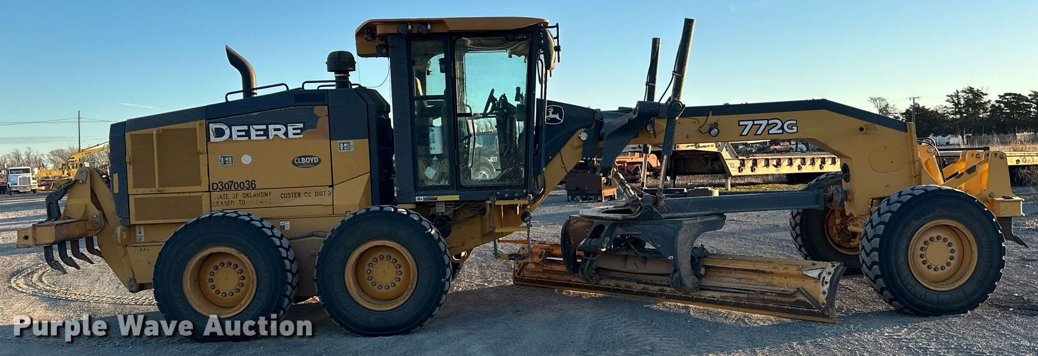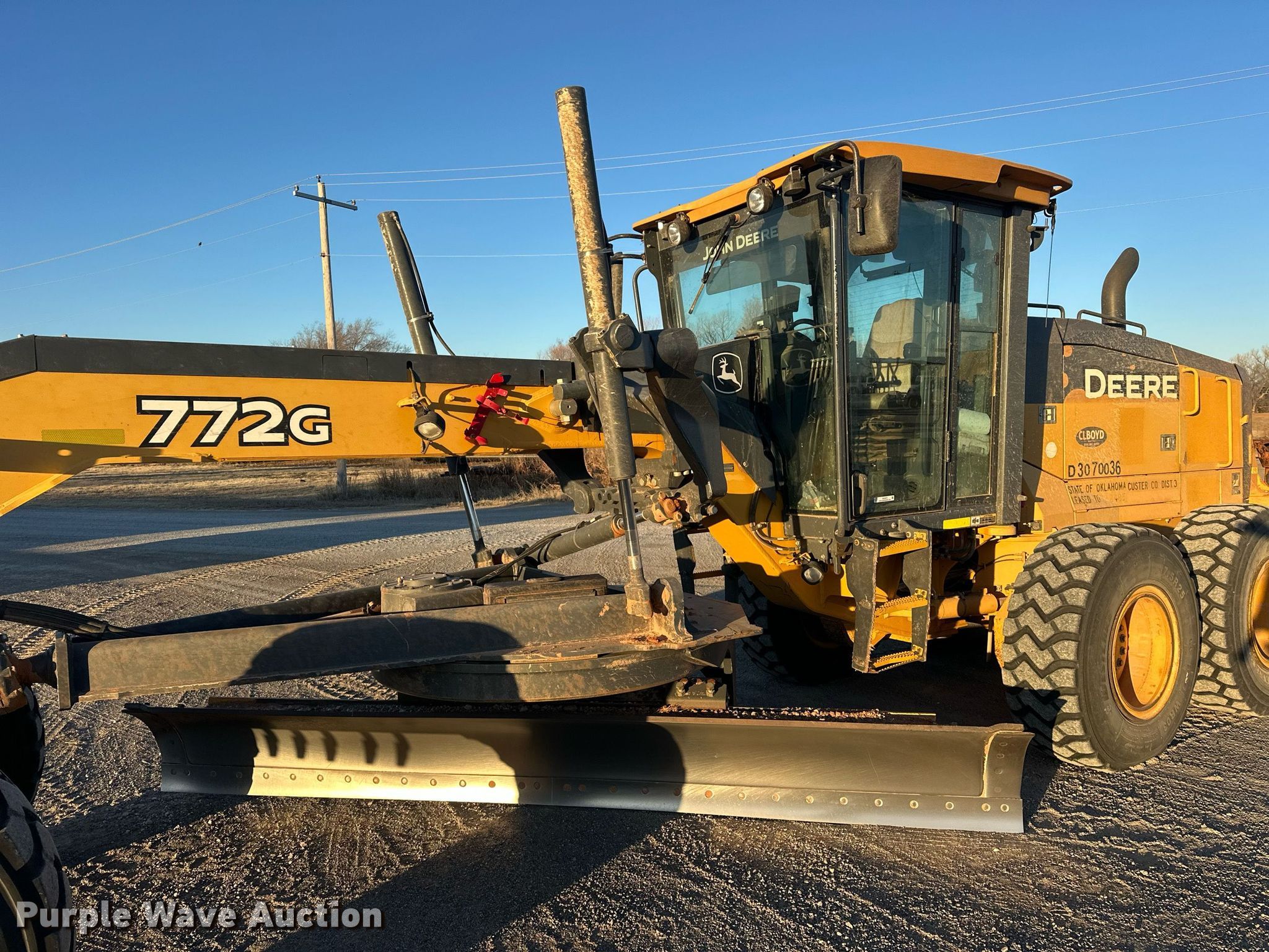 Purple Wave is selling a used Motor Grader in Oklahoma. This item is a 2016 John Deere 772G motor grader with the following: Hours: 10,936 on meter, Miles or hours may vary, unit still in use, Serial: 1DW772GXKGF673927