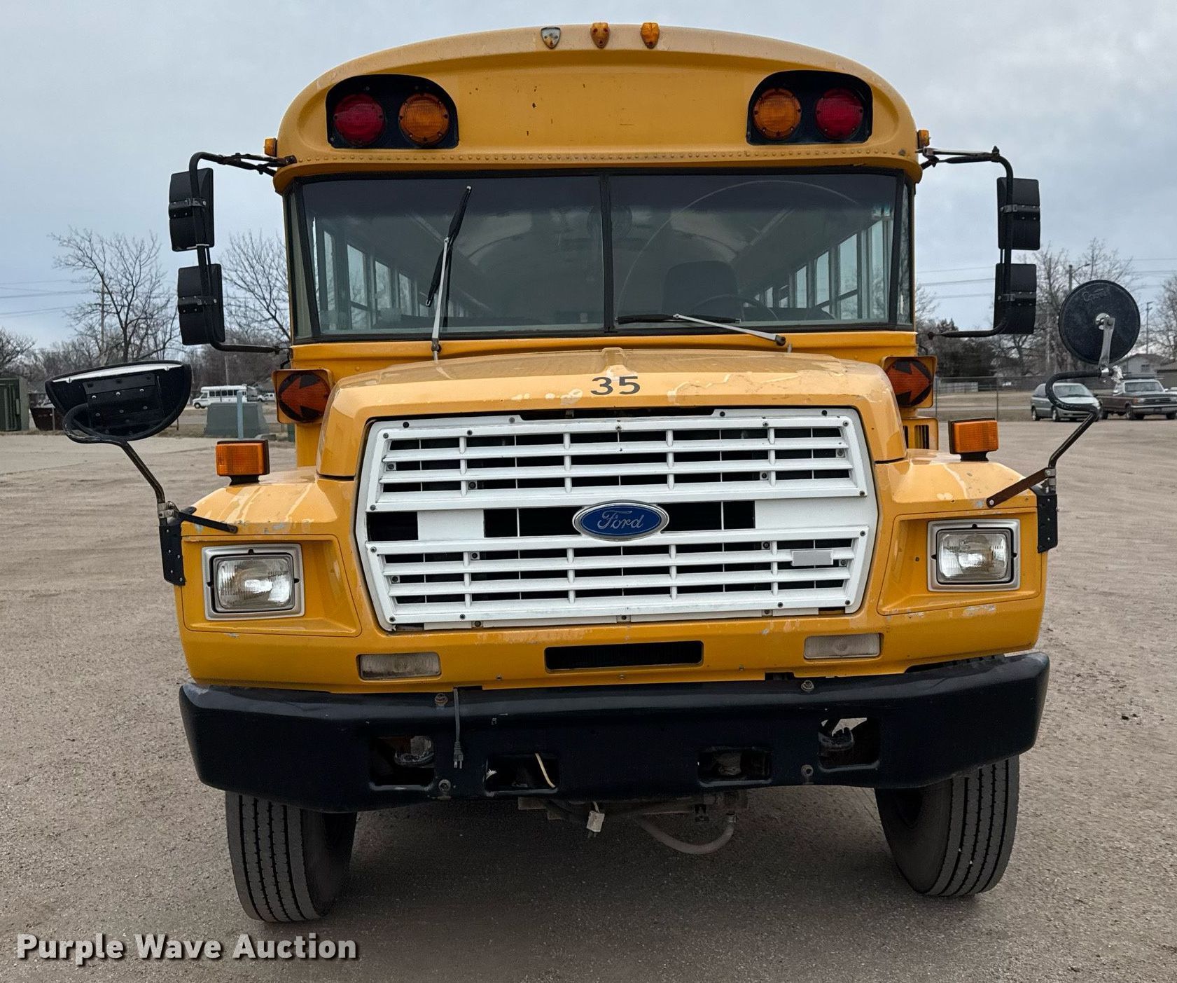 1993 Ford B700 school bus. Miles: 192,883 on odometer, VIN: 1FDPJ75P4PVA00361. Engine Displacement: 6.6L, Cylinders: 6, Fuel type: Diesel. Transmission Automatic. Chassis Axles: Single, Suspension: Spring, Brakes: Hydraulic, GVWR: 26,500 lbs. Interior Heat, Passengers: 65. Tires Size: 10R22.5. Notes Possible brake issues , Rear right side window cracked. Kansas title. Title distribution may be delayed up to 14 days from verification of funds. Kansas State Fair. Hutchinson, KS 67502