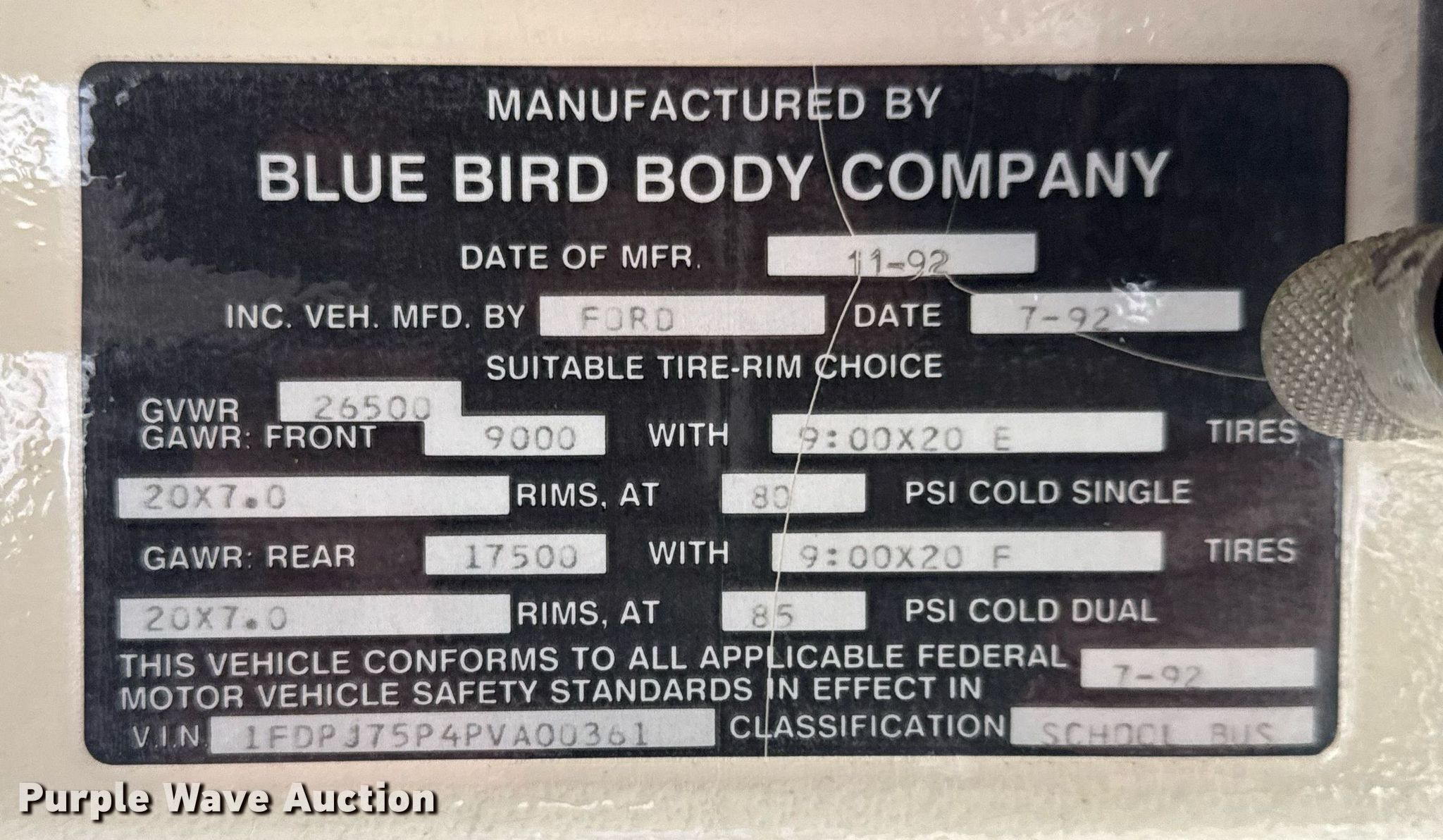 Purple Wave is selling a used Bus in Kansas. This item is a 1993 Ford B700 school bus with the following: Miles: 192,883 on odometer, VIN: 1FDPJ75P4PVA00361