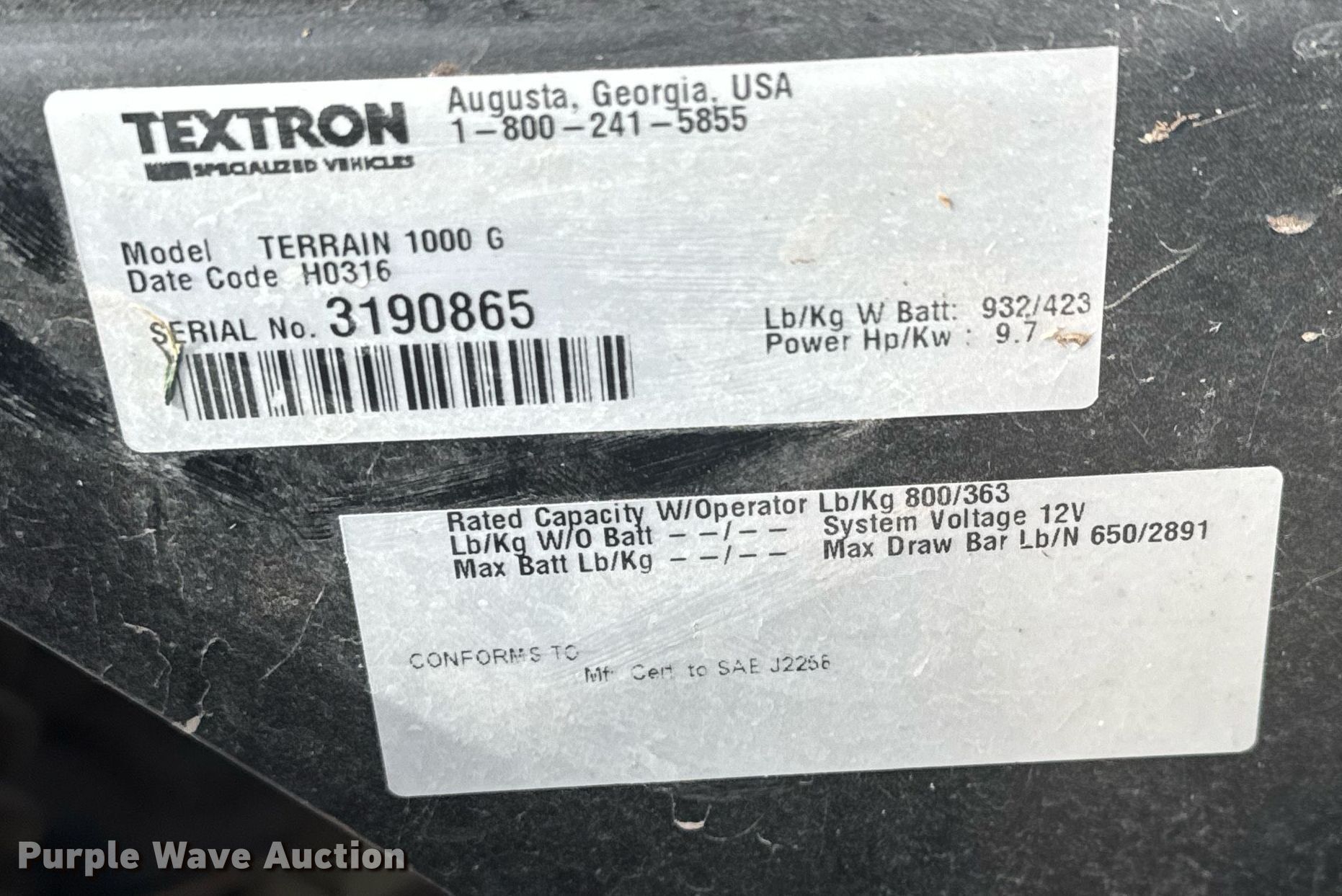 Purple Wave is selling a used Utility Vehicle in Kansas. This item is a 2016 E-Z-Go Terrain 1000 G utility vehicle with the following: Serial: 3190865