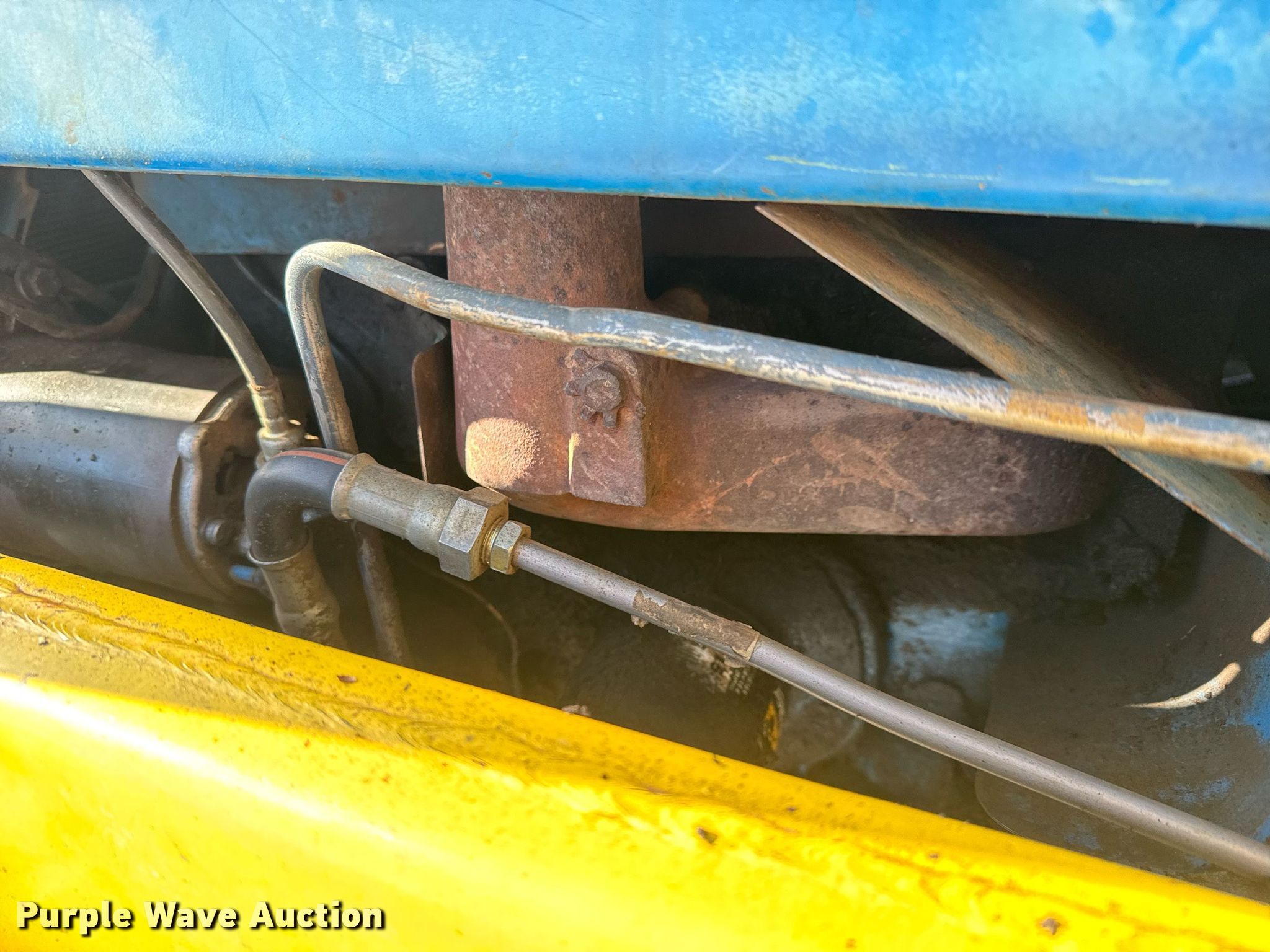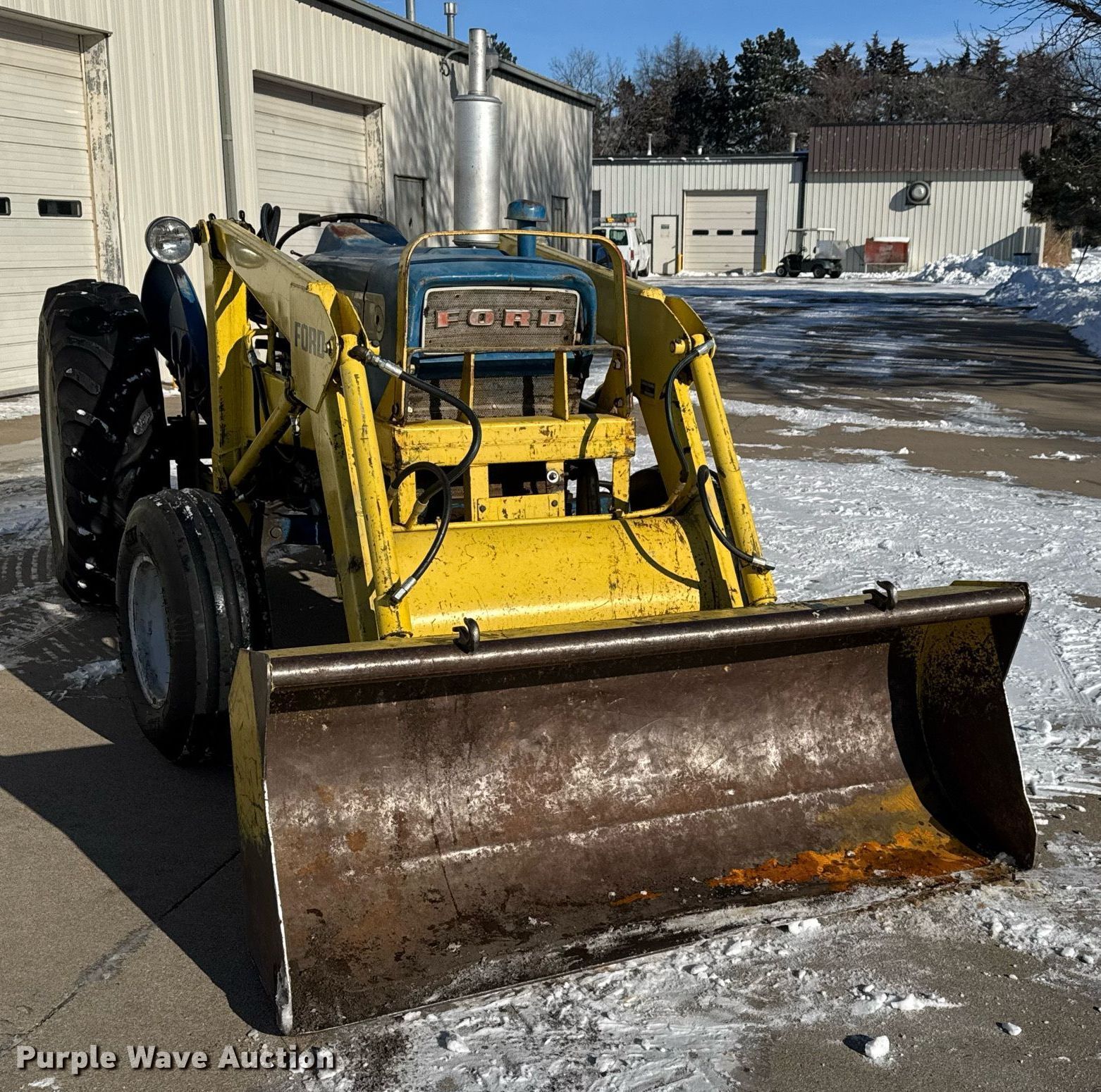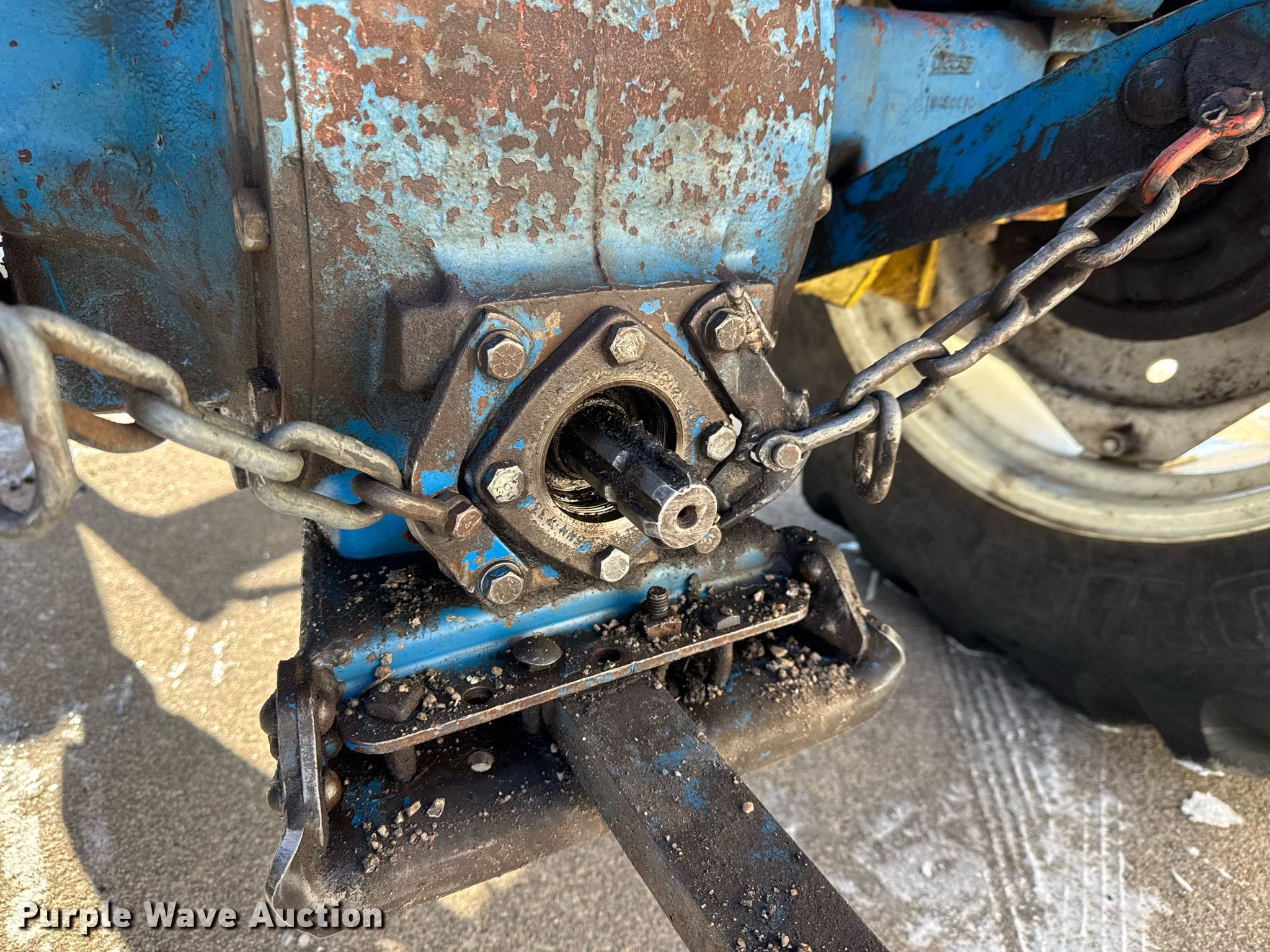 Ford 3000 tractor. Hours: 1,117 on meter. Engine Cylinders: 3, Fuel type: Gas. Transmission Manual, 4F - 1R. Features PTO: 540, Three point, Loader Ford, Controls: Two-lever, Bucket Width: 67".. Tires Front: 9.5L-15, Rear: 13.6-28 Fluid filled. Notes Oil leak. Hesston College. Hesston, KS 67062