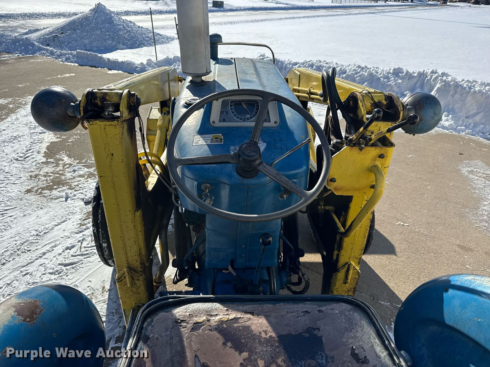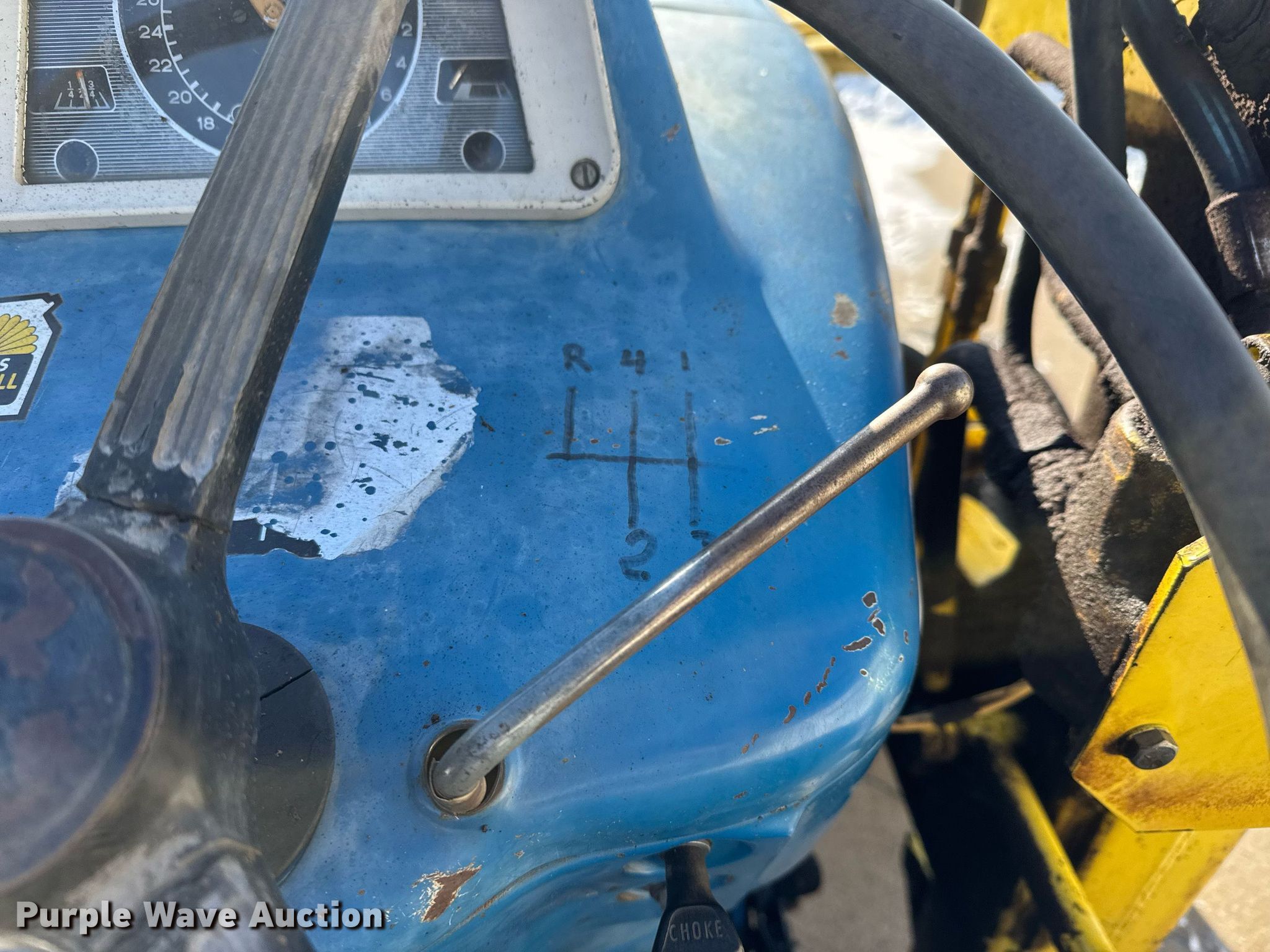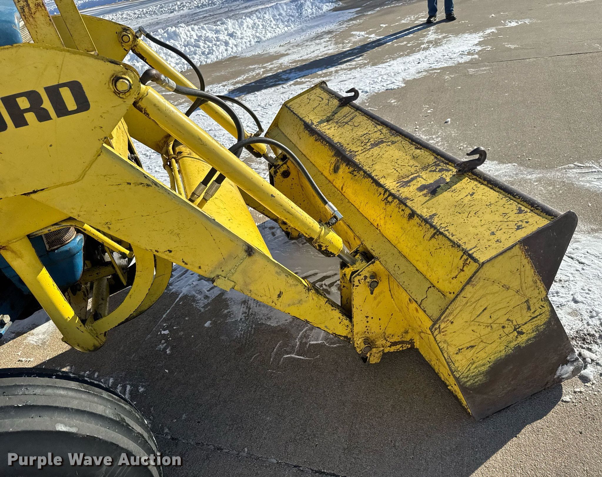 Ford 3000 tractor. Hours: 1,117 on meter. Engine Cylinders: 3, Fuel type: Gas. Transmission Manual, 4F - 1R. Features PTO: 540, Three point, Loader Ford, Controls: Two-lever, Bucket Width: 67".. Tires Front: 9.5L-15, Rear: 13.6-28 Fluid filled. Notes Oil leak. Hesston College. Hesston, KS 67062