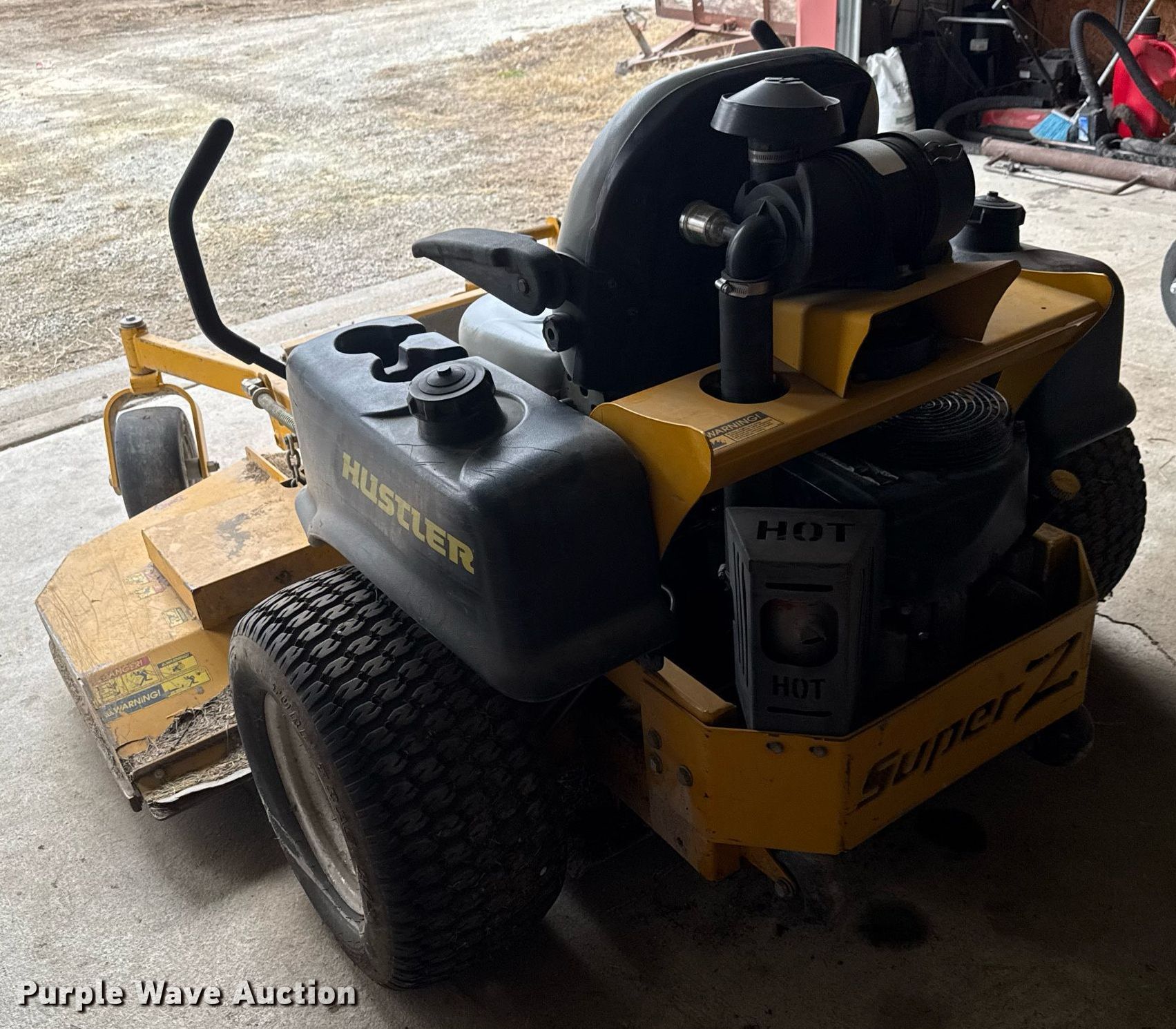 Purple Wave is selling a used Commercial Turf Mower in Kansas. This item is a 2007 Hustler Super Z ZTR lawn mower with the following: Hours: 2,033 on meter, Cutting width: 72"