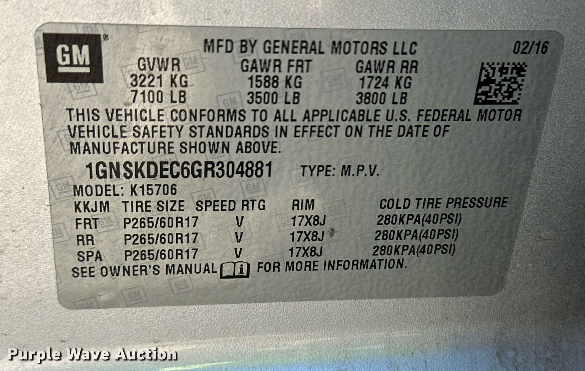 - VIN: 1GNSKDEC6GR304881