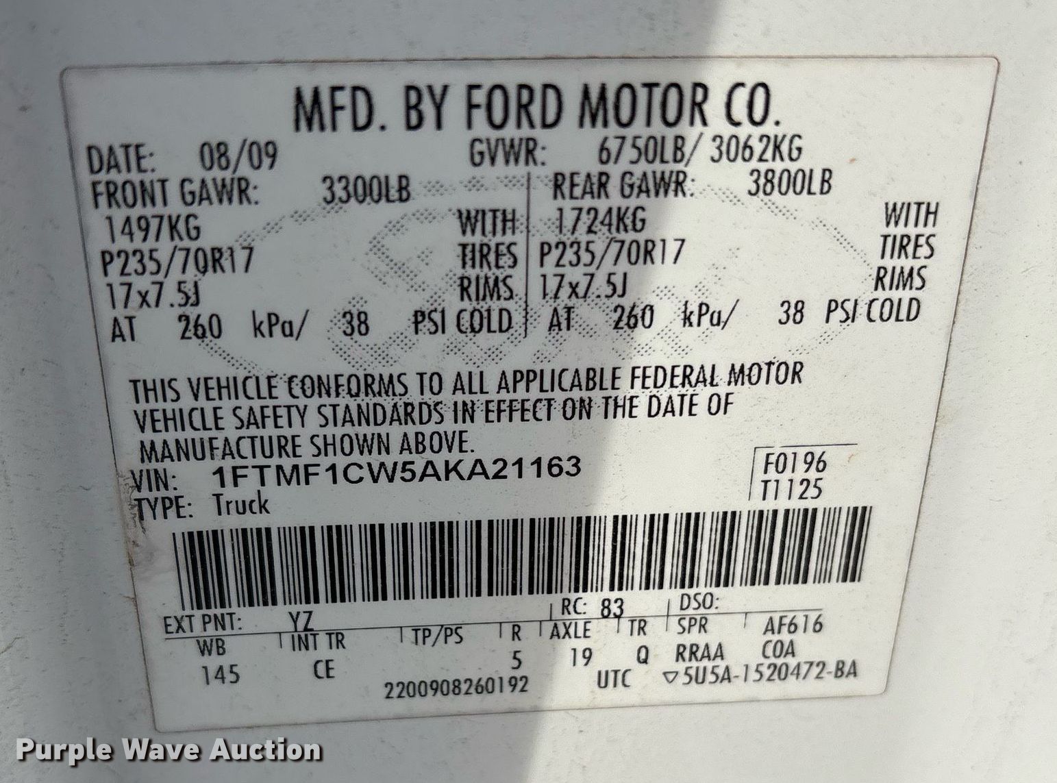 2010 Ford F150 pickup truck. Miles: 155,190 on odometer, VIN: 1FTMF1CW5AKA21163. Engine Displacement: 4.6L V8 SOHC, Cylinders: 8, Fuel type: Gas. Transmission Automatic. Interior AC, Heat. Tires Size: LT245/70R17. Notes Dash warning indicator: TPMS, Windshield chipped or cracked, Tailgate missing. Oklahoma title. Title distribution may be delayed up to 14 days from verification of funds. City of Hugo. Hugo, OK 74743