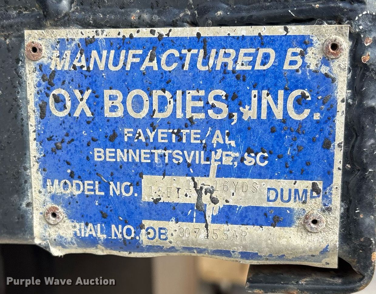 2007 Sterling L8500 dump truck. Miles: 172,025 on odometer, VIN: 2FZHAWDA07AY56356. Engine Caterpillar C9, Displacement: 8.8L, Cylinders: 6, Fuel type: Diesel. Transmission Eaton Fuller, Manual, Speed: 10. Chassis Axles: Tandem, Differential lock: Inter-axle, Suspension: Spring over walking beam, Brakes: Air, PTO, GVWR: 52,000 lbs FAWR: 12,000 lbs, IAWR: 20,000 lbs, RAWR: 20,000 lbs. Interior AC, Heat. Features Dump bed Ox Bodies, Capacity: 16 cu.yd., 15' L x 8' W, Side height: 45", Side board height: 8", Bed type: Steel, Roll tarp, Ram: Single, End gate: Air operated. Tires Size: 11R22.5. Notes Dash disassembled, parts may be missing. Oklahoma title. Title distribution may be delayed up to 14 days from verification of funds. Latimer County District 2. Tuskahoma, OK 74574