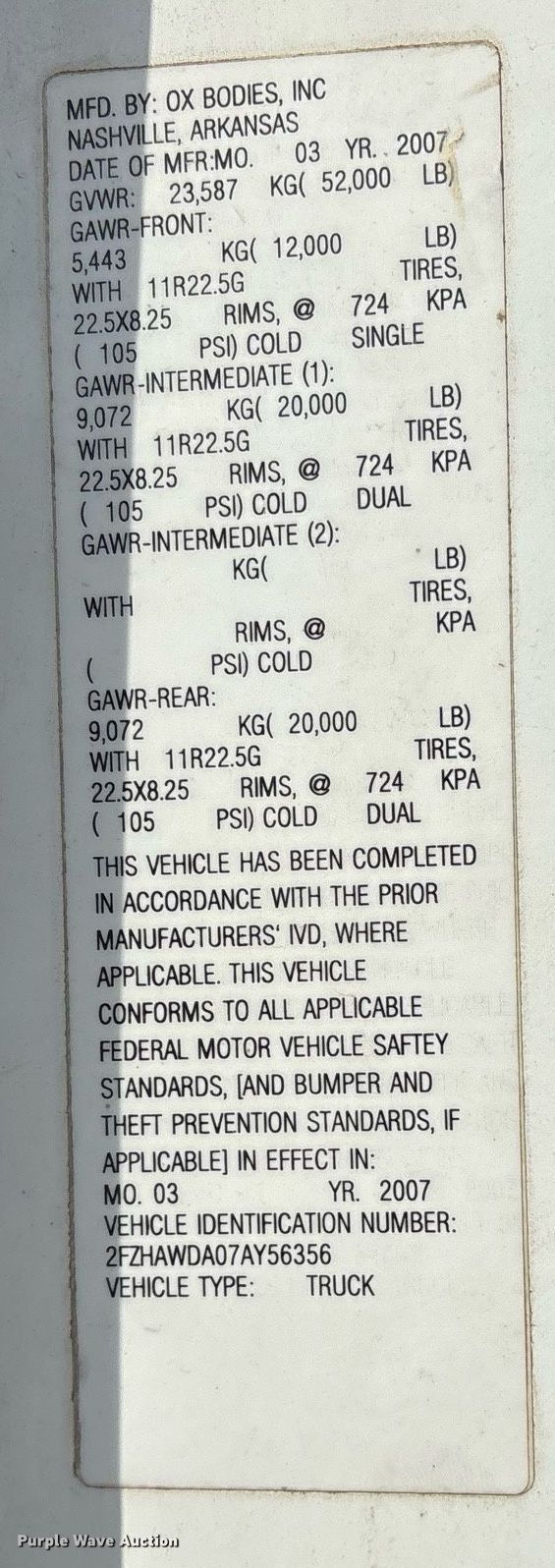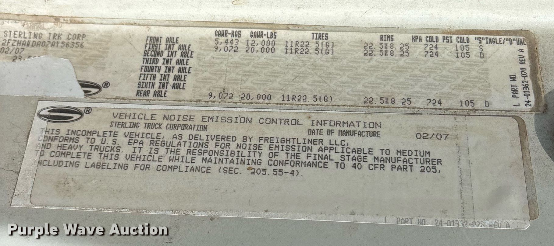 Purple Wave is selling a used Construction Dump Truck in Oklahoma. This item is a 2007 Sterling L8500 dump truck with the following: Miles: 172,025 on odometer, VIN: 2FZHAWDA07AY56356