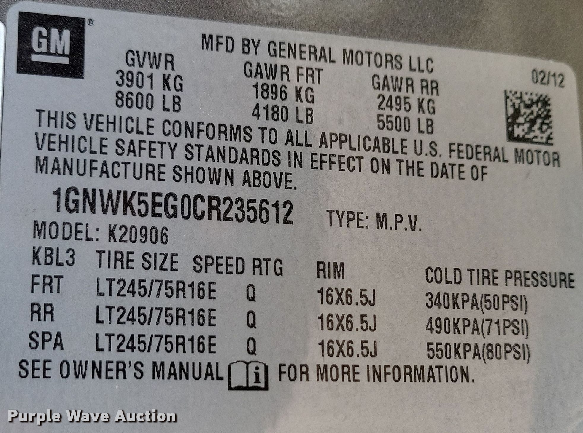 Purple Wave is selling a used Passenger Vehicle in South Dakota. This item is a 2012 Chevrolet Suburban SUV with the following: Miles: 154,479 on odometer, VIN: 1GNWK5EG0CR235612, Unit #: BG220