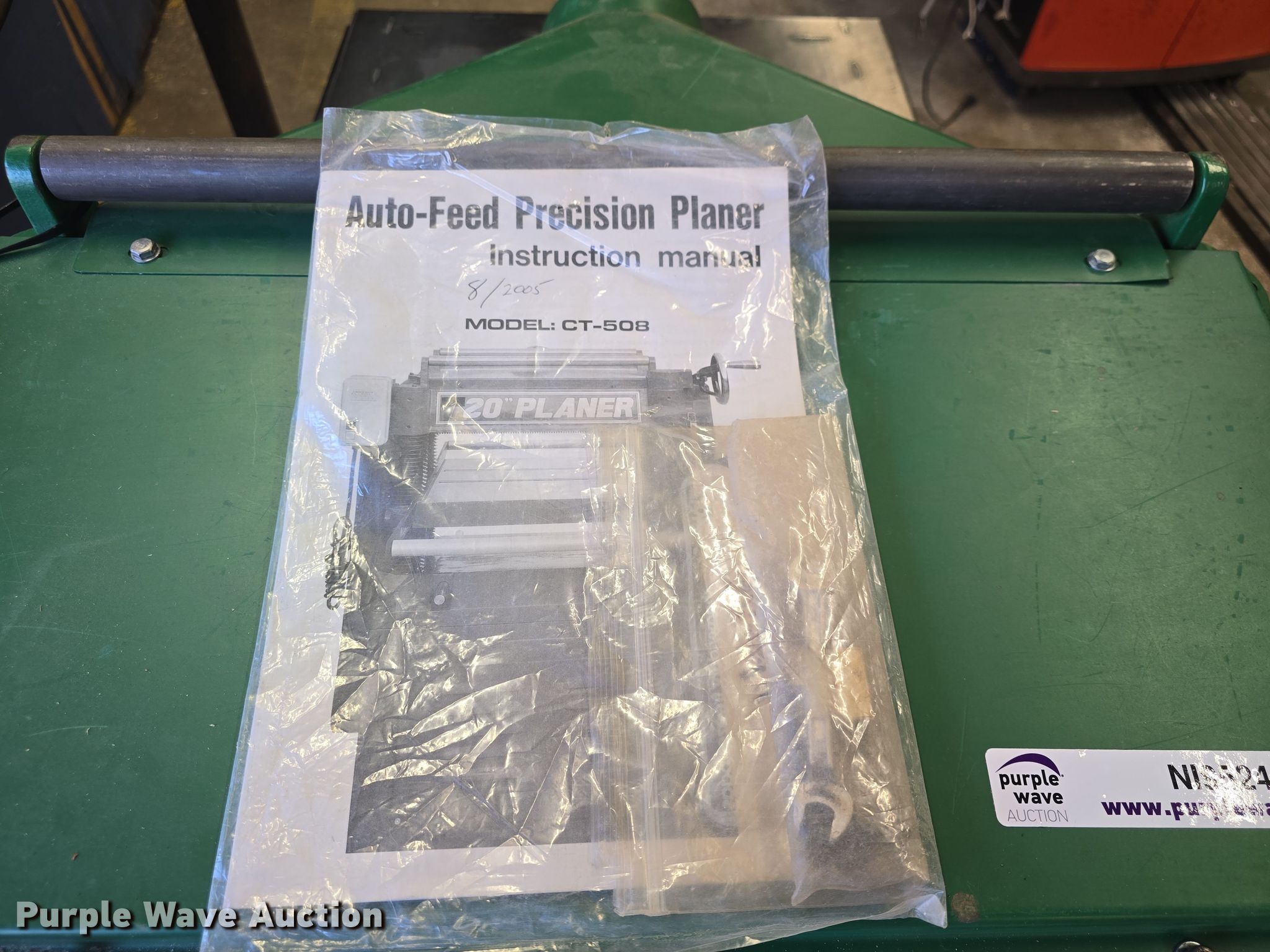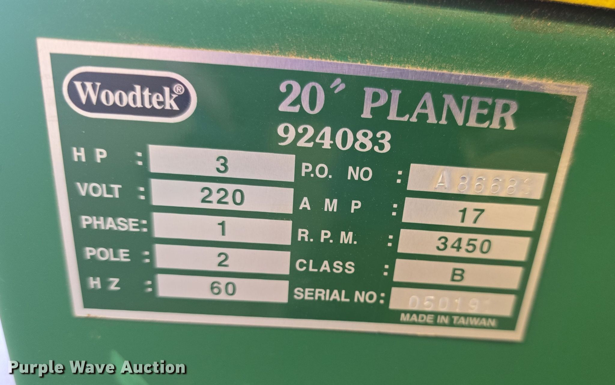 Purple Wave is selling a used Woodworking Equip. in Kansas. This item is a 2005 Woodtek wood planer with the following: Serial: 050191, Capacity: 20", HP: 3, Phase: Single, Volts: 220