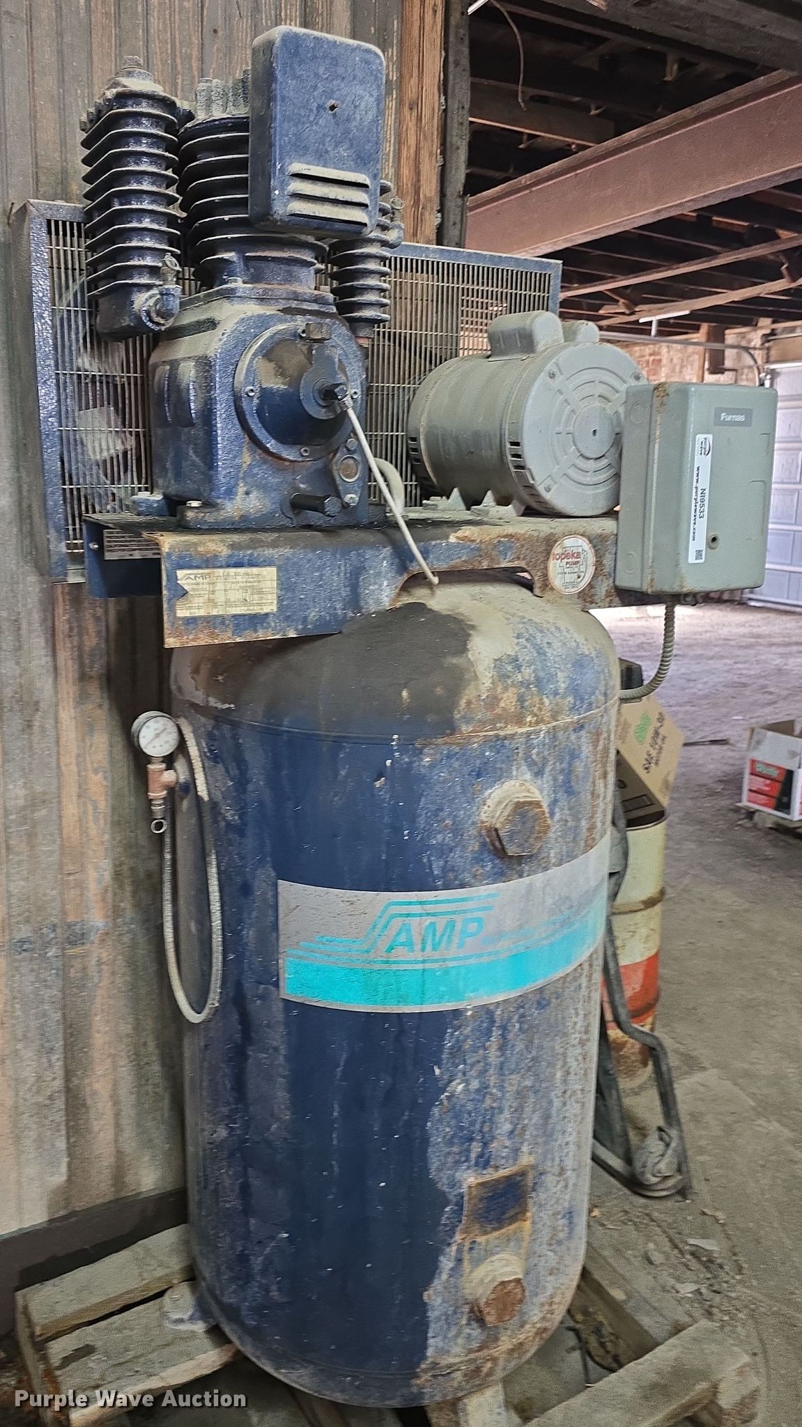 Purple Wave is selling a used Air Compressor in Kansas. This item is a AMP C22A-80V air compressor with the following: Serial: S0295053
