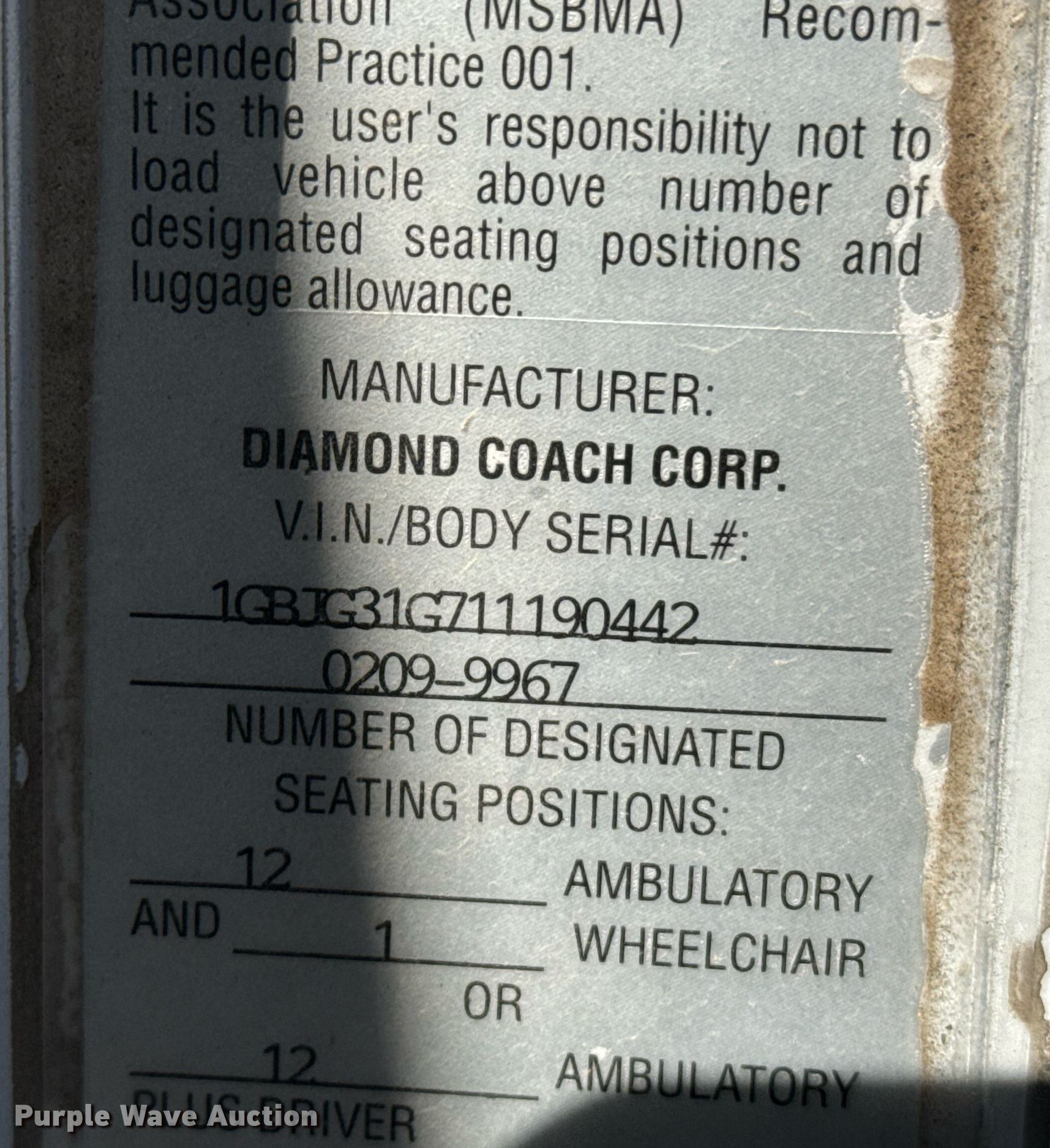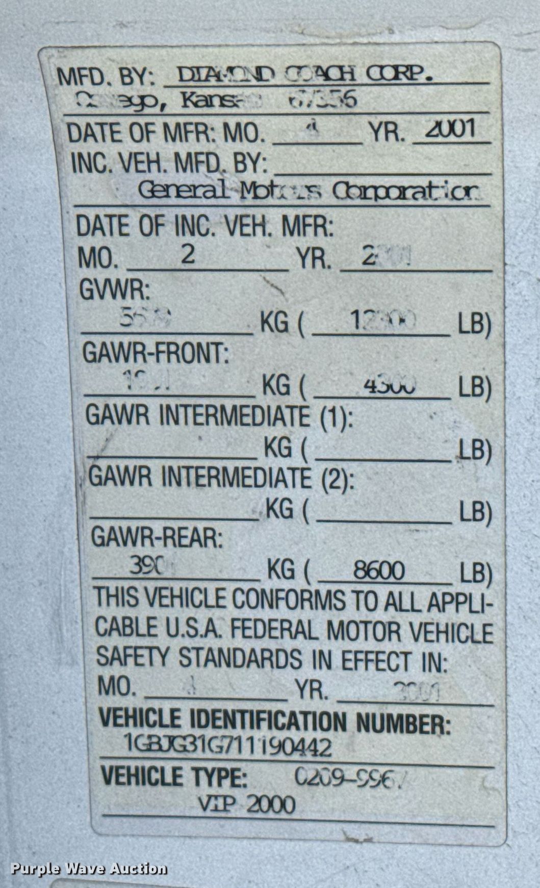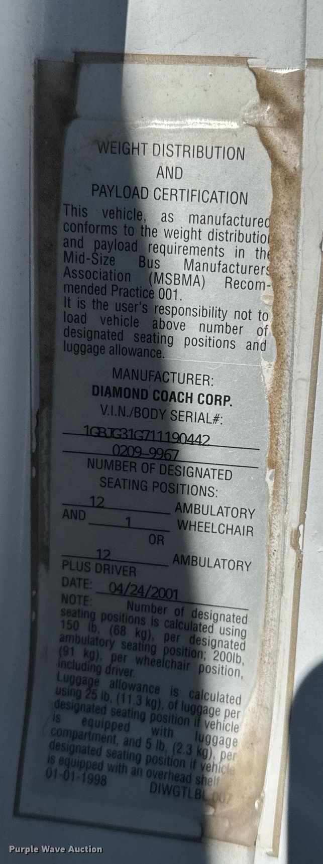 Purple Wave is selling a used Bus in Kansas. This item is a 2001 Chevrolet Express 3500 shuttle bus with the following: Miles: 103,309 on odometer, VIN: 1GBJG31G711190442