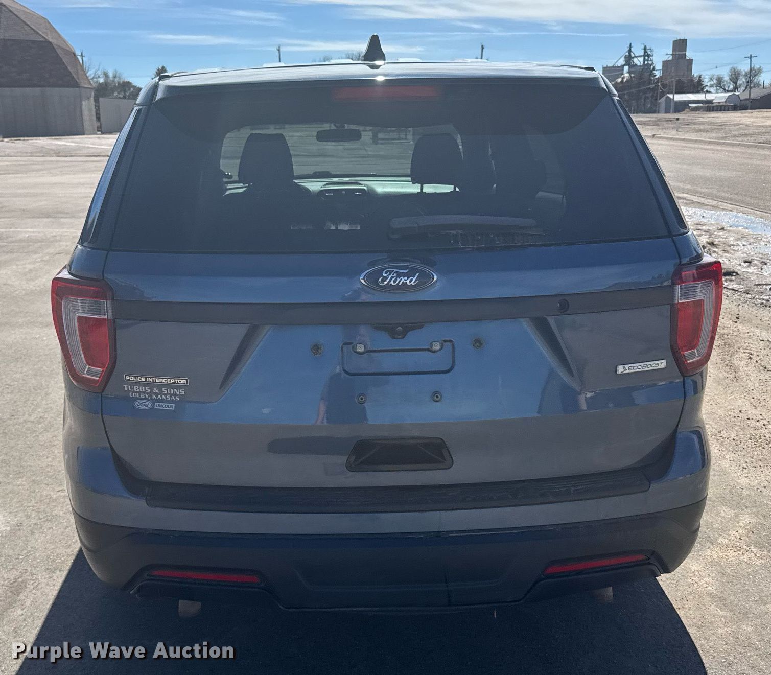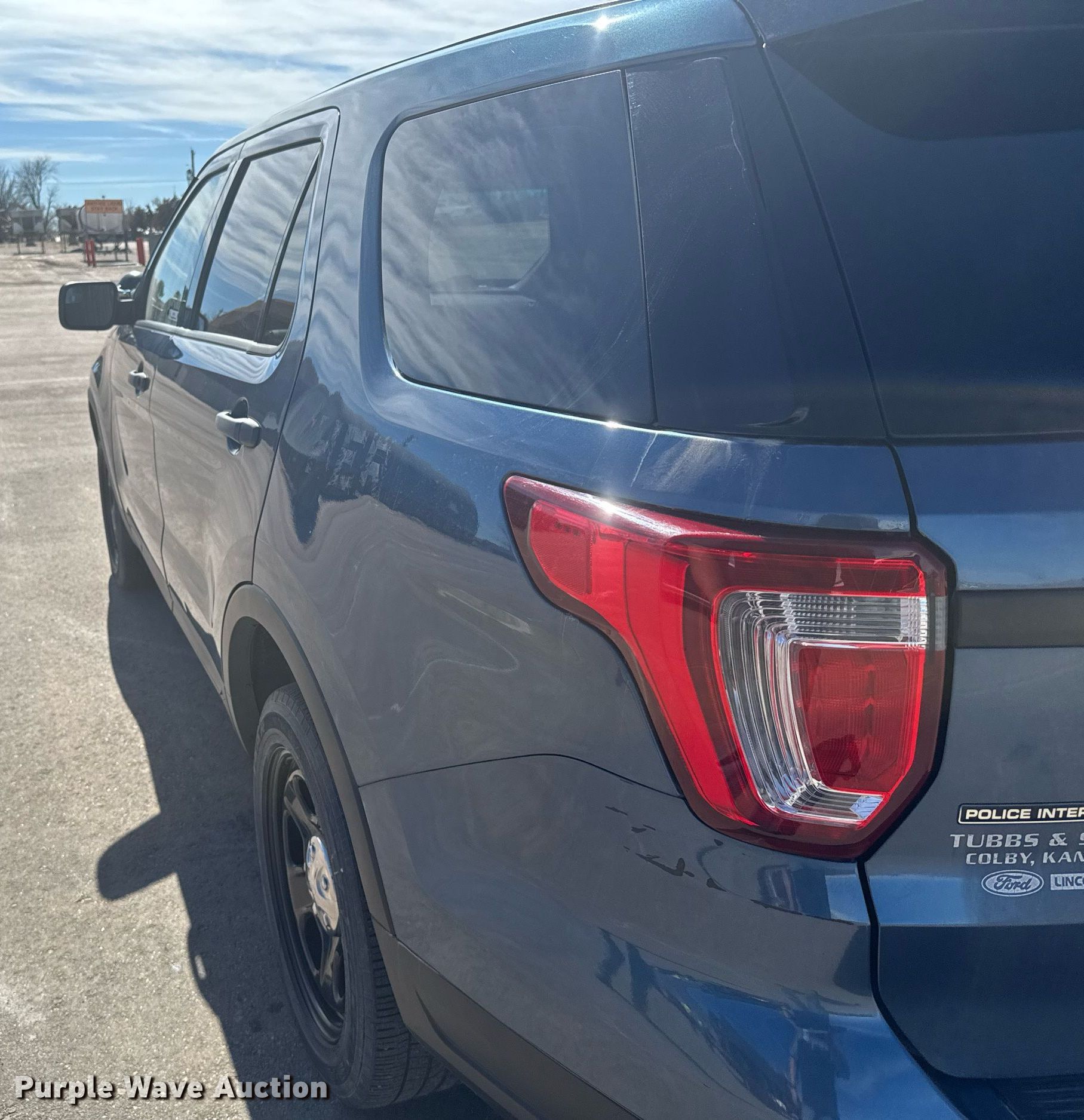 2018 Ford Explorer Police Interceptor SUV. Miles: 127,805 on odometer, VIN: 1FM5K8AT3JGC74739. Engine Displacement: 3.5L V6 DOHC, Cylinders: 6, Fuel type: Gas. Transmission Automatic, Four wheel drive. Interior AC, Heat, Seat: Power driver, Power windows, Power locks, Cruise control. Tires Size: 245/55R18. Kansas title. Title distribution may be delayed up to 14 days from verification of funds. Wallace County Sheriff. Sharon Springs, KS 67758