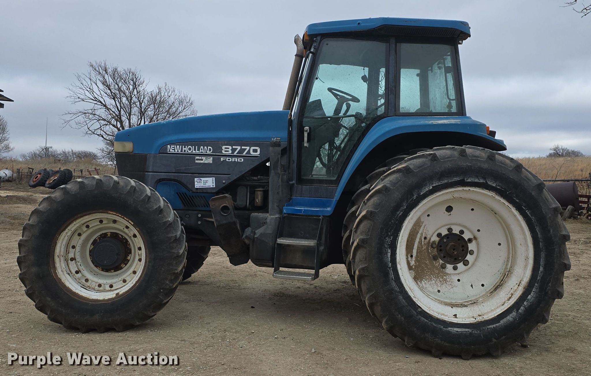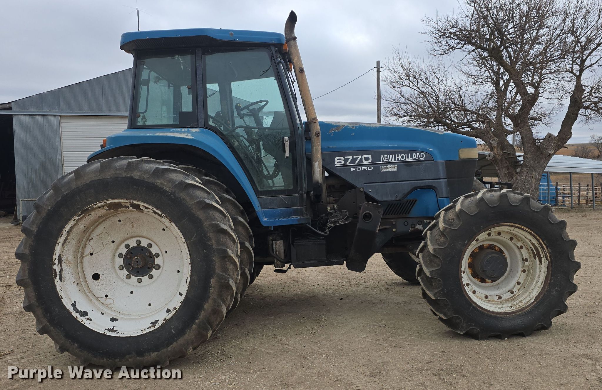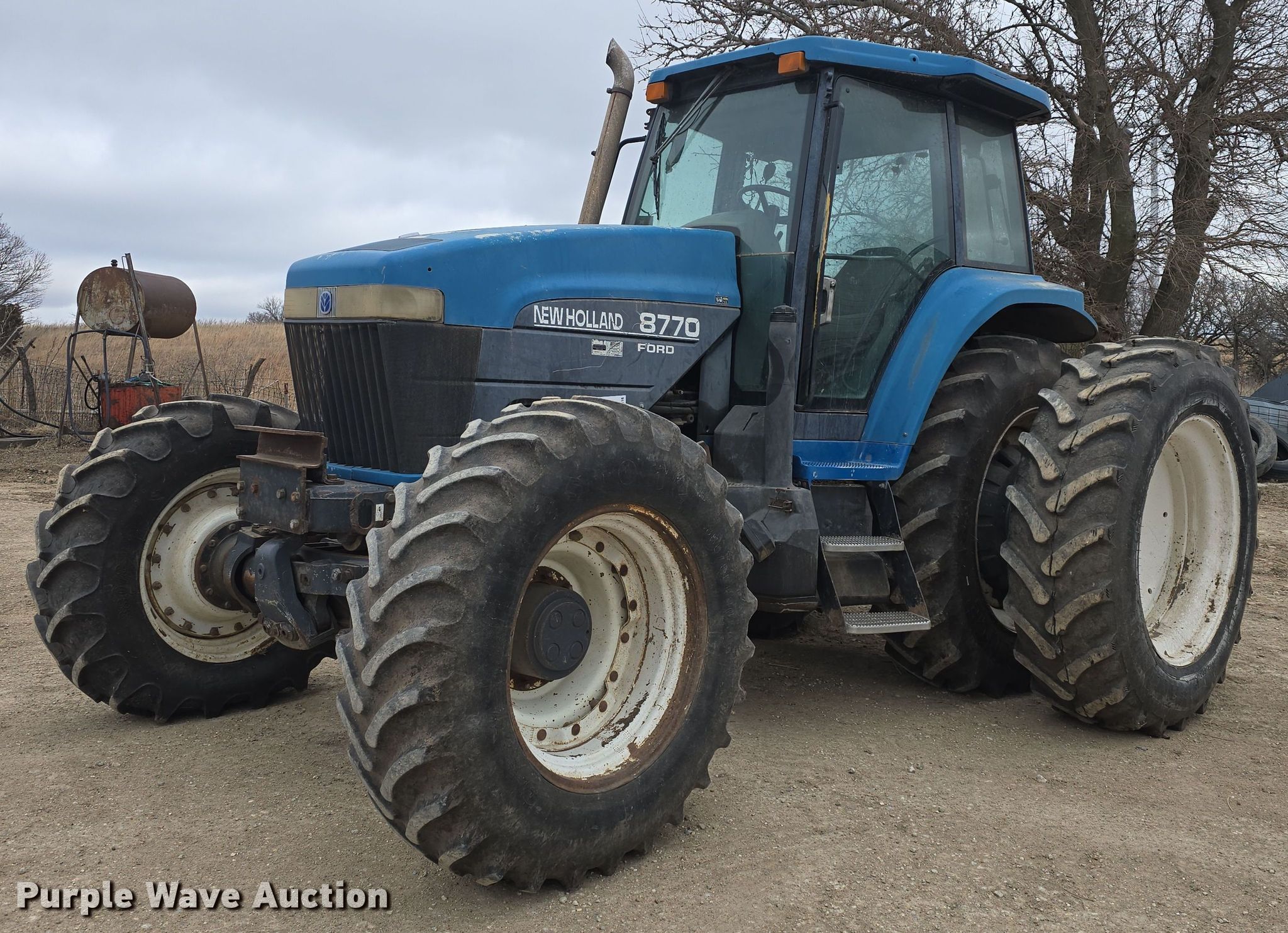 Purple Wave is selling a used Tractor in Kansas. This item is a 1997 New Holland 8770 MFWD tractor with the following: Hours: 14,237 on meter, Serial: D413342