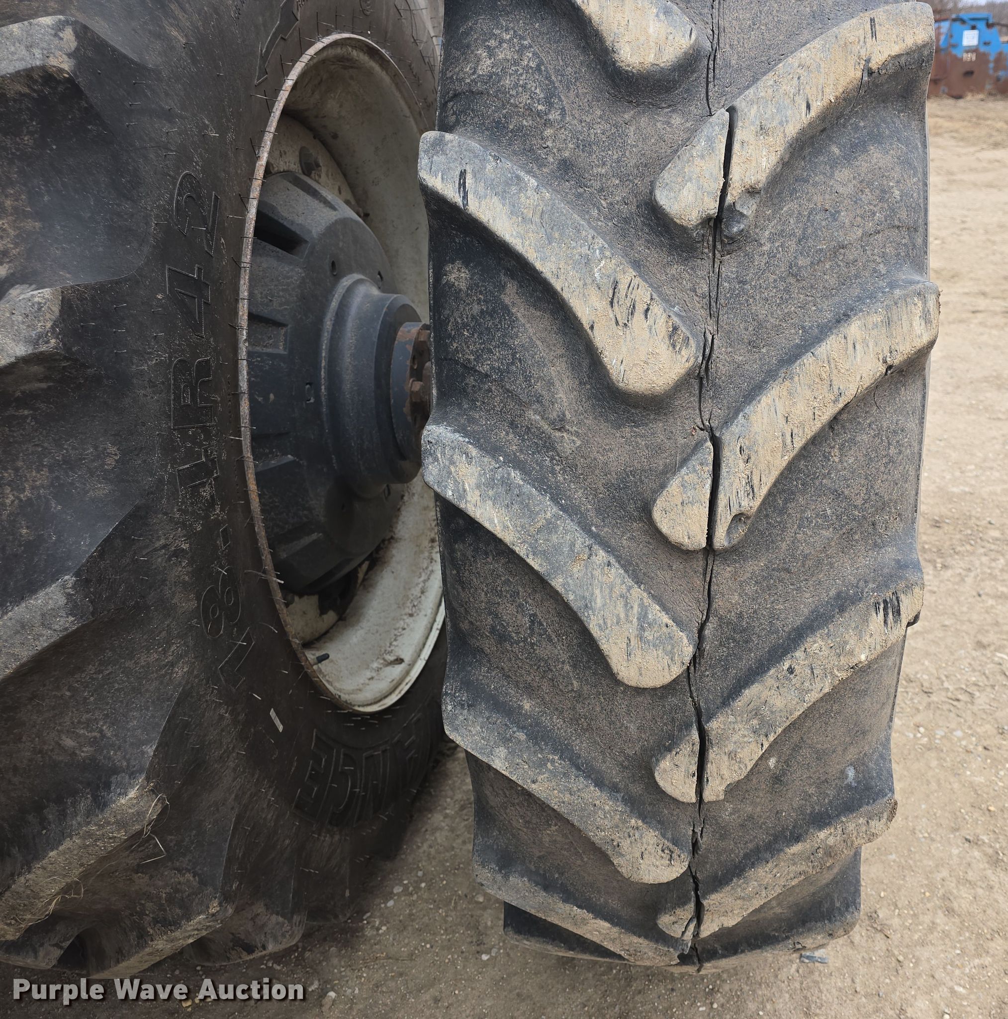 1997 New Holland 8770 MFWD tractor. Hours: 14,237 on meter, Serial: D413342. Engine Ford Constant Power Plus, Displacement: 7.5L, Cylinders: 6, Fuel type: Diesel, HP: 190. Transmission Powershift, 16F - 9R, Differential lock. Operators station AC, Heat. Features PTO: 1000, Three point, Seven pin outlet, Hydraulic remote sets Side: 3, Rear: 4. Tires Front: 380/85R30, Rear: 480/80R42, Duals. Notes Loader joystick not included, Radio not included. Cuba, KS 66940
