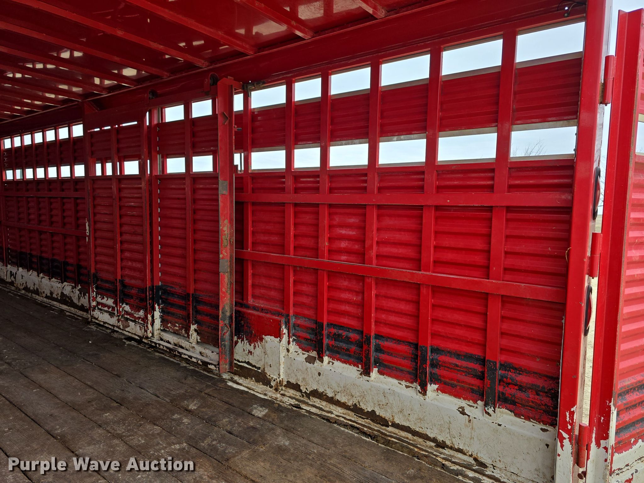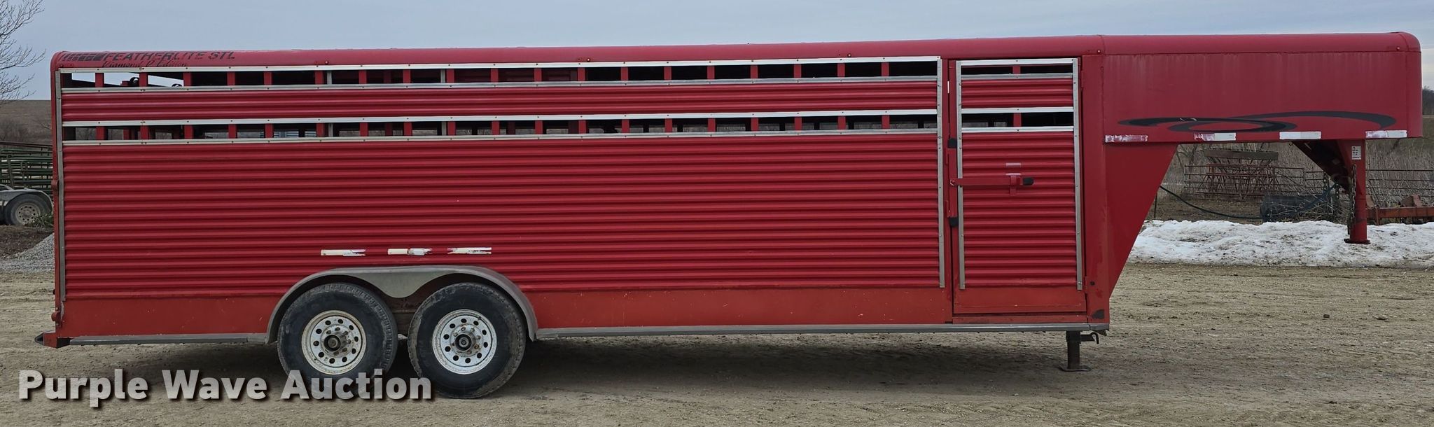 2004 Featherlite Inc. 5360 livestock trailer. VIN: 4FGL024214H066787. Dimensions Overall: 33' L x 94" W, Body: 24' L x 84" W, Side height: 72". Features Center gates: 1, Ground load. Chassis Hitch: Gooseneck, Landing gear: Single, Suspension: Spring, Brakes: Electric, Axles: Tandem, GVWR: 14,000 lbs, GAWR: 6,084 lbs. Tires Steel wheels, Size: ST225/90R16. Kansas title. Title distribution may be delayed up to 14 days from verification of funds. Stoller Farms LLC. Sabetha, KS 66534