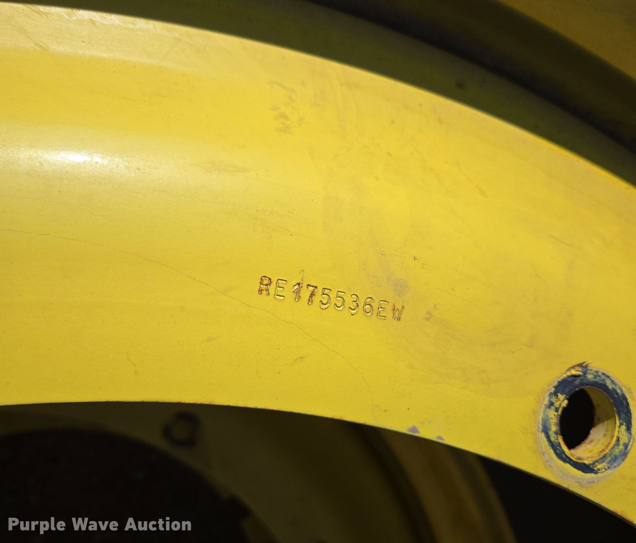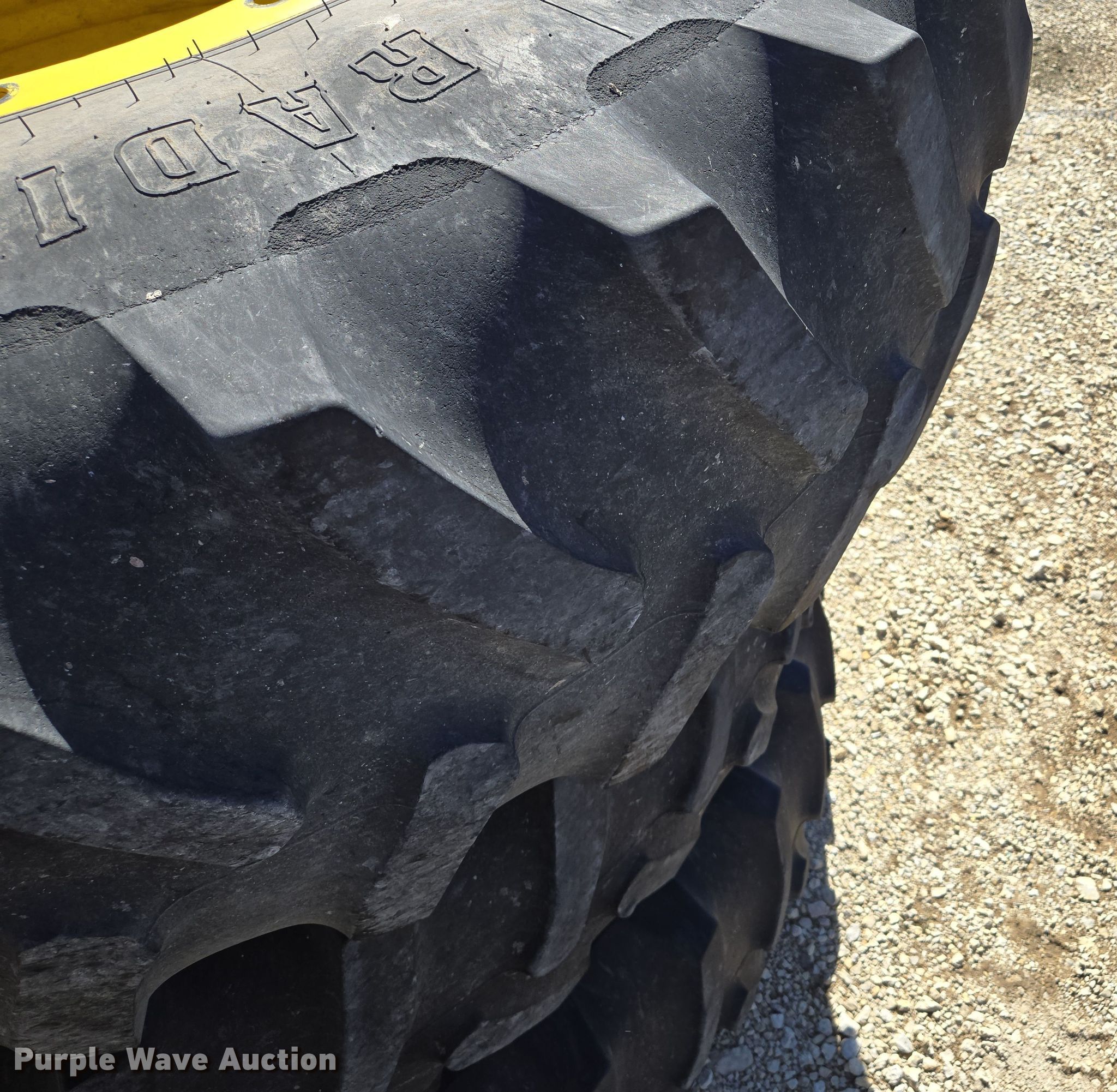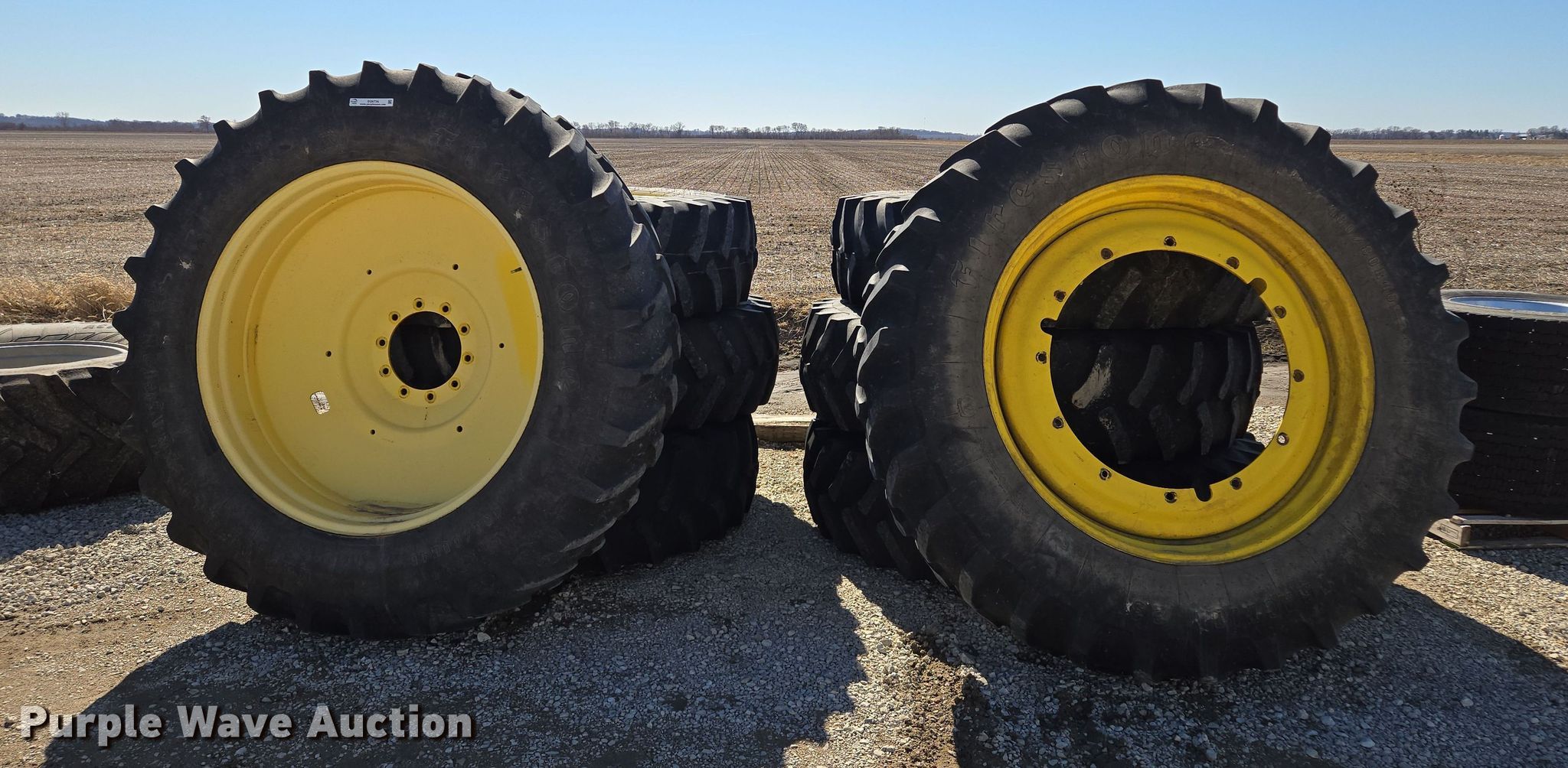 (8) tractor tires and wheels. Tire size: 480/80R46 (4) Inside dual tractor tires and wheels, (4) Outside dual tractor tires and wheels, Removed from a John Deere 9410R. MFA Ag Inc. Norborne, MO 64668