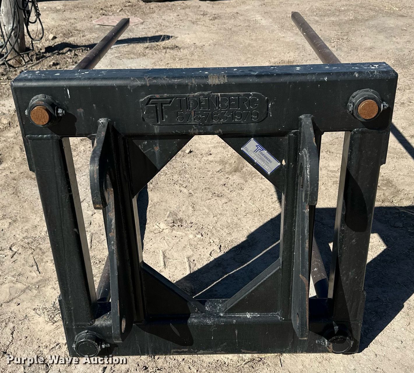 Purple Wave is selling a used Wheel Loader Attach. in Texas. This item is a Tidenberg bale spear with the following: Serial: TF1020CAT187, Spear length: 60"