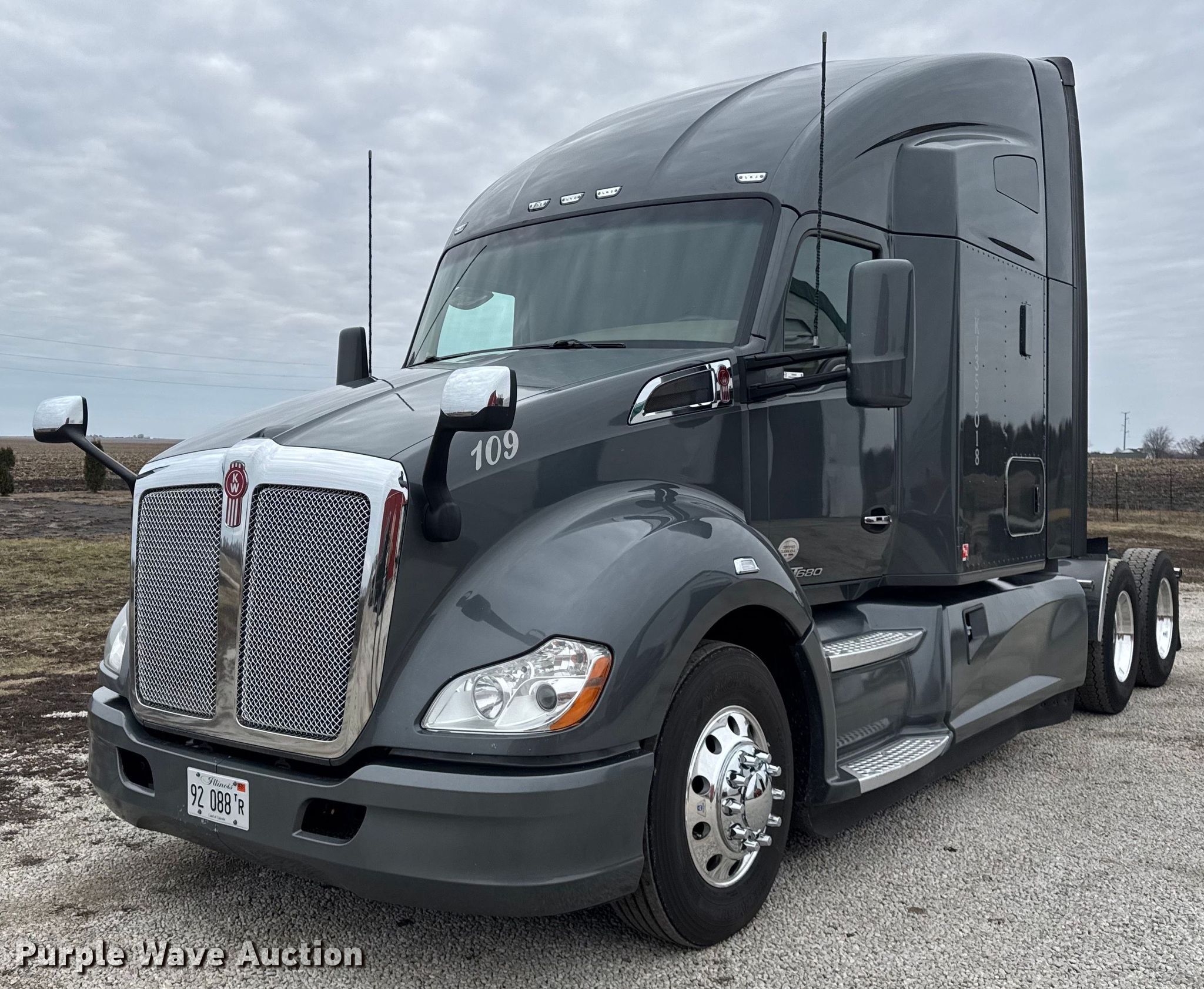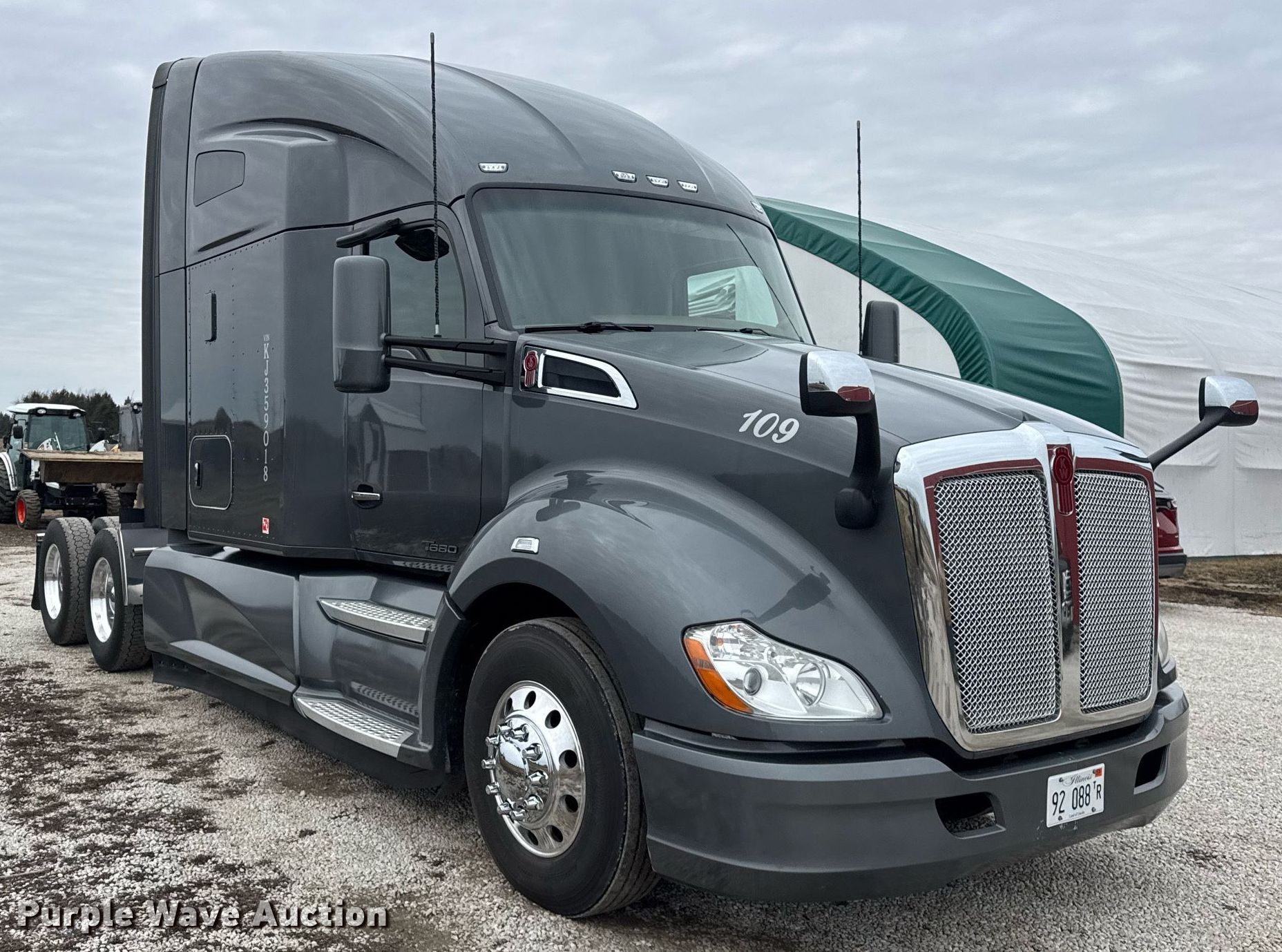 Purple Wave is selling a used Truck Tractor in Illinois. This item is a 2019 Kenworth T680 semi truck with the following: Miles: 481,616 on odometer, Hours: 22,023 on meter, VIN: 1XKYDP9X1KJ359018