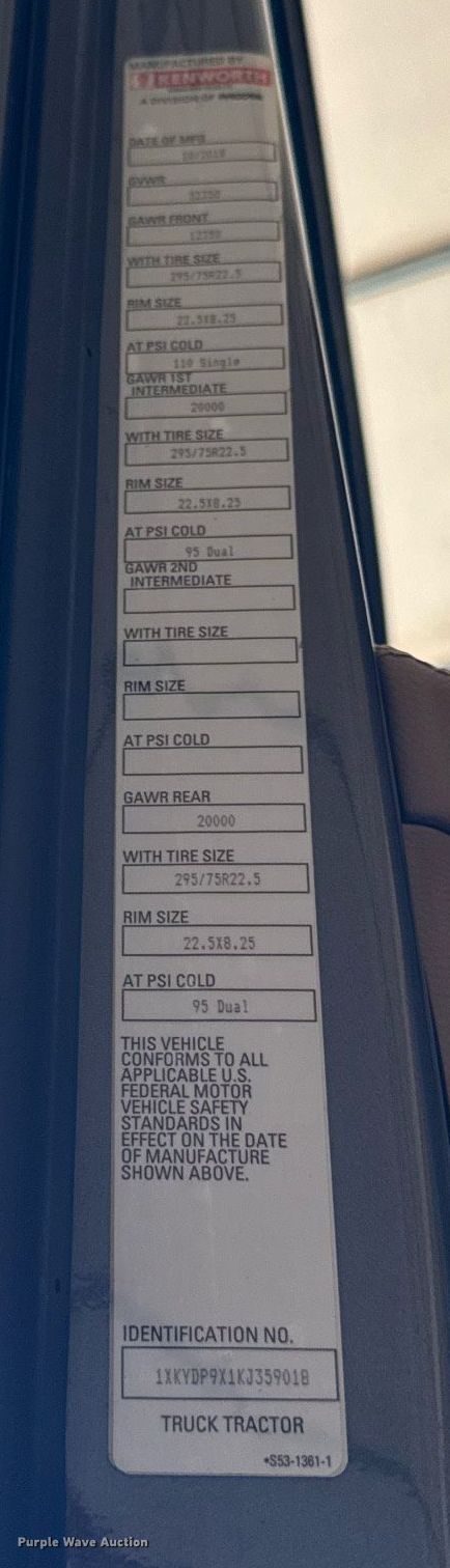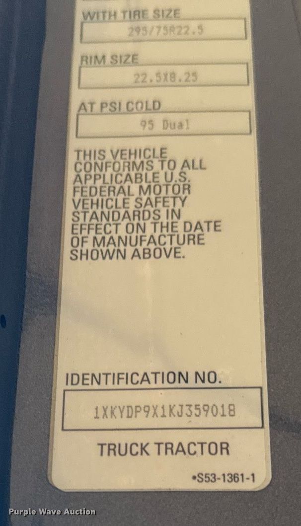 - VIN: 1XKYDP9X1KJ359018