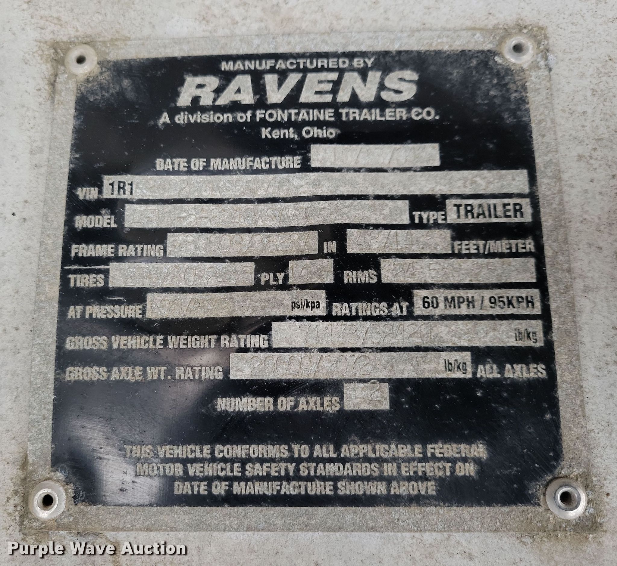 2005 Ravens flatbed trailer. VIN: 1R1F248265K550640. Dimensions Overall: 48' x 102" W, Deck height: 55". Features Deck type: Aluminum, Rolling tarp system. Chassis Landing gear: Dual, Suspension: Air, Brakes: Air, Axles: Spread, GVWR: 71,473 lbs, GAWR: 20,000 lbs. Tires Aluminum wheels, Size: 285/75R24.5. Notes Dunnage, chains, and binders not included. South Dakota title. Title distribution may be delayed up to 14 days from verification of funds. Dakota Express. Yankton, SD 57078