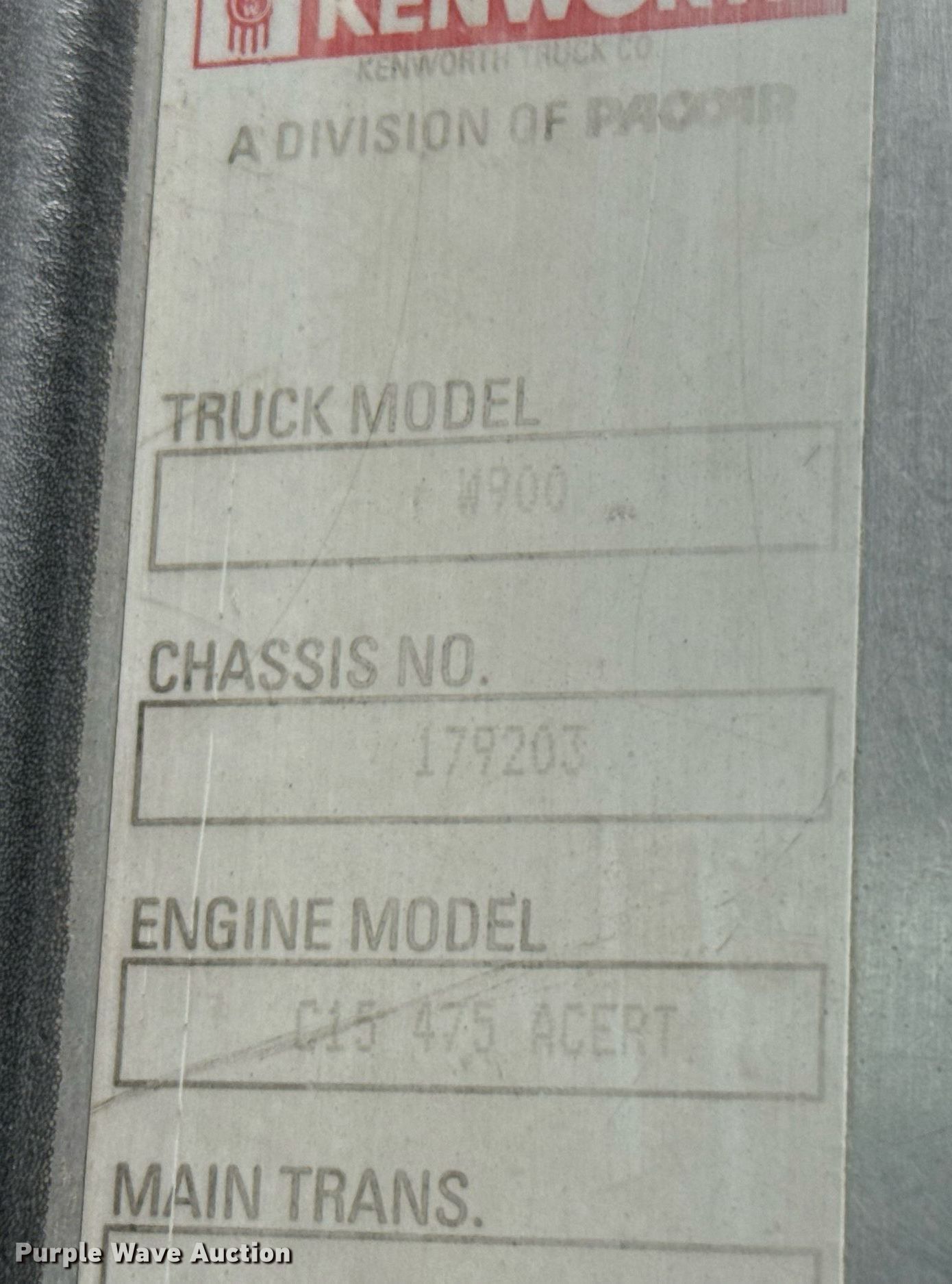 2007 Kenworth W900 semi truck. Miles: 1,440,743 on odometer, Hours: 16,758 on meter, VIN: 1XKWDB9X37J179203, Unit #: L209. Engine Caterpillar C15 475 Acert, Cylinders: 6, Fuel type: Diesel, Engine brake. Transmission Eaton, Manual. Chassis Axles: Tandem, Gear ratio: 3.36, Differential lock: Inter-axle, Suspension: Air Dump valves, Brakes: Air, GVWR: 48,000 lbs. Interior AC, Heat, Heated mirrors, Power windows, Power locks, Cruise control, Air ride cab, Sleeper Model: AeroCab, Sleeper length: 60", Beds: Single, Refrigerator, Rear climate control. Features Deck plate: Aluminum, Fifth wheel type: Air operated, Sliding, Fuel tank: Dual. Tires Front: 315/80R22.5, Rear: 285/75R24.5. Notes Dash warning indicator: ABS, Windshield chipped or cracked, Dead battery, Coolant leak at radiator cap. Texas title. Title has a lien that will be released following the close of the auction. Title distribution may be delayed up to 30 days from verification of funds. River Road Aggregates. San Angelo, TX 76903
