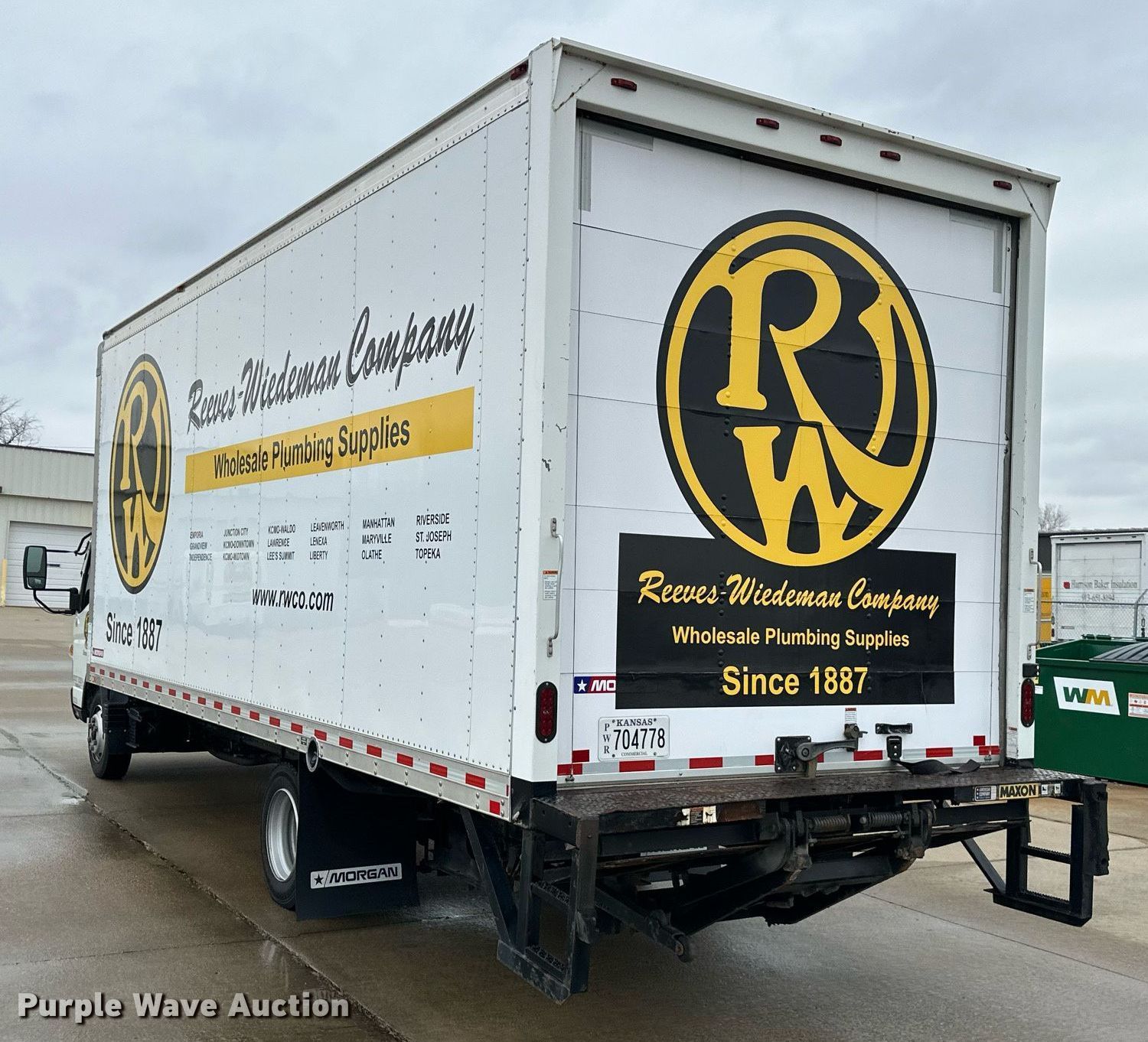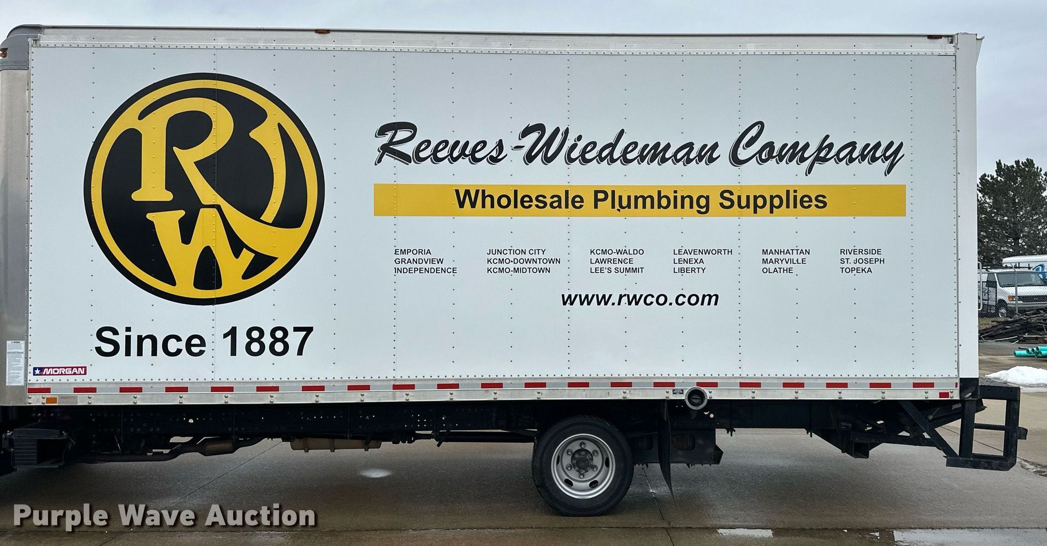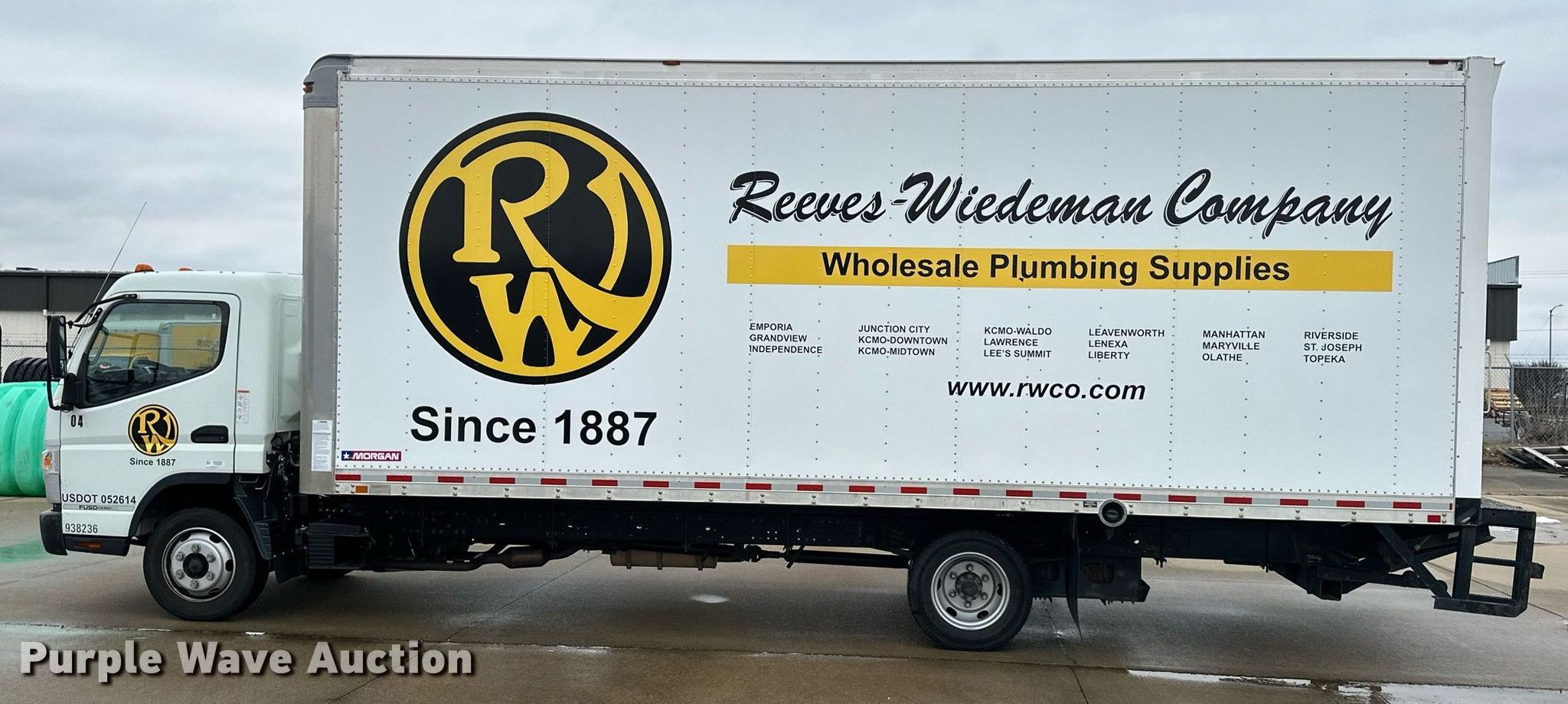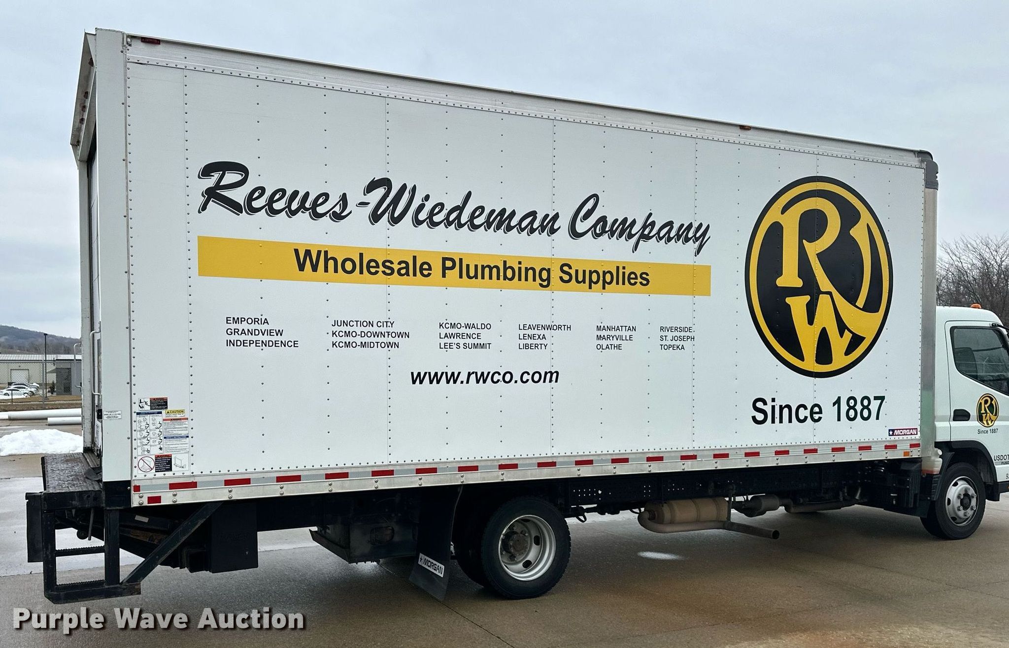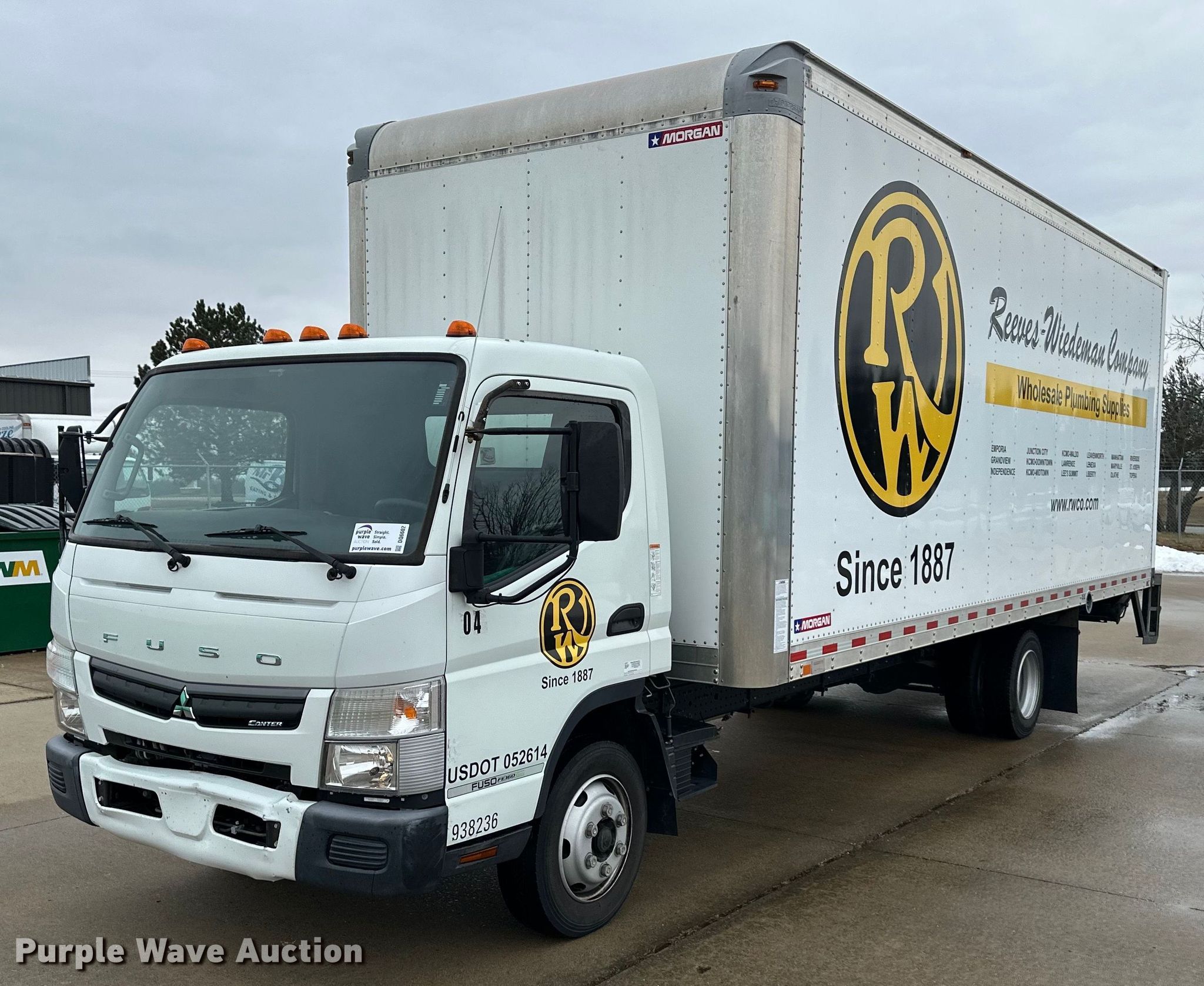 2019 Mitsubishi Fuso Canter box truck. Miles: 117,184 on odometer, VIN: 4UZBVK111KGKX8733. Engine Displacement: 6.0L, Cylinders: 8, Fuel type: Gas. Transmission Automatic. Chassis Suspension: Spring, Brakes: Hydraulic. Interior AC, Heat, Heated mirrors, Power windows, Power locks, Auxiliary controls. Features Box bed Morgan, 22' L x 96" W x 98" H, E-track rail system, Floor: Wood, End gate lift, Maxon, Capacity: 2,500 lbs. Tires Size: 215/75R17.5. Kansas title. Reeves-Wiedeman Company. Leavenworth, KS 66048