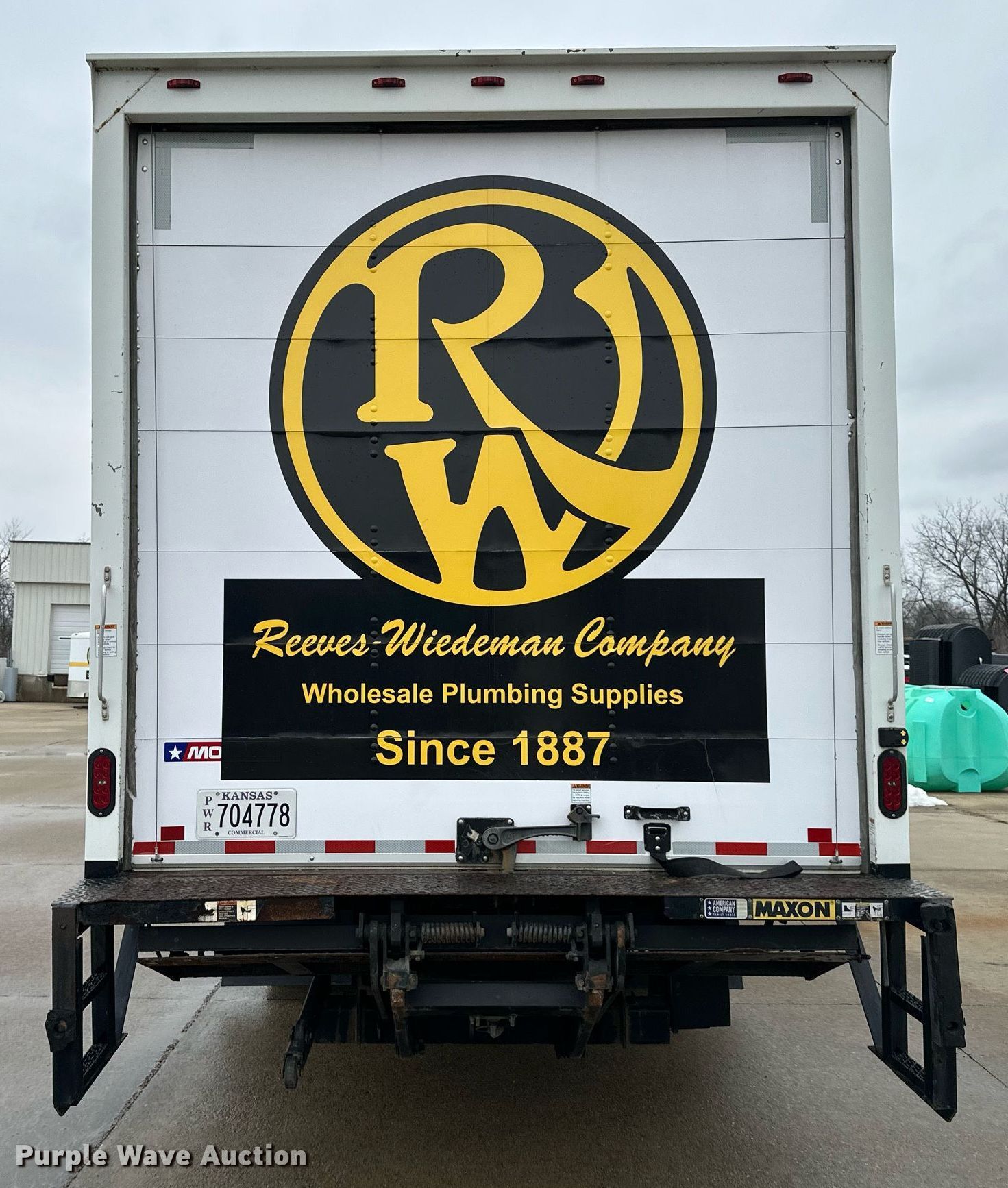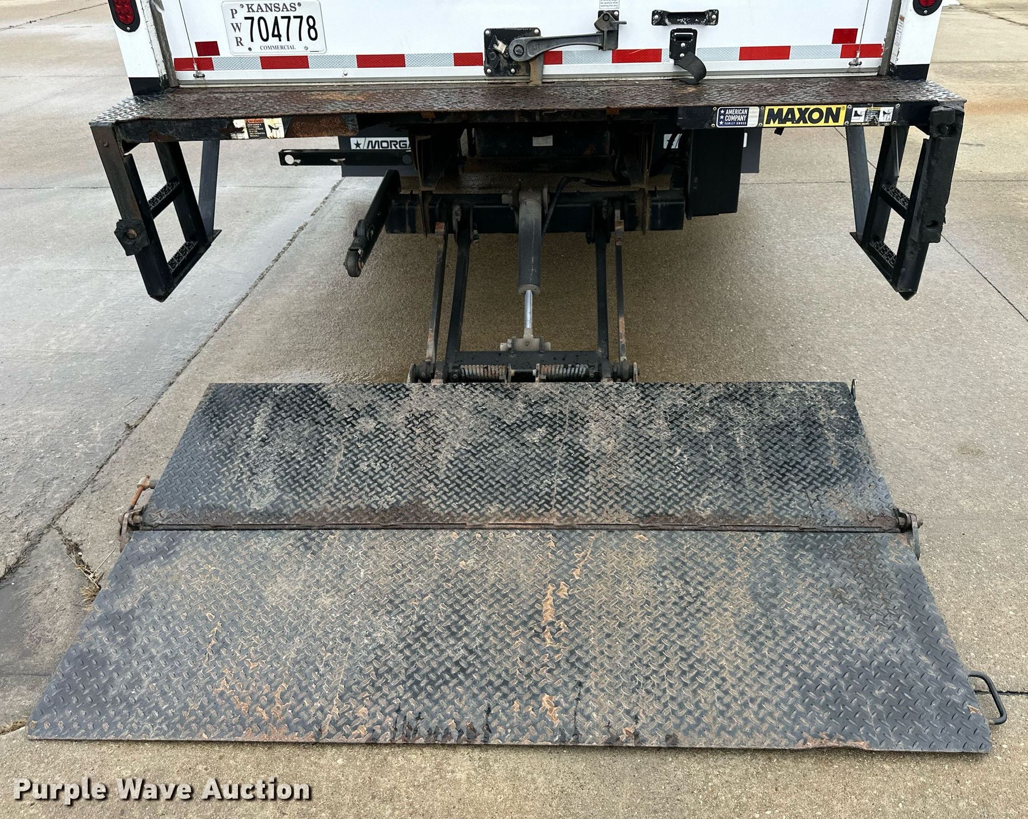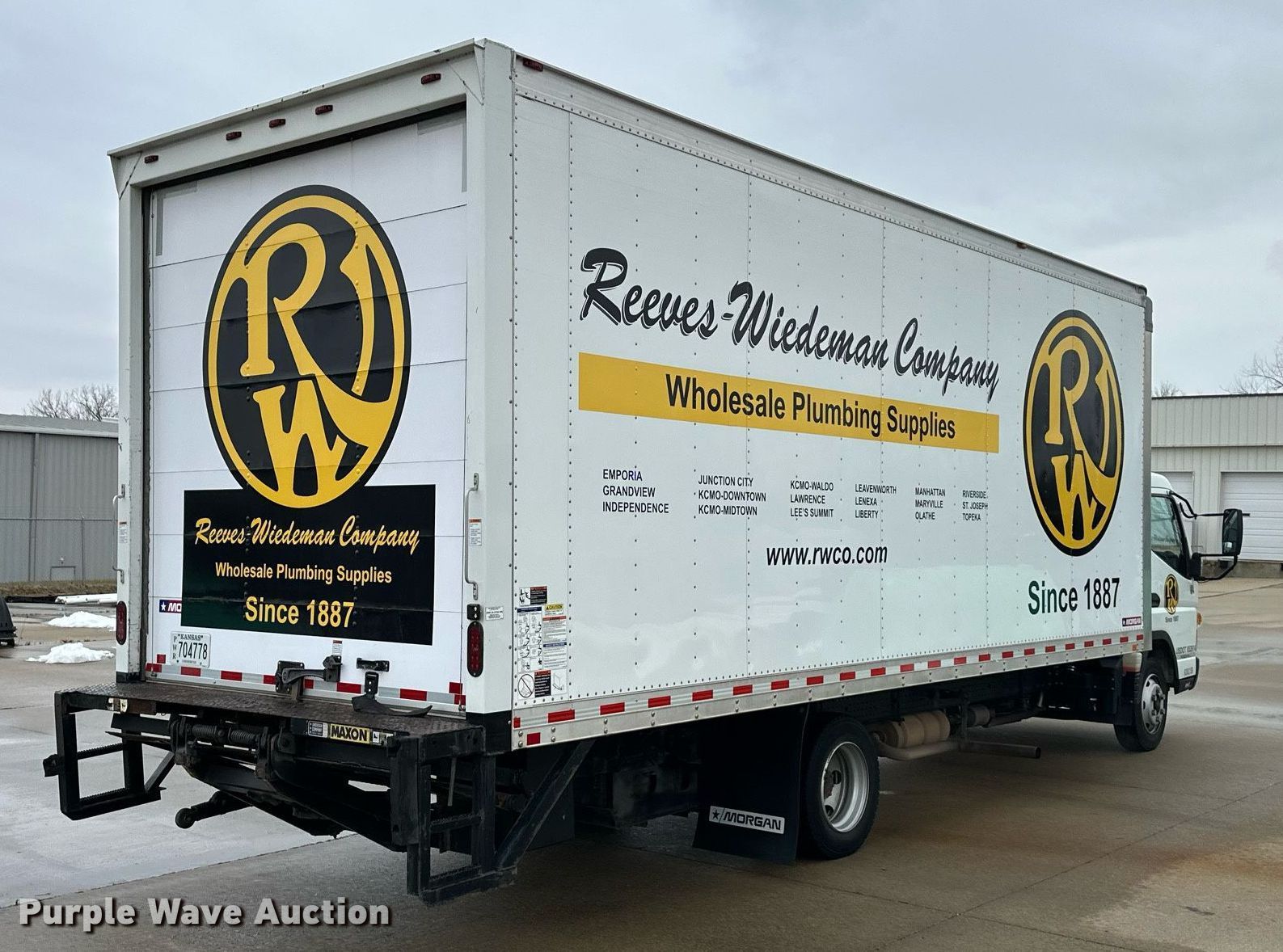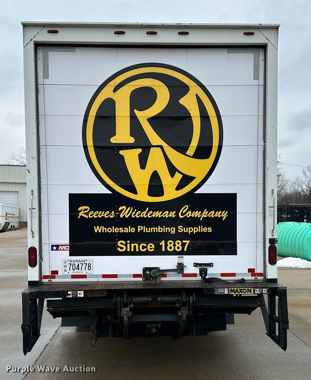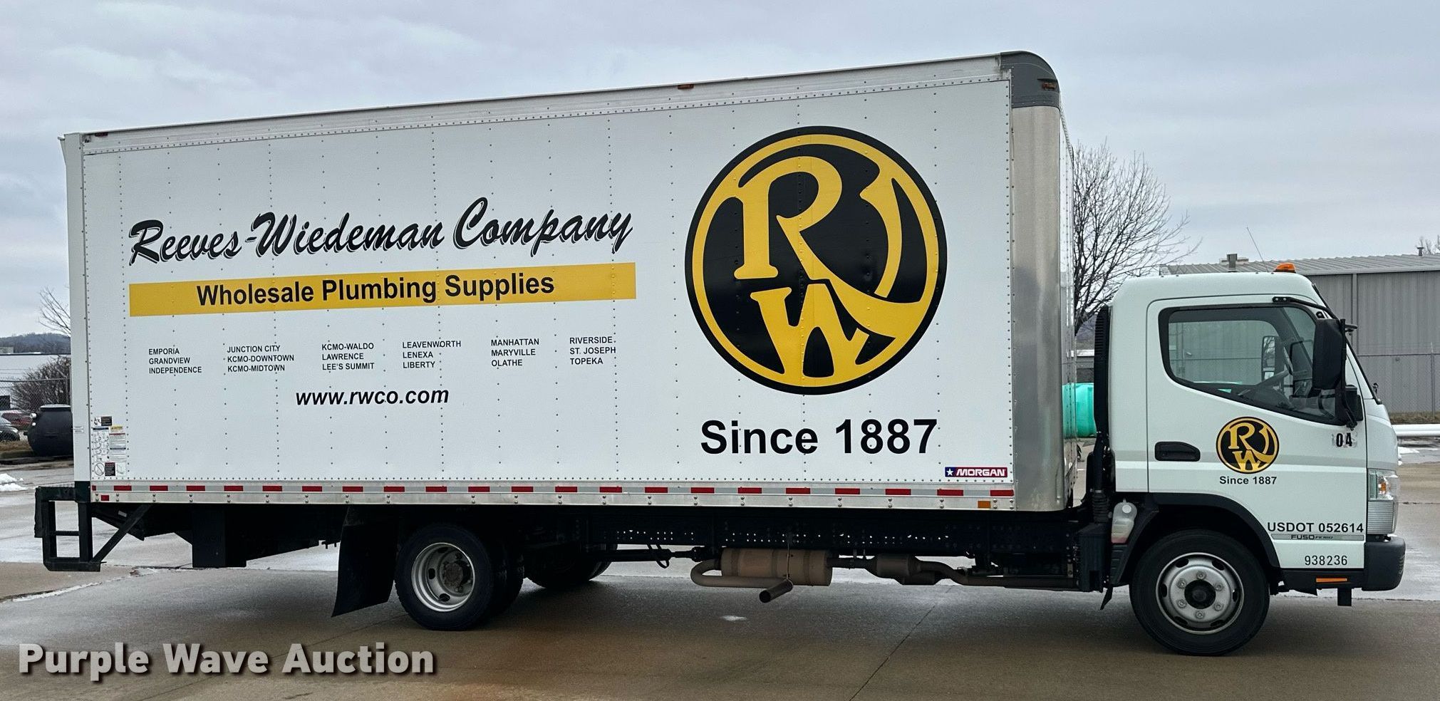 2019 Mitsubishi Fuso Canter box truck. Miles: 117,184 on odometer, VIN: 4UZBVK111KGKX8733. Engine Displacement: 6.0L, Cylinders: 8, Fuel type: Gas. Transmission Automatic. Chassis Suspension: Spring, Brakes: Hydraulic. Interior AC, Heat, Heated mirrors, Power windows, Power locks, Auxiliary controls. Features Box bed Morgan, 22' L x 96" W x 98" H, E-track rail system, Floor: Wood, End gate lift, Maxon, Capacity: 2,500 lbs. Tires Size: 215/75R17.5. Kansas title. Reeves-Wiedeman Company. Leavenworth, KS 66048