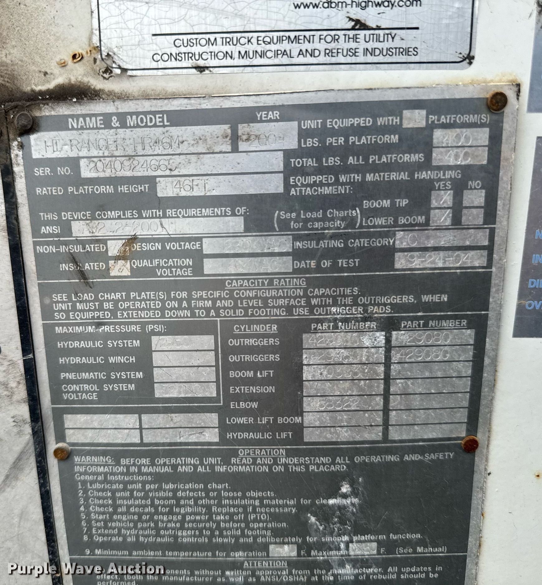2005 International 4400 SBA 4x2 bucket truck. Miles: 233,036 on odometer, Hours: 15,614 on meter, VIN: 1HTMKAAN15H107985. Engine International DT466, Displacement: 7.6L, Cylinders: 6, Fuel type: Diesel. Transmission Allison, Automatic. Chassis Axles: Single, Suspension: Spring, Brakes: Air, PTO Hours: 2,368, GVWR: 33,000 lbs, Wheelbase: 410", Differential lock. Interior AC, Heat, Cruise control, Auxiliary controls, Brake controller. Features Bed BrandFX, Serial: 04 6713, 11' L x 96" W, Boom 2004 Terex Hi-Ranger HR46M, Serial: 2040924665, Mast height: 46', Maximum lift capacity: 400 lbs, Maximum lift height: 46', Boom type: Articulating, Insulated, Man basket, Boom controls Ground, Platform/ basket, Material handler. Tires Size: 11R22.5. Notes Hydraulic issues, leak, Unknown operating condition of winch. Minnesota title. Seller is an Iowa licensed motor vehicle dealer. The buyer may be required to pay sales tax and/or registration fees to the dealer prior to taking possession. Title will be assigned and distributed by the dealer. Please contact the seller for distribution questions. Hawkeye Motors. Des Moines, IA 50316