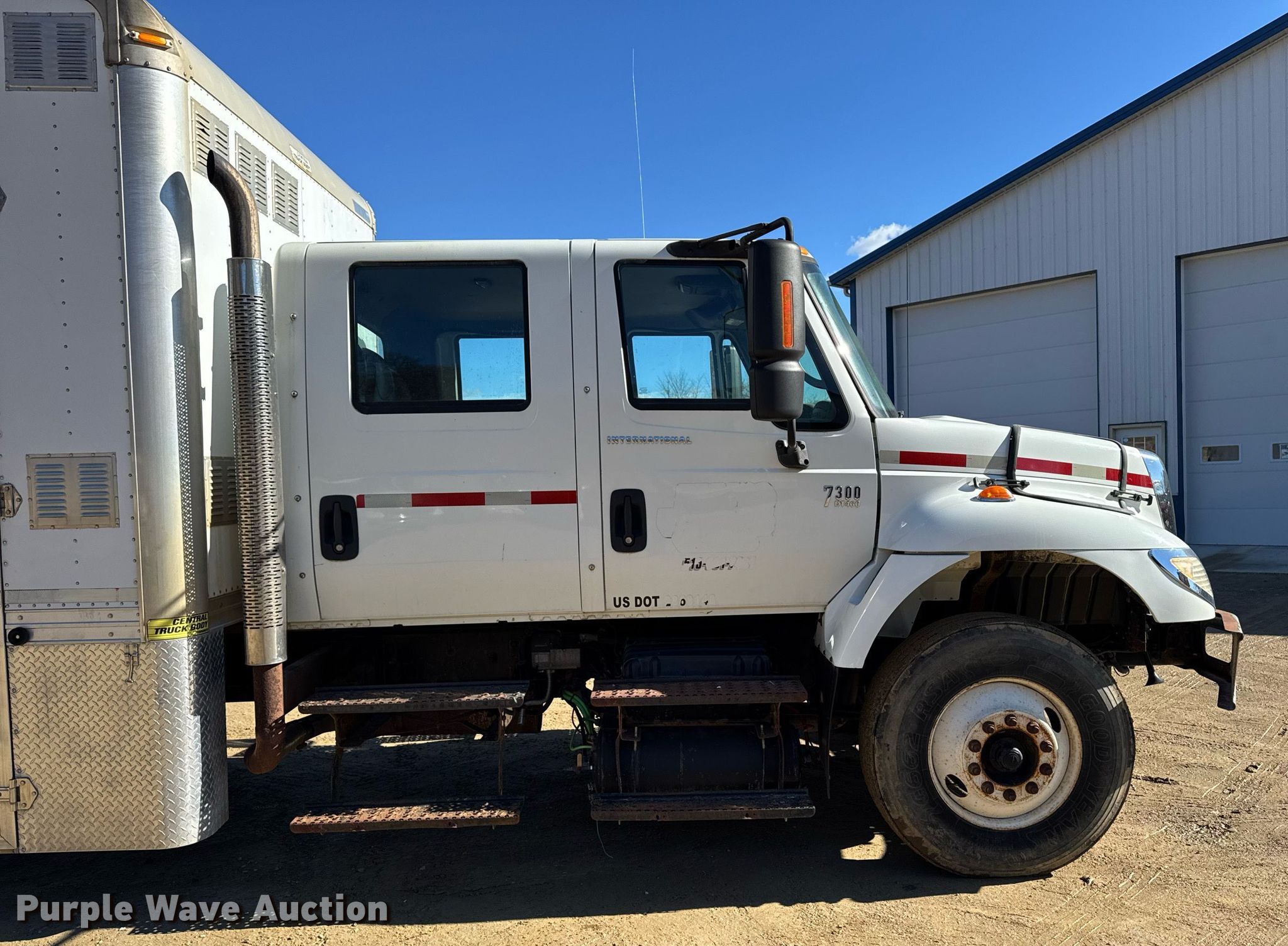 2006 International 7300 SBA box truck. Miles: 113,027 on odometer, Hours: 14,440 on meter, VIN: 1HTZZAANX6J343840. Engine International DT466, Displacement: 7.6L, Cylinders: 8, Fuel type: Diesel. Transmission Automatic. Chassis Axles: Single, Pusher axle Steerable, Suspension: Air, Spring, Brakes: Air, PTO, GVWR: 14,968 lbs, Lift axle GAWR: 12,000 lbs, Wheelbase: 470". Interior AC, Heat, Heated mirrors, Auxiliary controls. Features Box bed Central Truck Boxes, 23' L x 98" W x 152" H, E-track rail system, Floor: Aluminum, End gate lift, Waltco WDVB45, Capacity: 4,500 lbs. Tires Size: 11R22.5, Rear: 295/75R22.5, Lift axle: 255/70R22.5. Notes Unknown operating condition of PTO PTO pump is disconnected, Possible wiring issues, loose, Dash warning indicator: ABS, Traction control, Non-operational lift gate. Iowa title. Title distribution may be delayed up to 14 days from verification of funds. JKM Transport LLC. Steamboat Rock, IA 50672