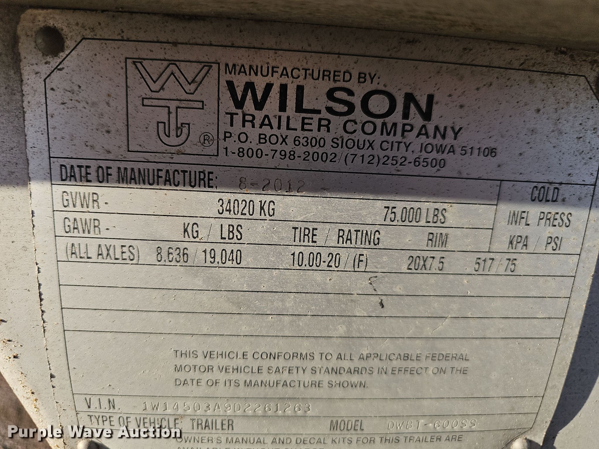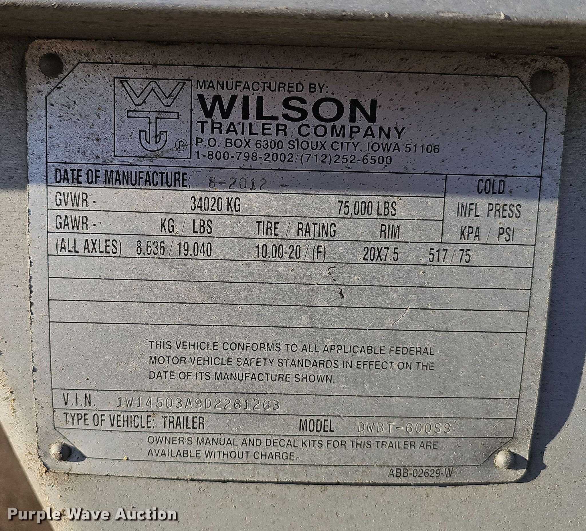 Purple Wave is selling a used Grain or Commodity Trailer in Nebraska. This item is a 2013 Wilson DWBT-6000SS live bottom trailer with the following: VIN: 1W14503A9D2261263
