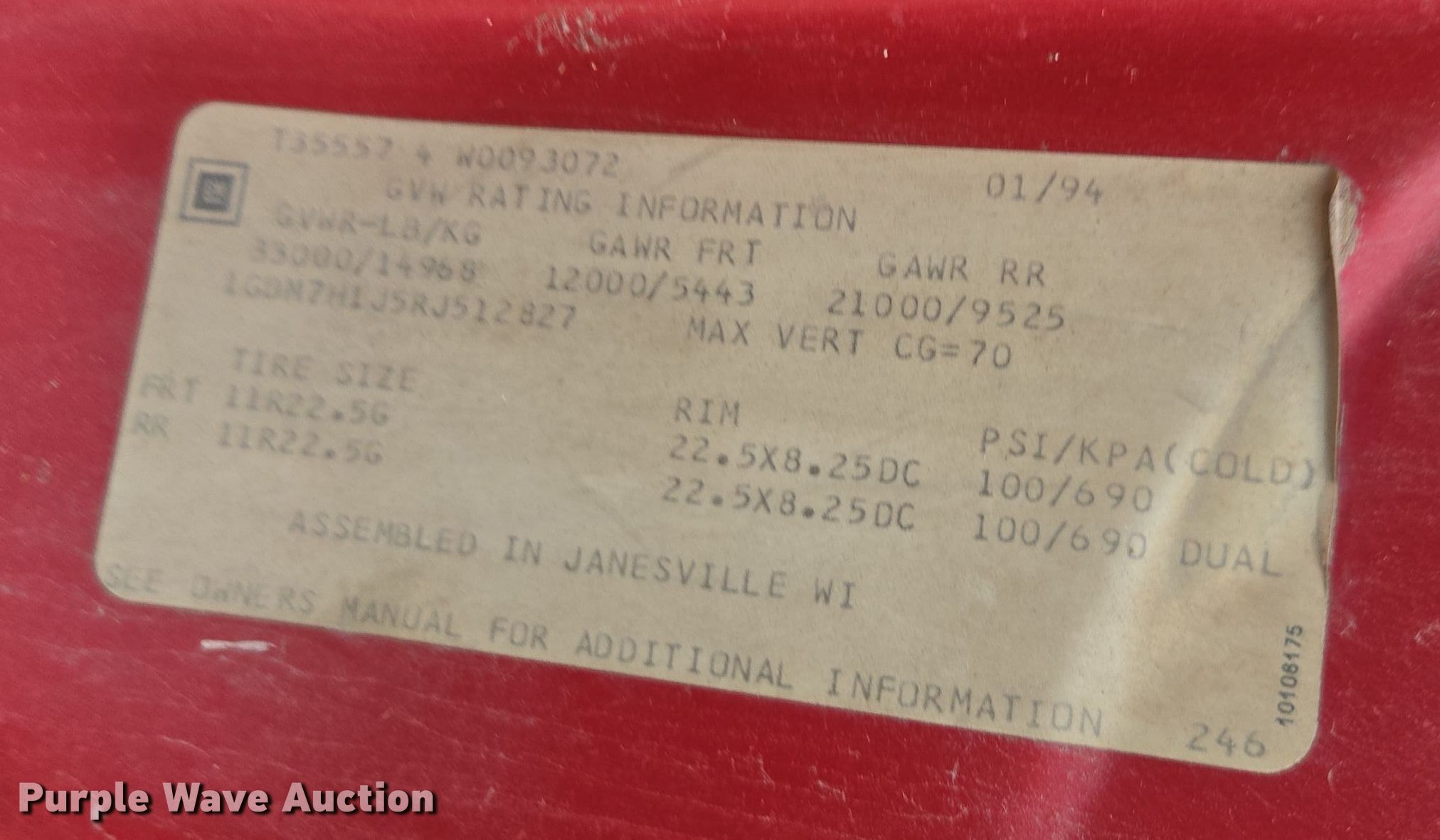 Purple Wave is selling a used Truck Chassis in Indiana. This item is a 1994 GMC Top Kick truck cab and chassis with the following: Miles: 377,501 on odometer, VIN: 1GDM7H1J5RJ512827