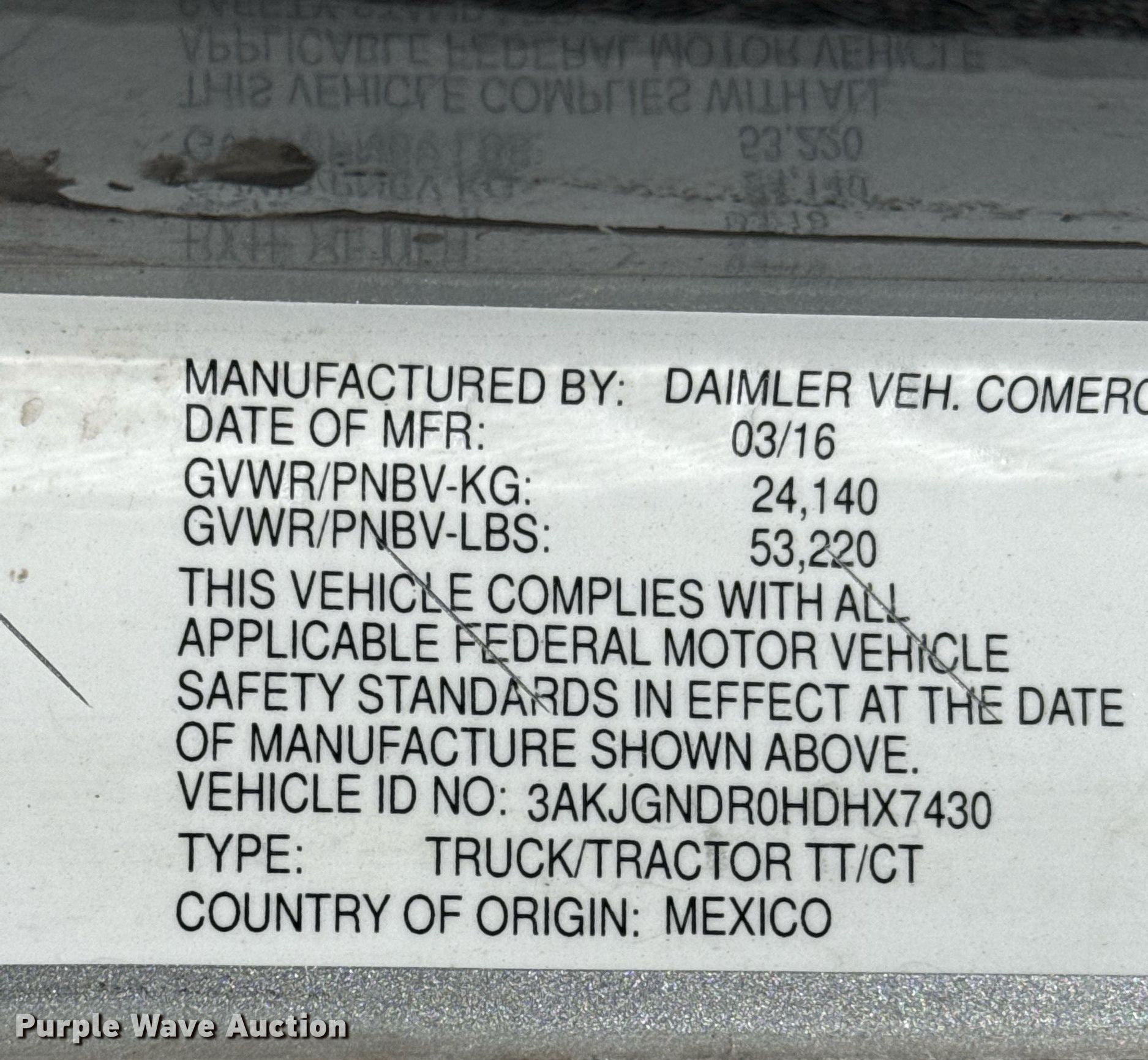 Purple Wave is selling a used Truck Tractor in Texas. This item is a 2017 Freightliner 122SD semi truck with the following: Miles: 660,293 on odometer, Hours: 27,852 on meter, VIN: 3AKJGNDR0HDHX7430