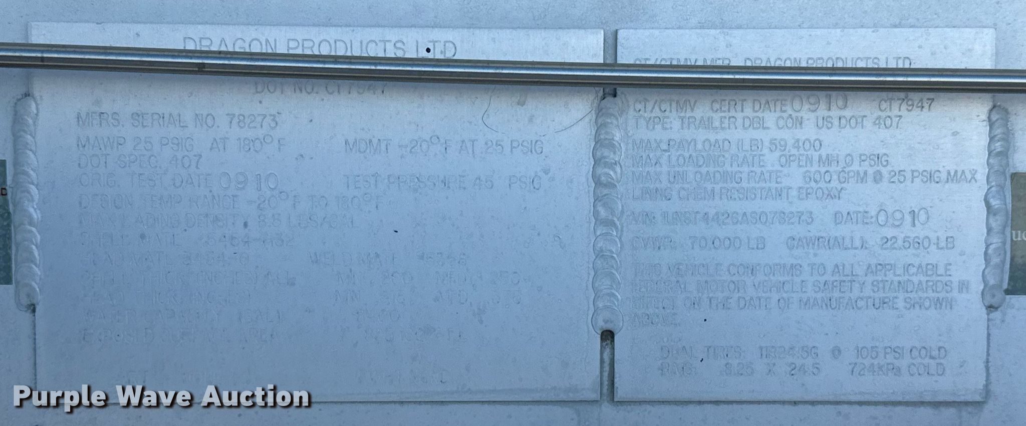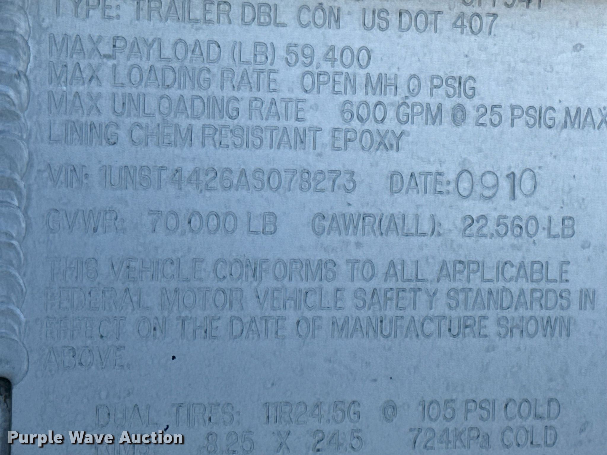 Purple Wave is selling a used Tank Trailer in New Mexico. This item is a 2010 Dragon tank trailer with the following: VIN: 1UNST4426AS078273