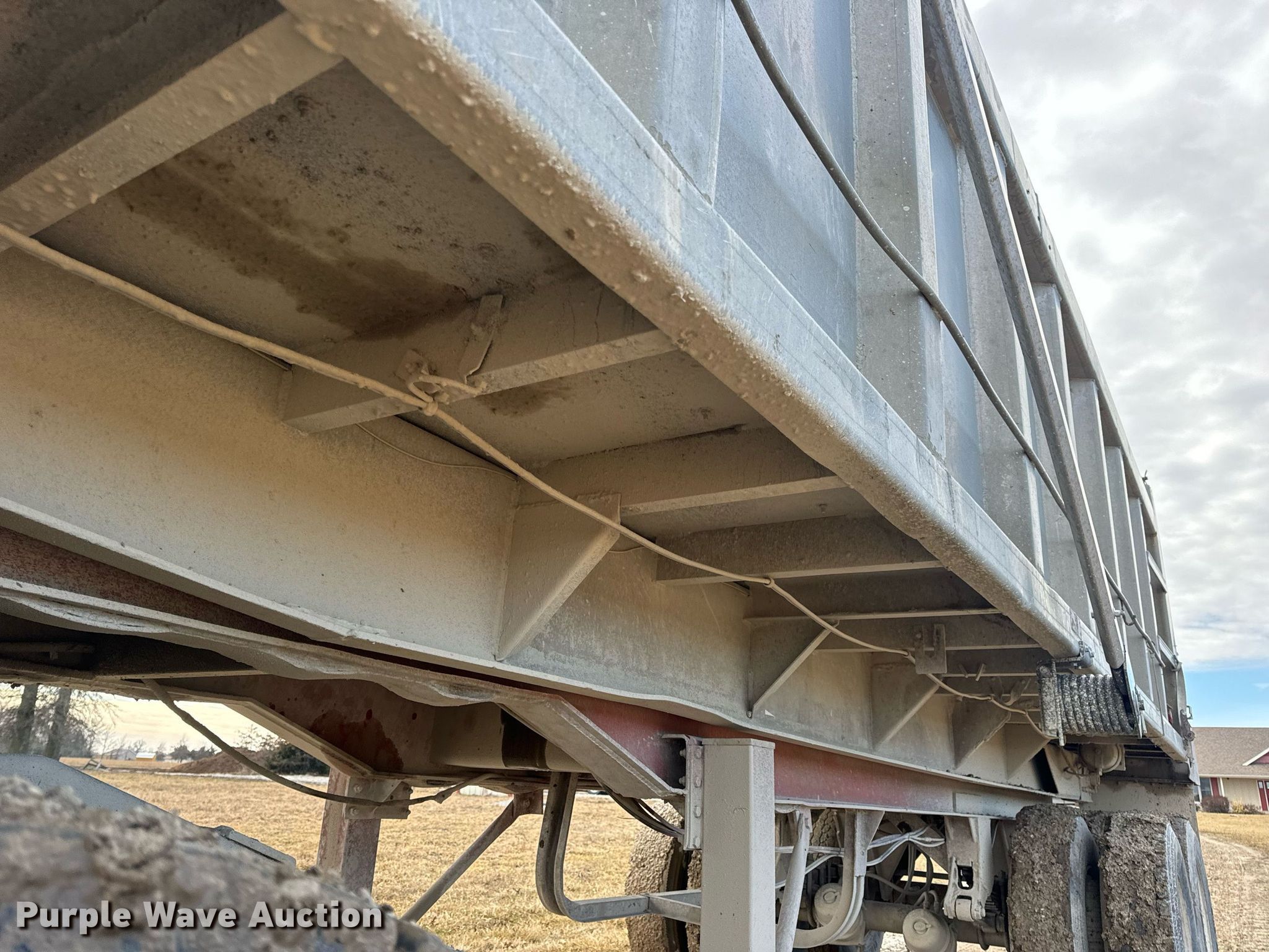 1968 Heil 4SF-SW end dump trailer. VIN: 18911. Dimensions Overall: 27' 6" L x 104' W, Body: 25' 9" L x 95" W, Side height: 58". Features Body type: Aluminum, Ram: Single, End gate: Air operated Grain door, Poly liner, Roll tarp. Chassis Landing gear: Dual, Suspension: Spring, Brakes: Air, Axles: Tandem, GVWR: 50,000 lbs, GAWR: 20,000 lbs. Tires Steel wheels, Size: 11R22.5. Notes Semi truck not included, Hydraulic cylinder issues, leaks. Missouri title. Title distribution may be delayed up to 14 days from verification of funds. Straightline Construction. Centralia, MO 65240