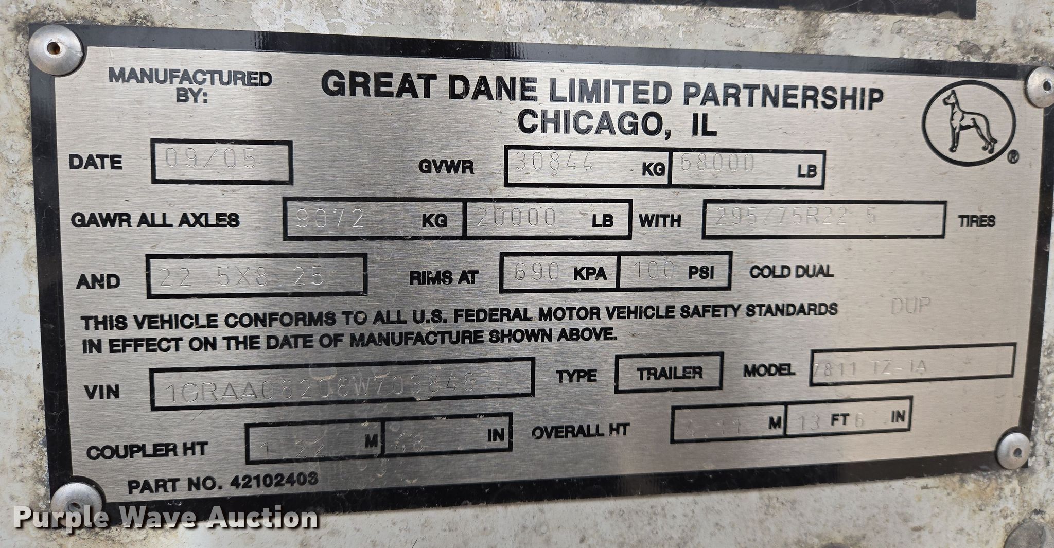 Purple Wave is selling a used Refrigerated Van Trailer in Kansas. This item is a 2006 Great Dane 7811 TZ-1A refrigerated van trailer with the following: VIN: 1GRAA06206W703846
