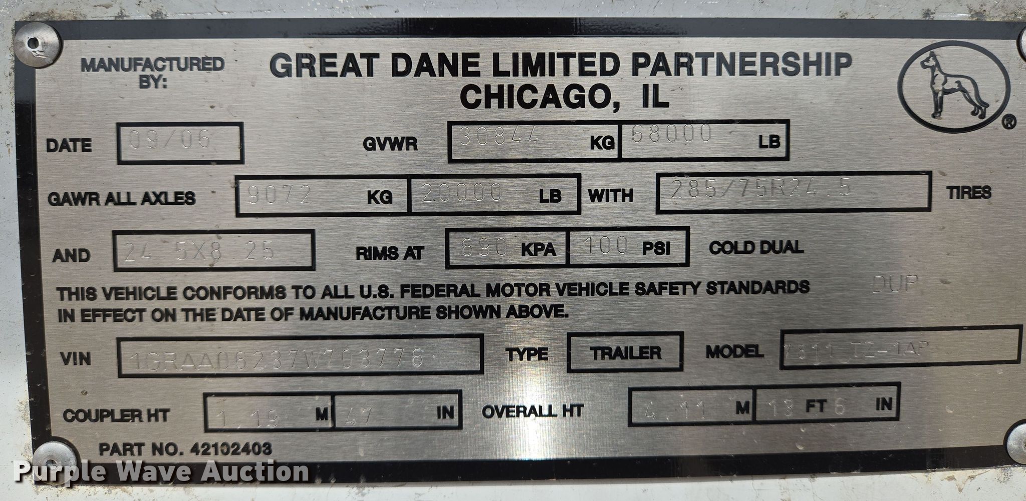 Purple Wave is selling a used Refrigerated Van Trailer in Kansas. This item is a 2007 Great Dane 7811 TZ-1AP refrigerated van trailer with the following: VIN: 1GRAA06237W703776