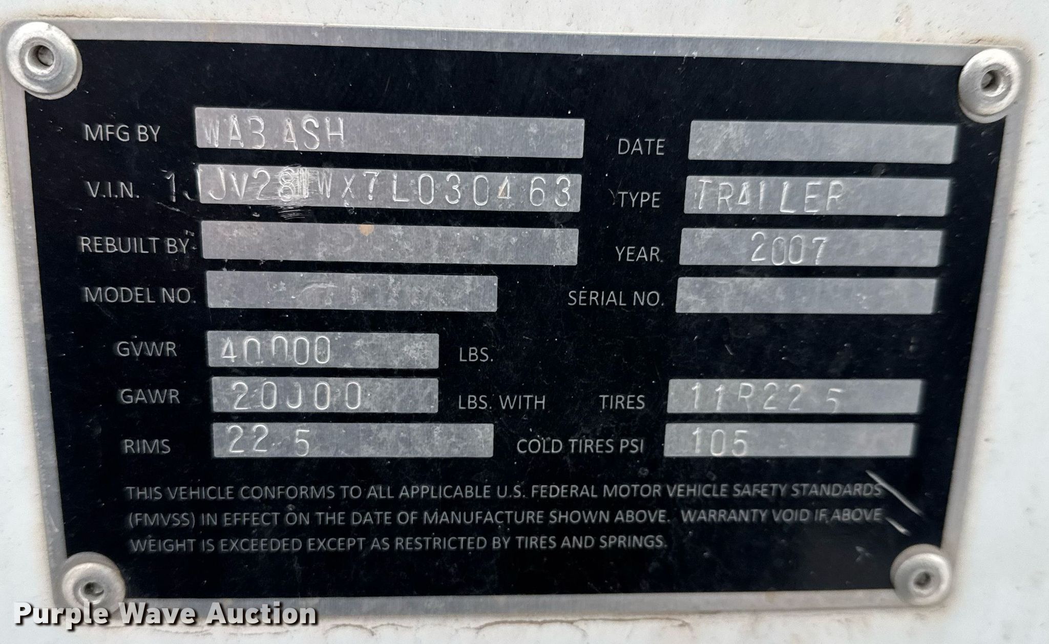 Purple Wave is selling a used Dry Van Trailer in Oklahoma. This item is a 2007 Wabash dry van trailer with the following: VIN: 1JJV281WX7L030463