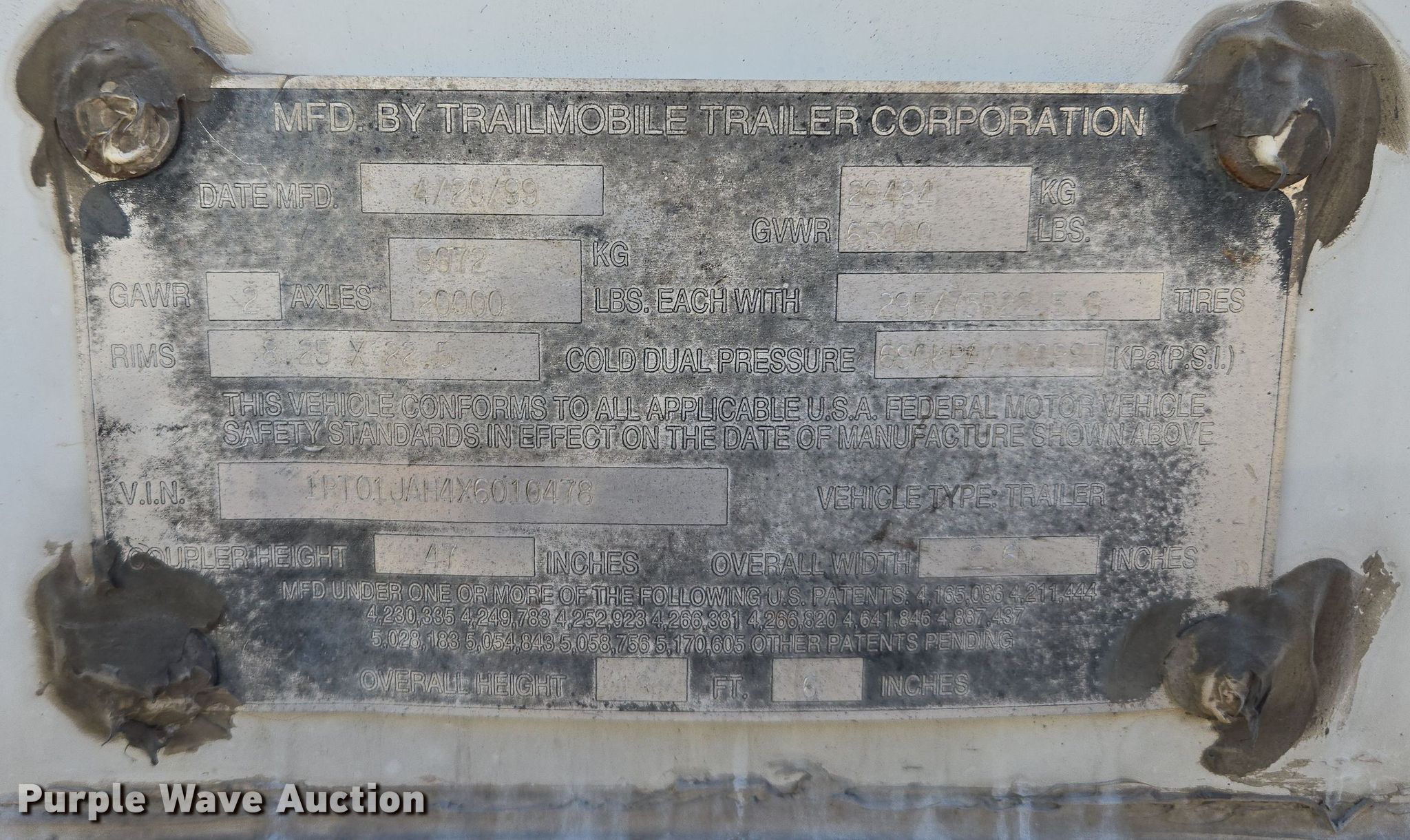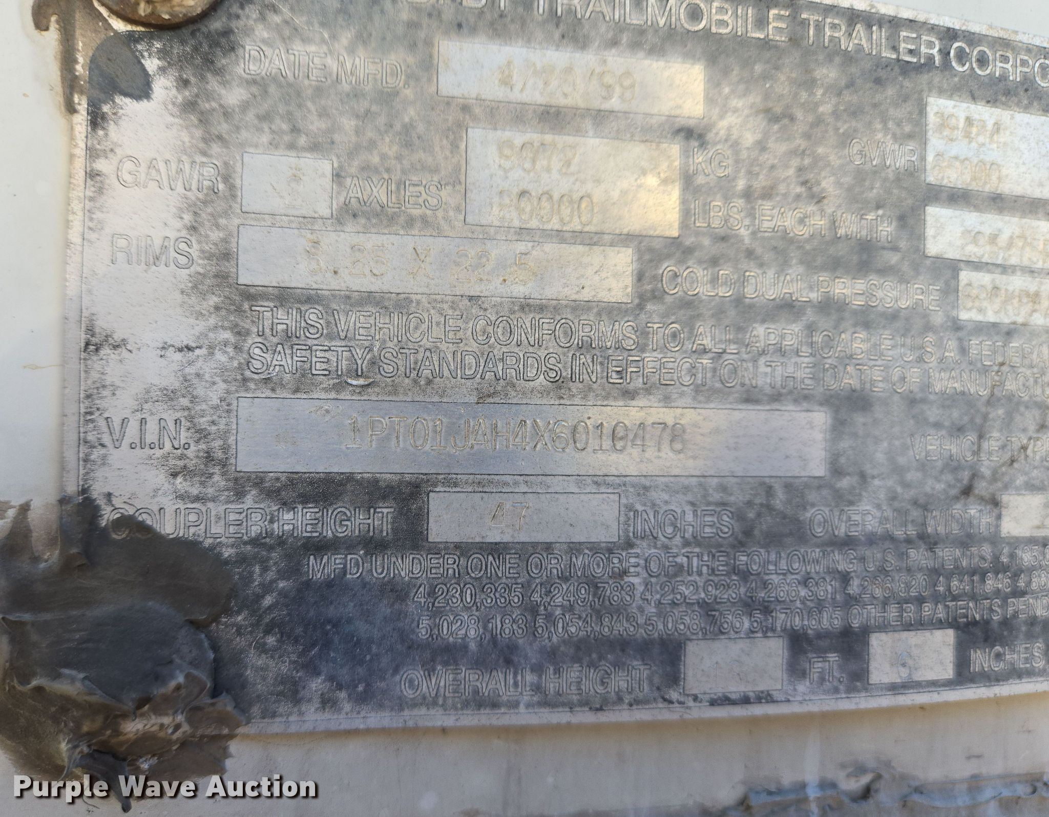 Purple Wave is selling a used Dry Van Trailer in Missouri. This item is a 1999 Trail Mobile dry van trailer with the following: VIN: 1PT01JAH4X6010478, Unit #: 530478