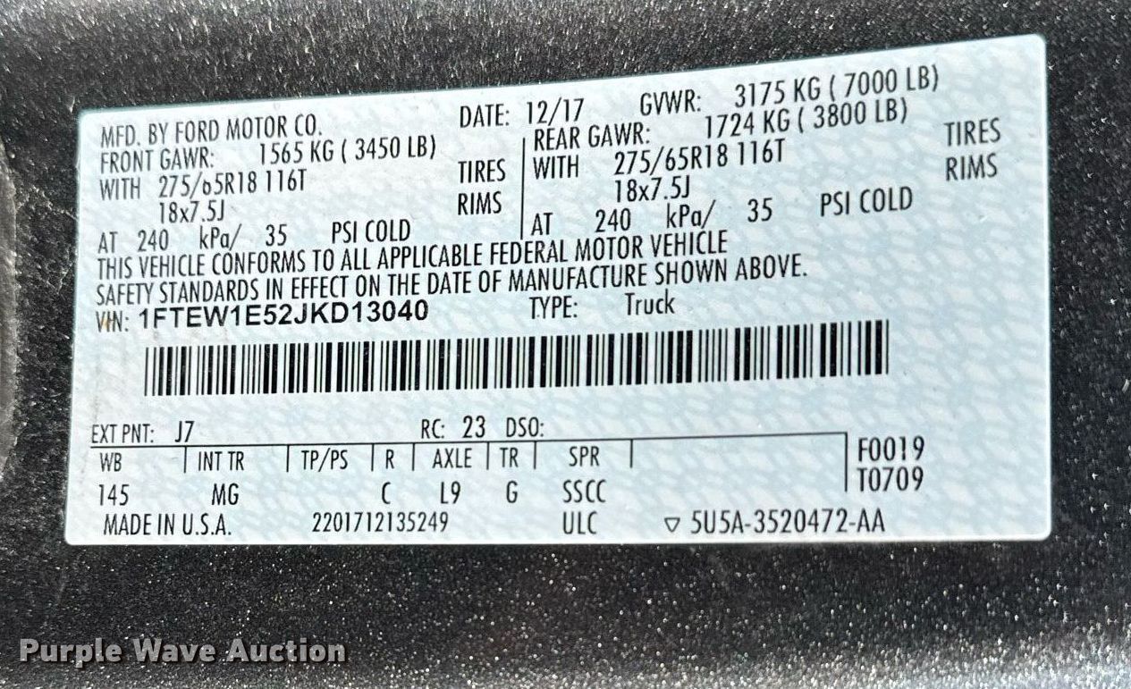 This 2018 Ford F150 SuperCrew pickup truck will sell to the highest bidder regardless of price.