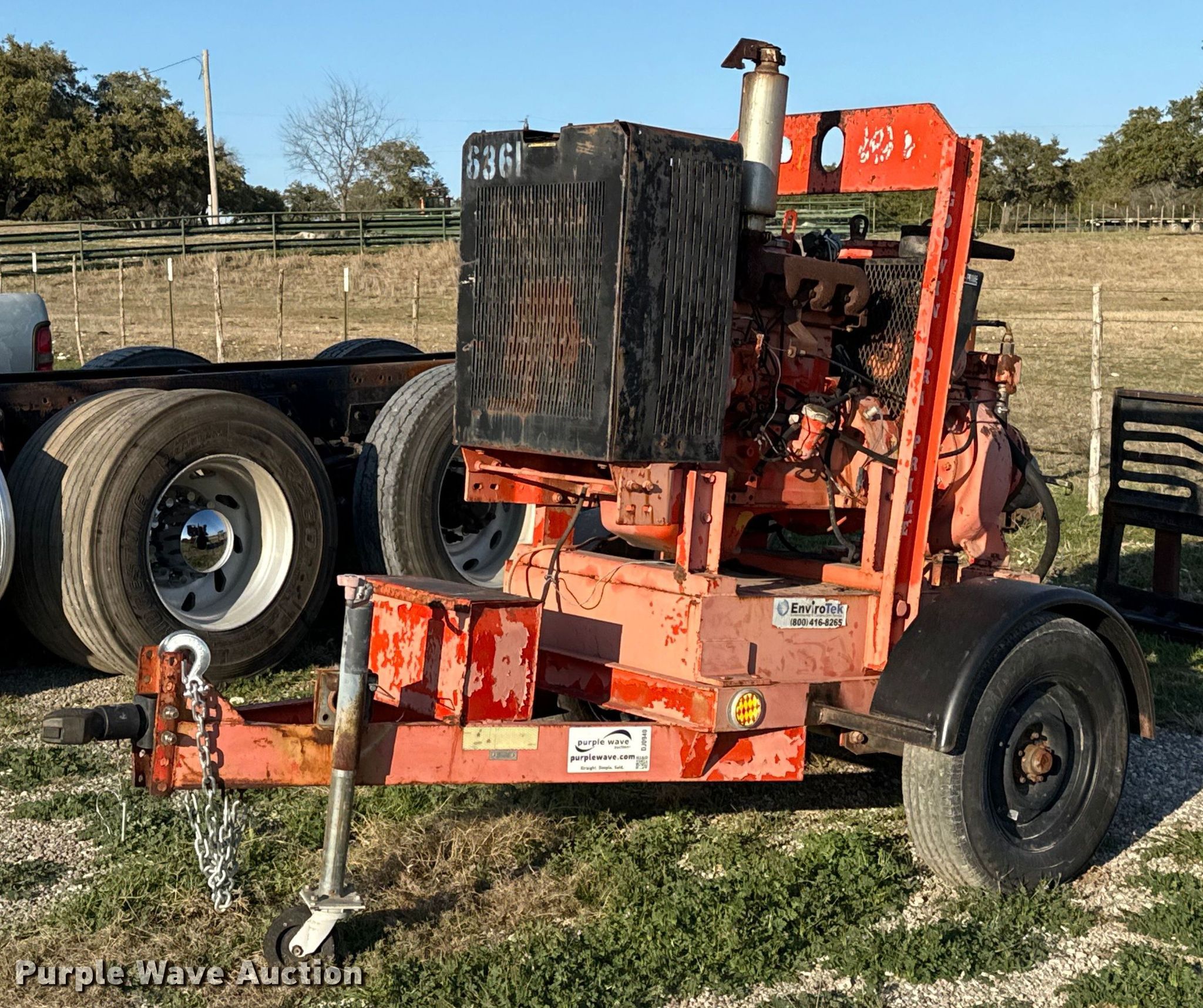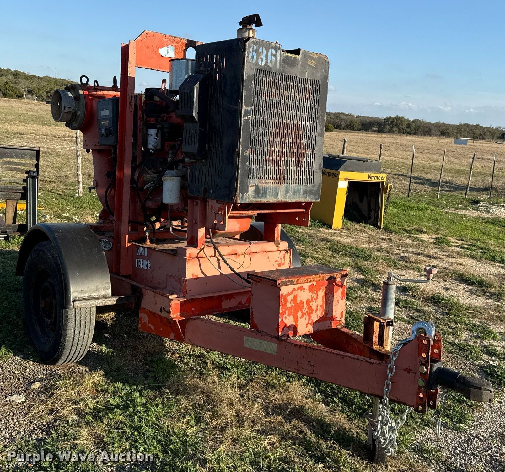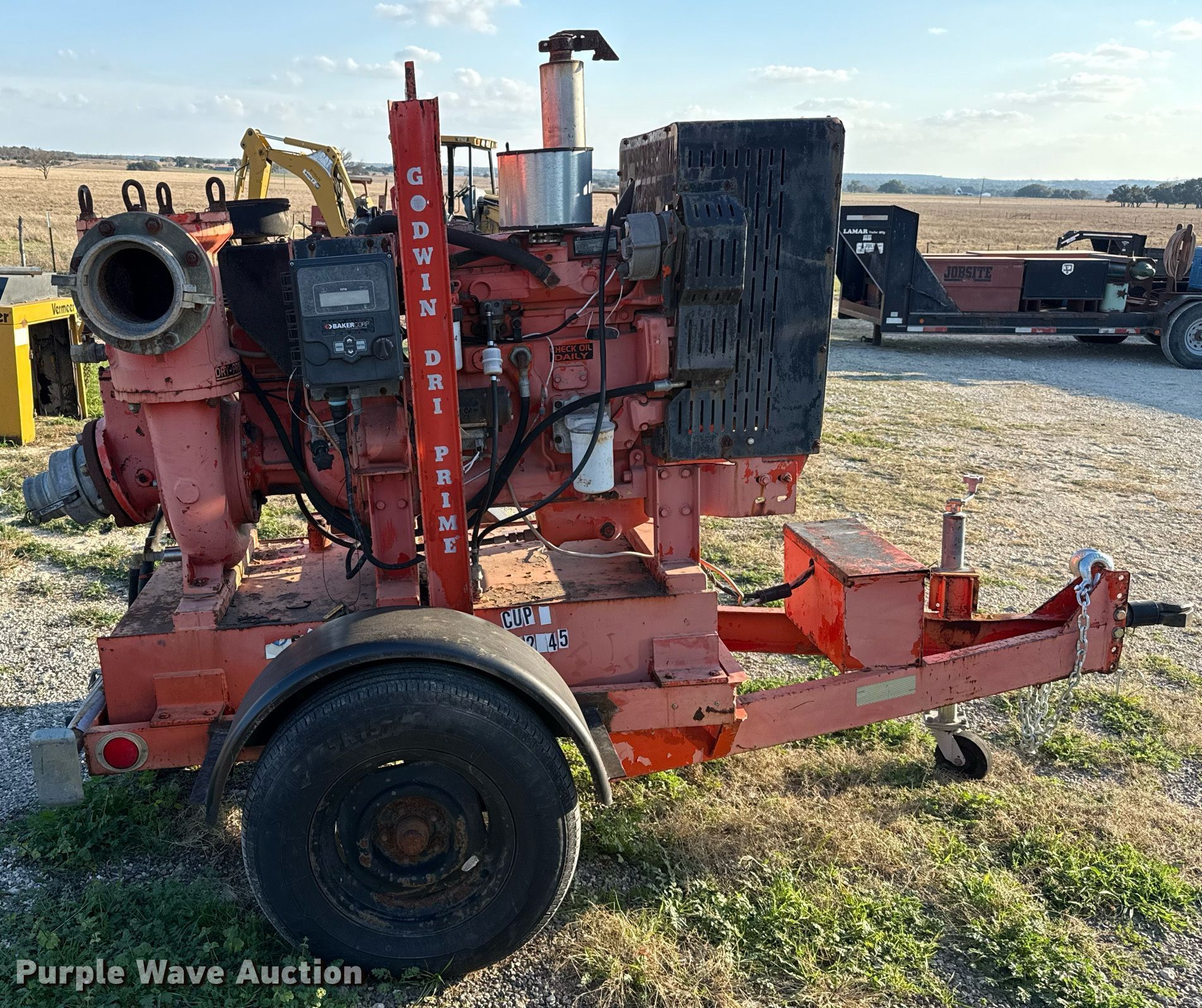 Godwin Pumps CD150 pump. Hours: Unknown, Serial: 0438152/11. Engine John Deere 4045, Displacement: 4.5L, Cylinders: 4, Fuel type: Diesel, kW: 60. Features Inlet/outlet: 6". Trailer Ball hitch: 2 5/16", Suspension: Torsion, Tire size: 205/75R15. Notes Non-operational electrical display, Engine issues, turns over but will not start , Non-operational unit. This is worksite support equipment and will not come with a title. Transfer of ownership documentation will be a bill of sale. J.H. Miller Company. Florence, TX 76527