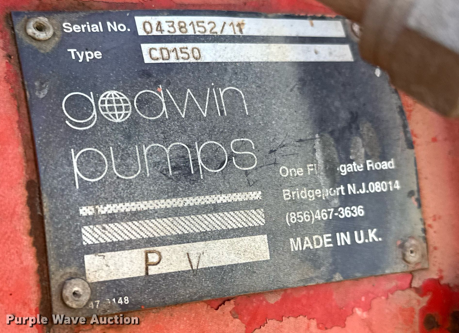 Purple Wave is selling a used Pump in Texas. This item is a Godwin Pumps CD150 pump with the following: Hours: Unknown, Serial: 0438152/11