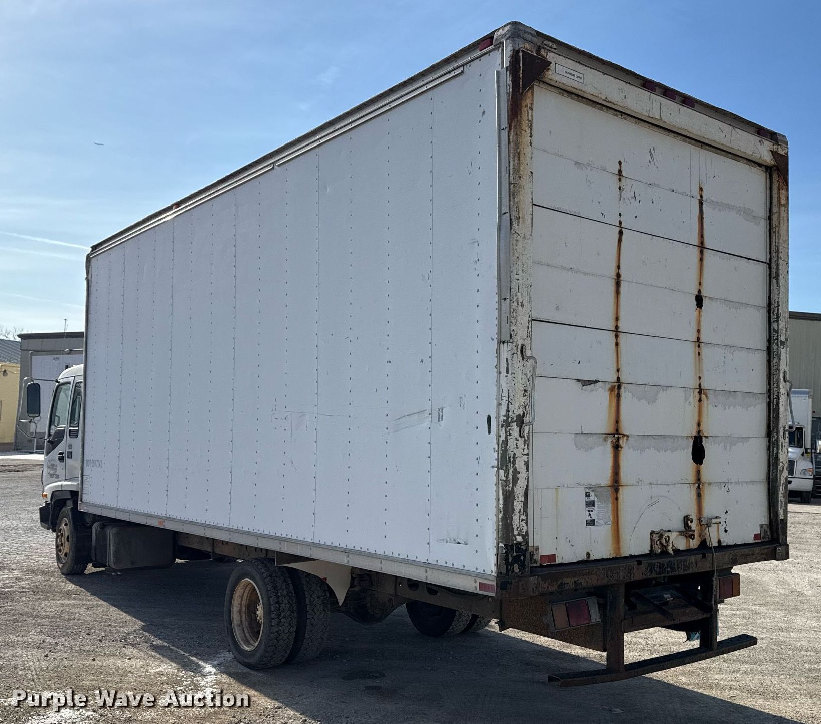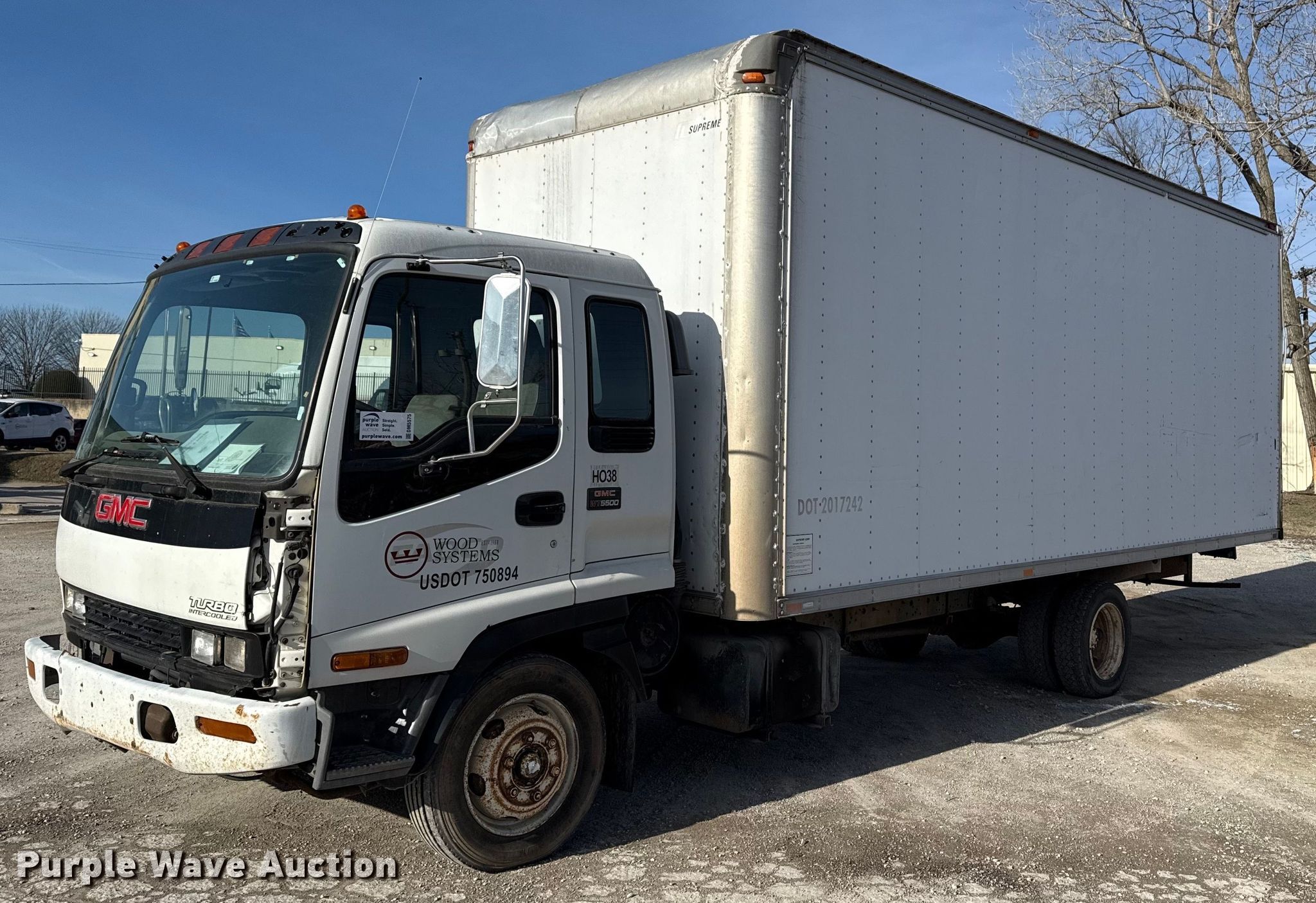 2004 GMC WT5500 box truck. Miles: 332,309 on odometer, VIN: J8DF5C13X47700156. Engine Isuzu 6HK1X, Displacement: 475 C.I.D., Cylinders: 6, Fuel type: Diesel, HP: 275. Transmission Automatic. Chassis Axles: Single, Suspension: Spring, Brakes: Hydraulic, GVWR: 19,500 lbs. Interior AC, Heat. Features Box bed Supreme Corp., 22' L x 96" W x 108" H, Floor: Wood. Tires Size: 225/70R19.5. Notes Windshield chipped or cracked, Seats damaged, Box bed damaged, Box bed door damaged. Oklahoma title. Title distribution may be delayed up to 14 days from verification of funds. Wood Systems North. Tulsa, OK 74115