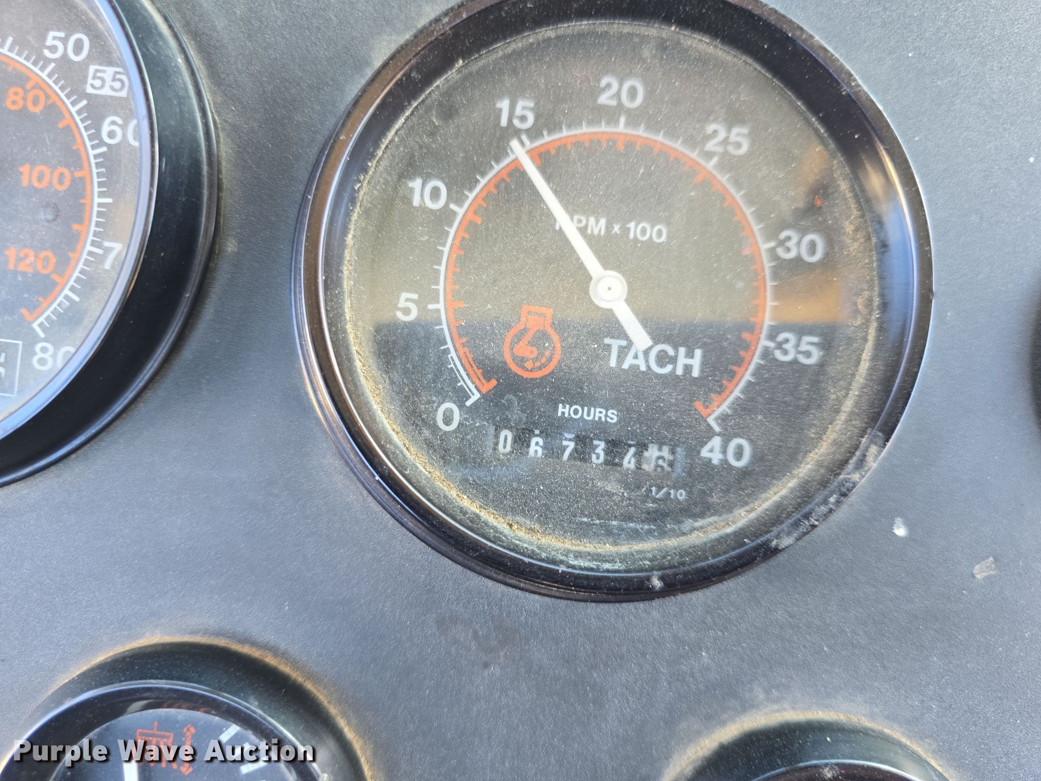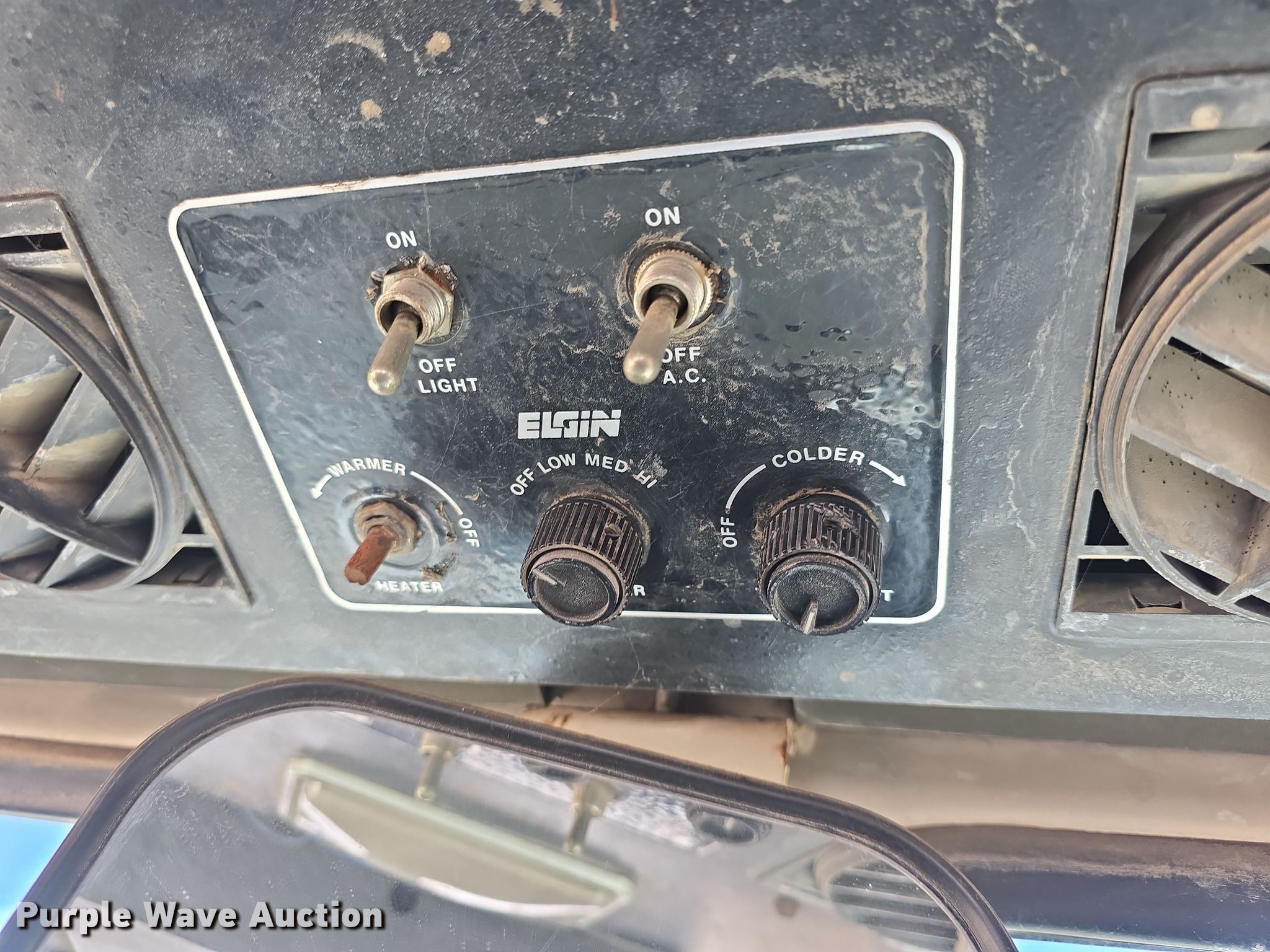 1992 Elgin Pelican Series SE street sweeper. Miles: 3,544 on odometer, Hours: 6,735 on meter, Serial: S7679D. Engine John Deere 4039TF001, Serial: T04039T367530, Cylinders: 4, Fuel type: Diesel. Transmission Hydrostatic. Chassis Suspension: Spring, Brakes: Hydraulic. Operators station AC, Heat, Dual operating station. Features Broom Width: 60", Water spray system, Sweeper bed Sweeper bed type: Conveyor Capacity: 3.5cu.yd., Left gutter broom Diameter: 24", Right gutter broom Diameter: 24", Operator's manual. Tires Front: 10.00R20, Rear: 8.25R15, Brand: Double Coin. Notes Water line issues, need replaced, Windshield chipped or cracked, Unknown operating condition of AC. Transfer of ownership documentation will be a bill of sale. Wakefield, KS 67487