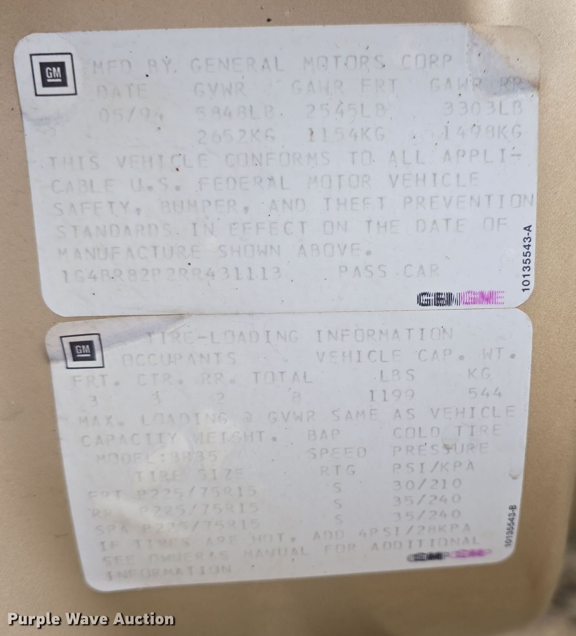 Purple Wave is selling a used Passenger Vehicle in Kansas. This item is a 1994 Buick Roadmaster Estate Wagon with the following: Miles: 199,449 on odometer, VIN: 1G4BR82P2RR431113