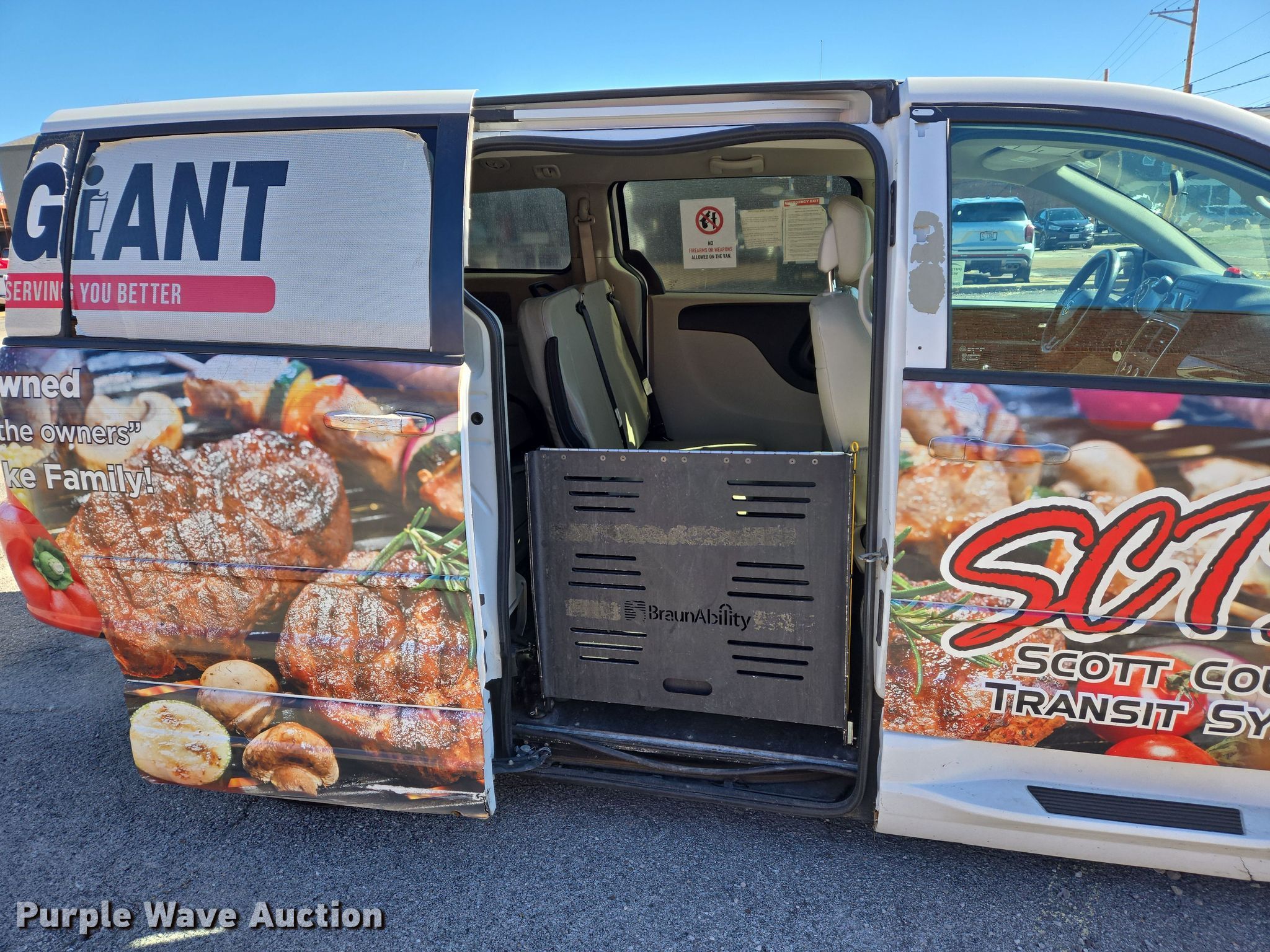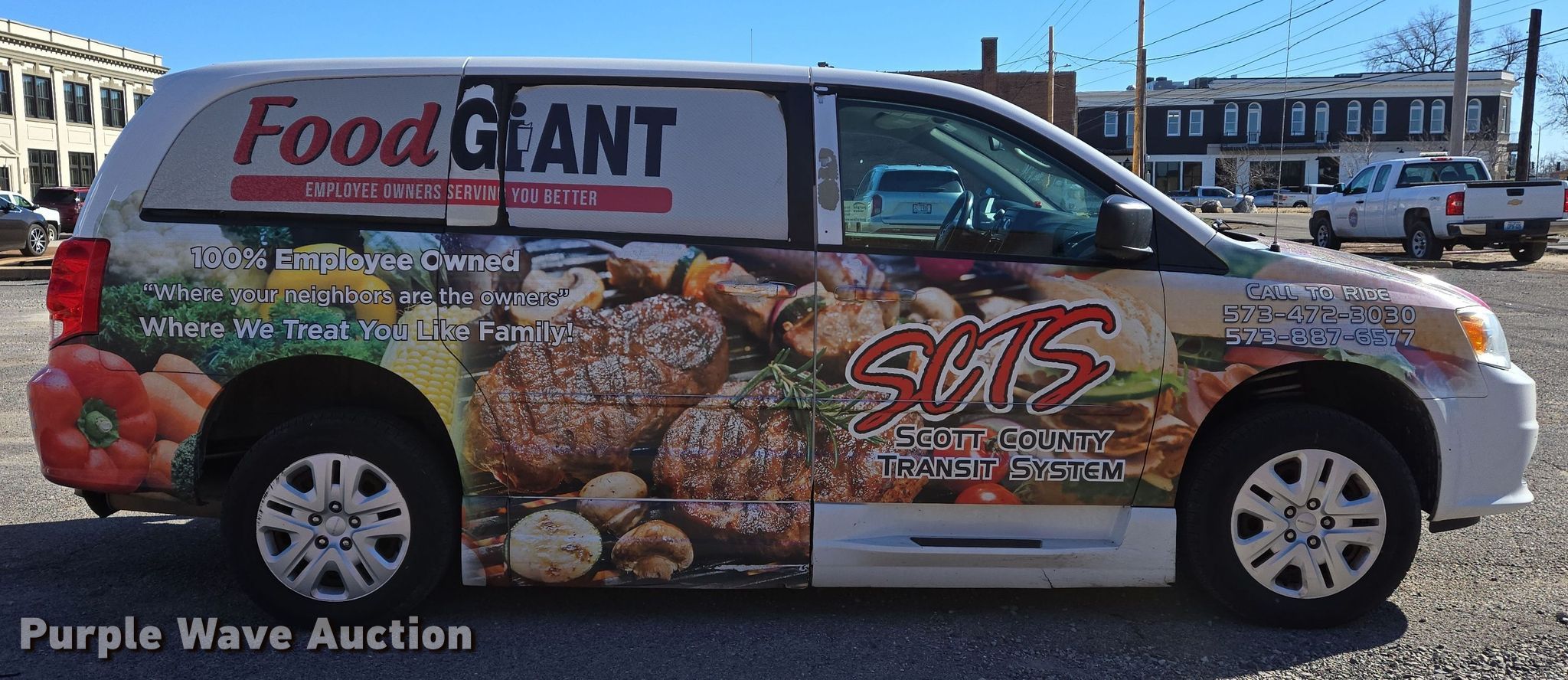 2015 Dodge Grand Caravan handicap accessible van. Miles: 200,495 on odometer, VIN: 2C7WDGBG8FR614152. Engine Displacement: 3.6L V6 DOHC, Cylinders: 6, Fuel type: Gas. Transmission Automatic. Interior AC, Heat, Heated mirrors, Power windows, Power locks, Cruise control. Tires Size: 225/65R17. Notes Contents not included, Removable front seats for a wheelchair, Dash warning indicator: Check engine, Windshield chipped or cracked. Missouri title. Title distribution may be delayed up to 14 days from verification of funds. Scott County Transit System Inc.. Sikeston, MO 63801
